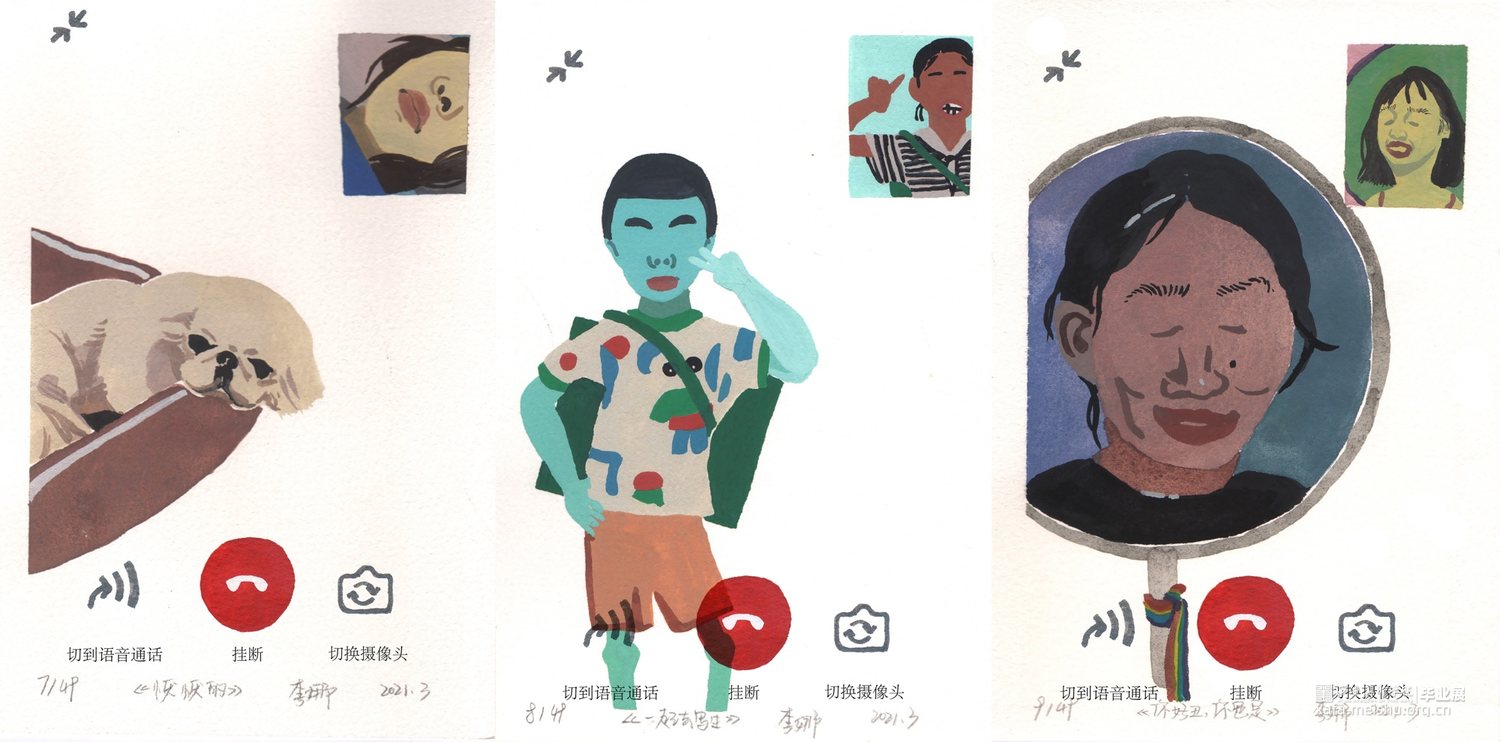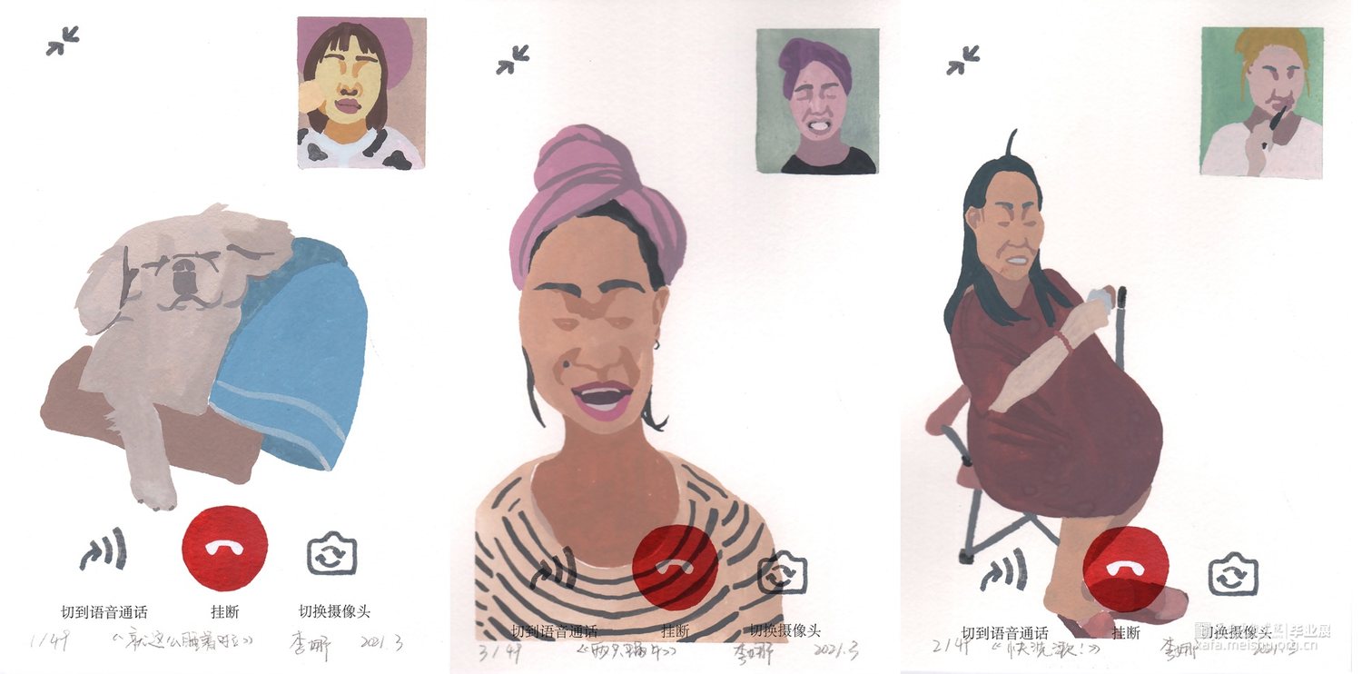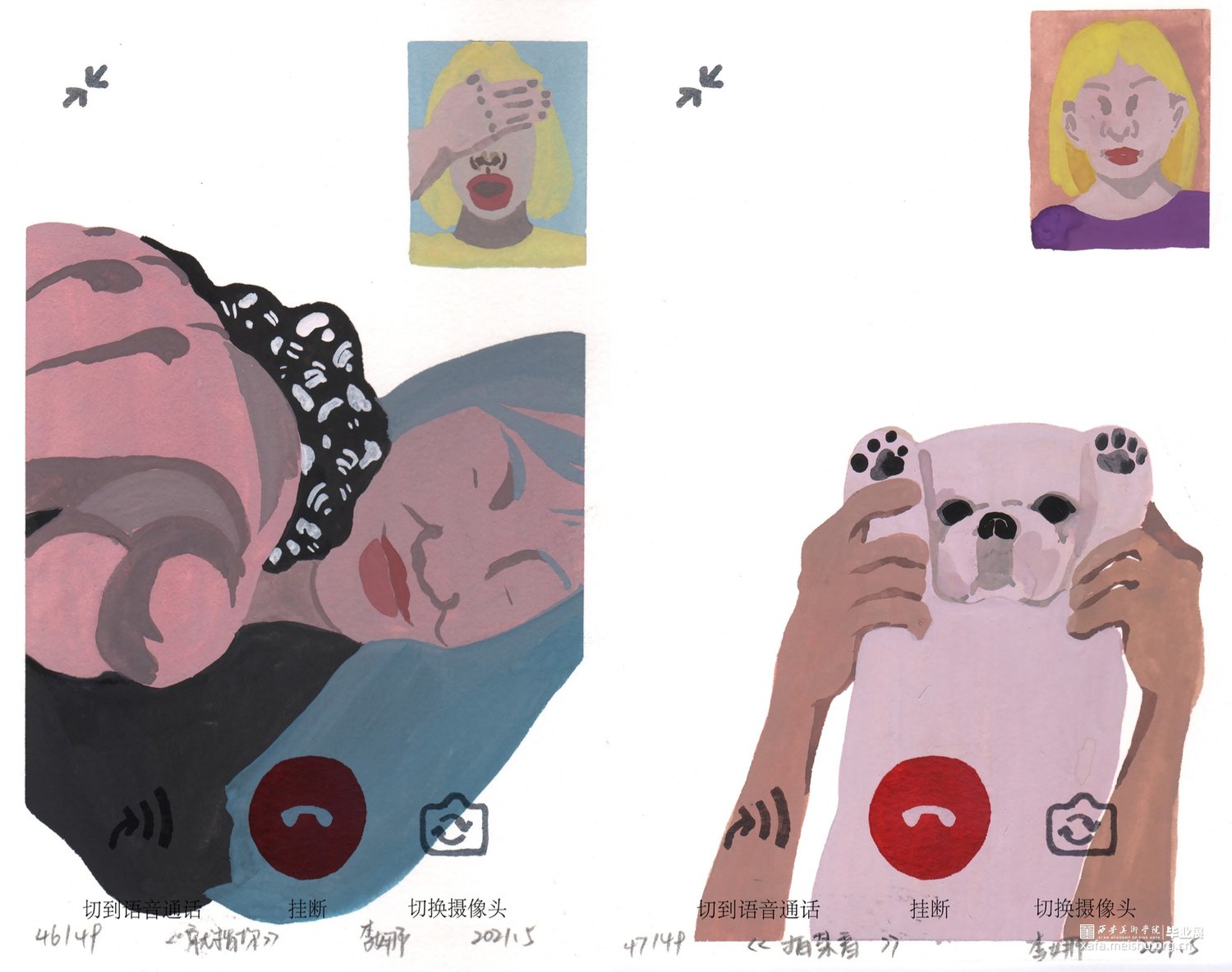 《视频系列1-49》展示了我和我的家人朋友以及我的狗狗沟通的场景,大多数时间,我不是随时想见就可以见到他们的,所以我会打开视频和大家沟通。创作中的场景记录下了这些时刻,快乐或平淡,都是我生命中的时刻。在没有视频通话前大家之间的交流只有语言和文字, 视频通话功能出现并普及之后 家人朋友之间的交流变得更加方便和自由 ,即使远在他乡也可以“面对面”的交流 视频通话时几寸大小的屏幕承载的不仅是清晰的画面更是想象到现实的变化。