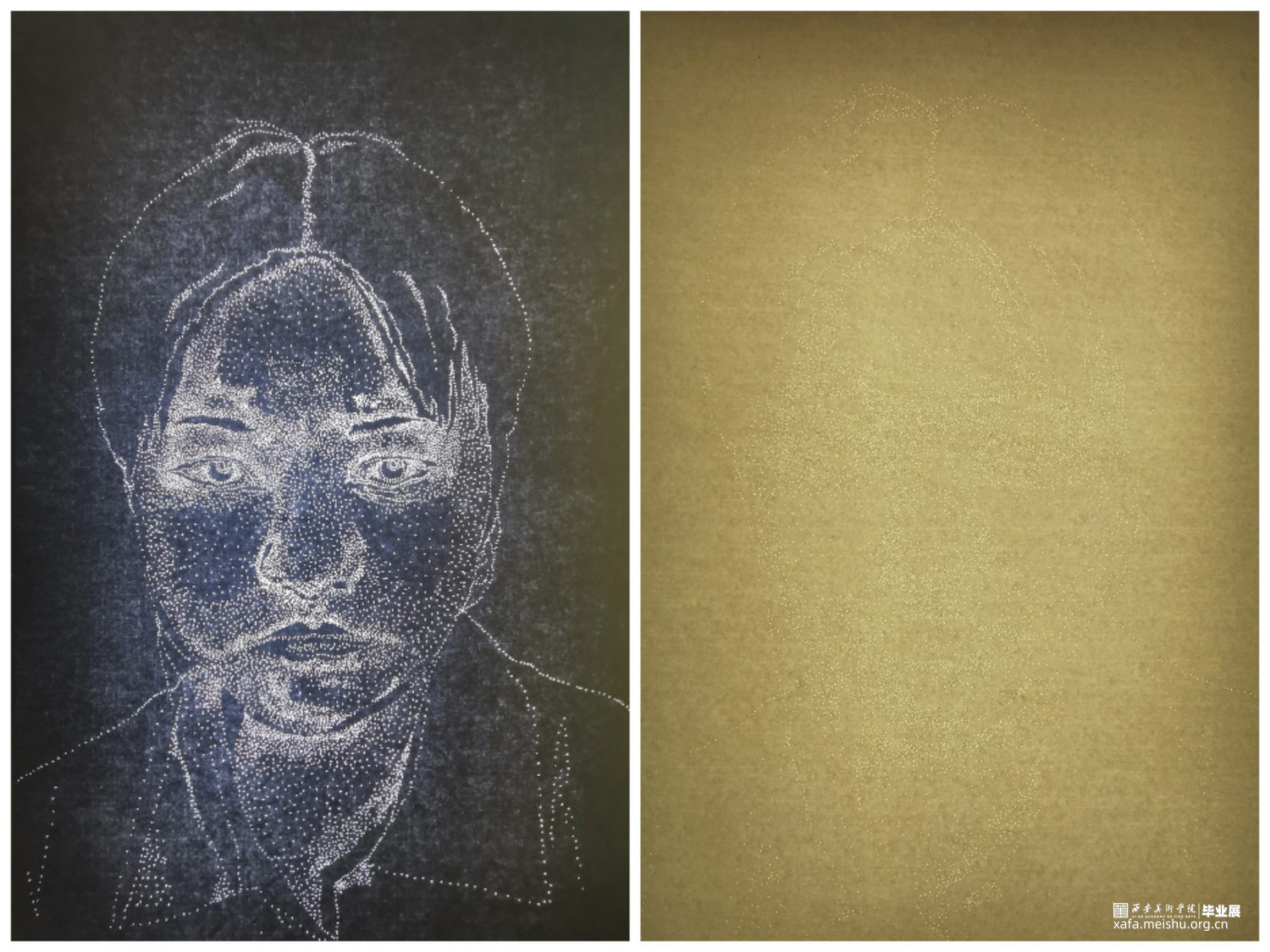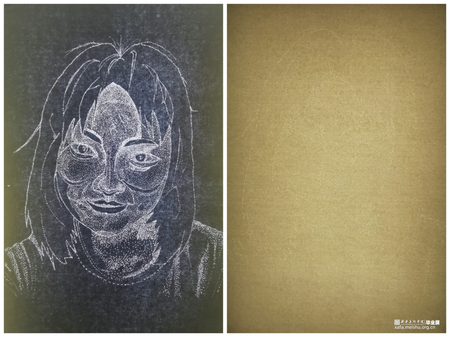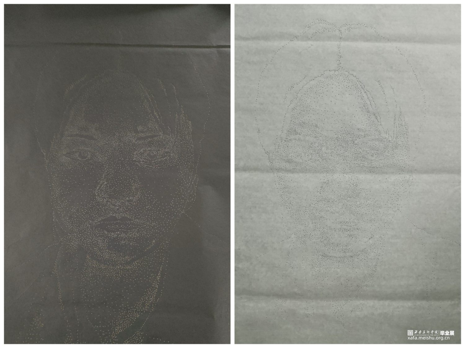 创作以我自己为主,以人的双面性为主题,扎出一笑一哭一无表情3组表情的针孔画。用一刀断阴阳的纸艺术的方式和灵感进行创作。表达了自我和万物一黑一白双面性。