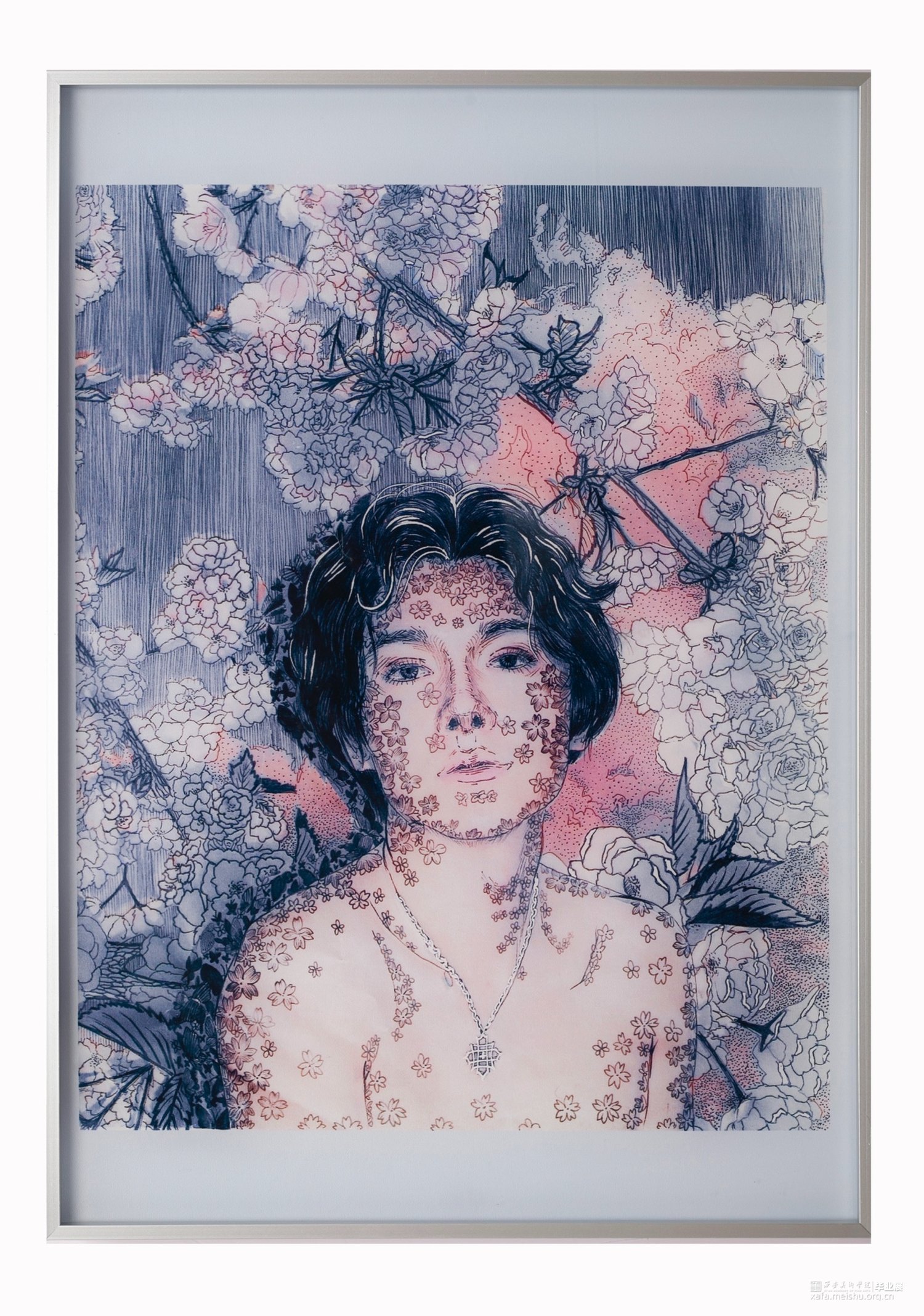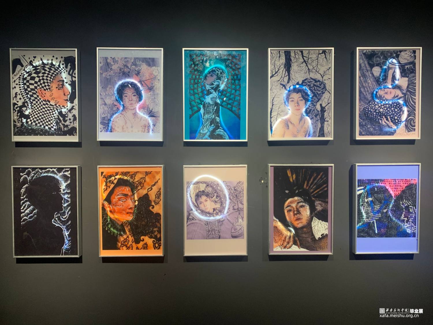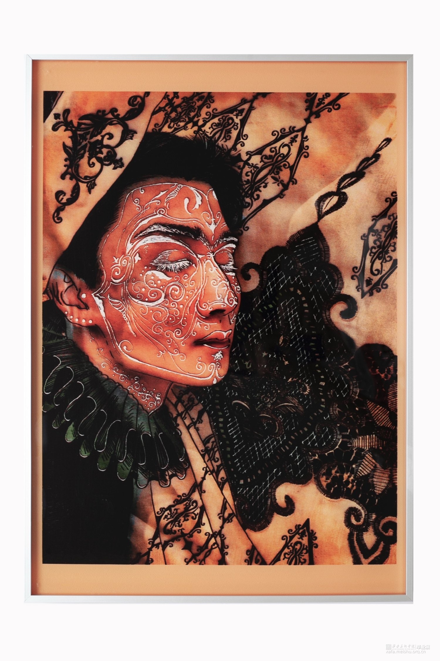 我的创作借鉴了变装皇后鲁保罗和他的变装皇后秀,“变装皇后”是一类心理性别为女喜好男扮女装的男性,他们一般借助各种各样的艺术元素并运用在艳丽的服装及妆容修饰上,将自己摇身一变成为一个类似女性的角色,从而达到一种艺术化的效果。我的创作意图就是寻找自己内心的女性形象,我在每幅作品中都运用了不同的元素,有的作品中包含着巴洛克风格的印花,有的作品则哥特风十足;有的作品显得诡异而黑暗,有的作品则花香鸟语;有的作品使人感到亢奋,有的作品让人觉得静谧。我认为我内在的女性形象一定的变幻莫测的,因此我要在我的作品中展现出风格各异的美。