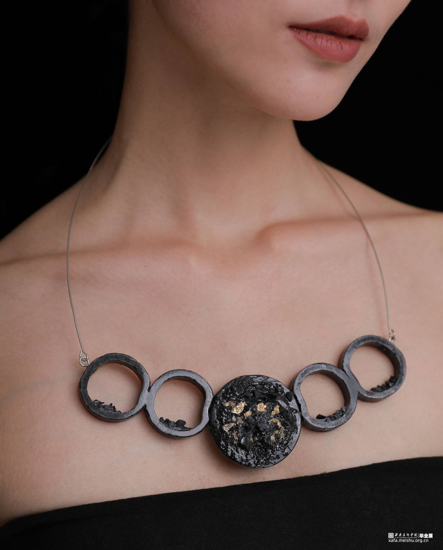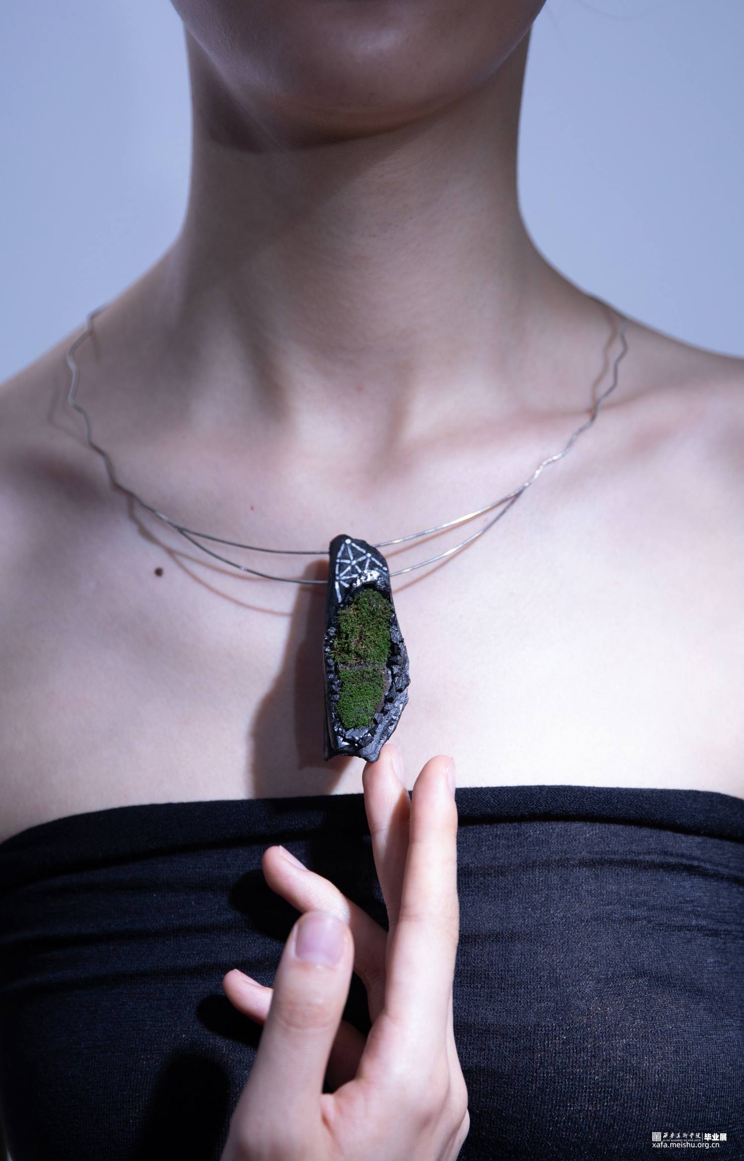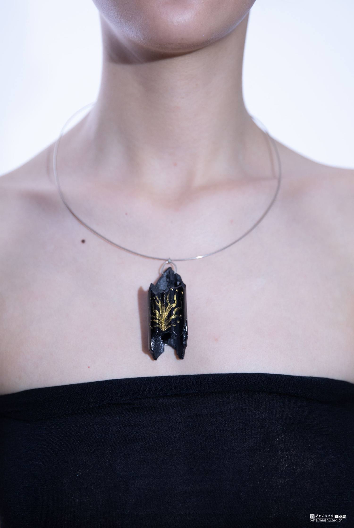 炭,是一种较易获取的资源,我选用木炭和竹炭两种不一样的炭种作为我作品的主体材料,整个系列作品的外形并无做过改动,我所做的仅是“随形就形”,并能够与我的想法契合,而这些都如禅学里所讲的“随性随缘”。因为炭的形状都是独一无二的,所以并不是所有的炭都能被我选中作为首饰的主体。这一系列作品没有草图也没有数据,都是从炭的本身出发,不仅需要对其前世(形状)的传承,亦要其成为今生的承载(我的思想即是它的灵魂)。