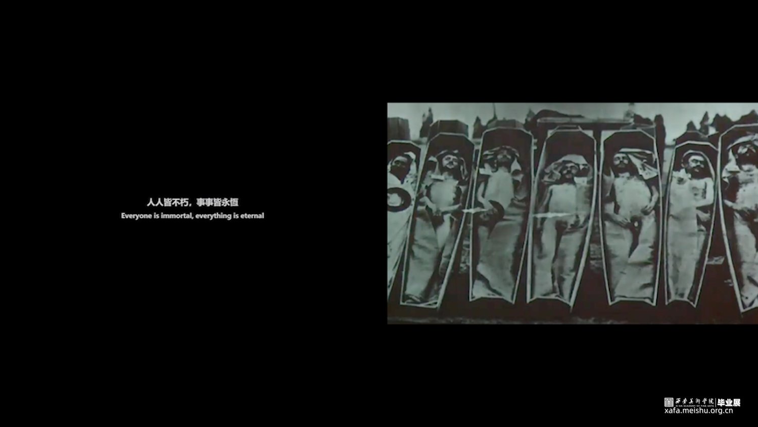 在我作品中影像与文字的中间存在着一个难以让它们重合的空白地带. 文字文本把影像的意义揭示了出来,不同文字的诱导力量在“攻陷”观众对图像的阅读与理解,影像文本也给予了文字文本具体的“真实“,在一些情况下,画面的陈诉和文字的陈诉也会产生矛盾。创作中对现成品影像的二次剪辑,不同的文字与不同的影像产生互文关系,似乎赋予了影像和文字新的生命力。