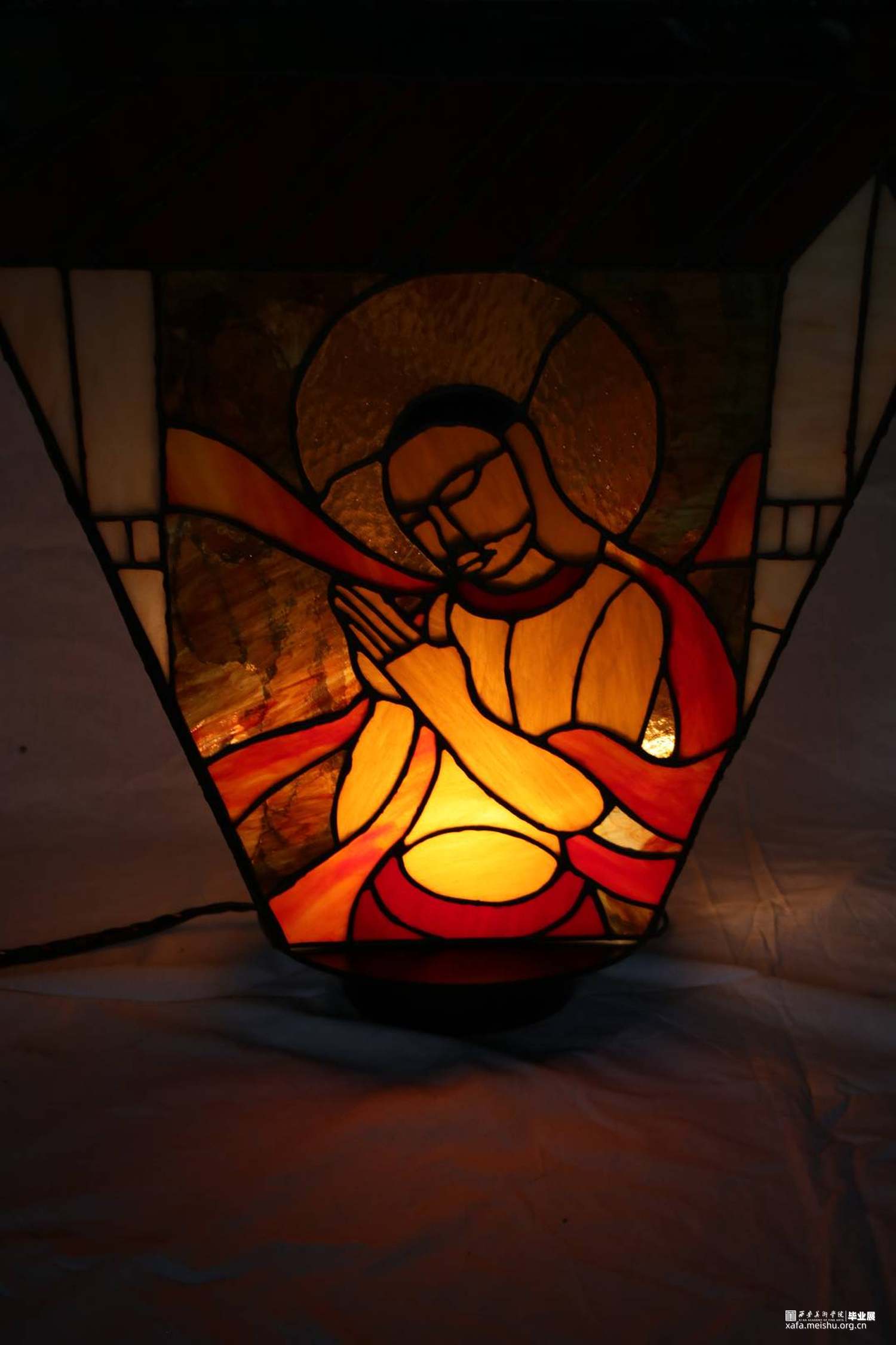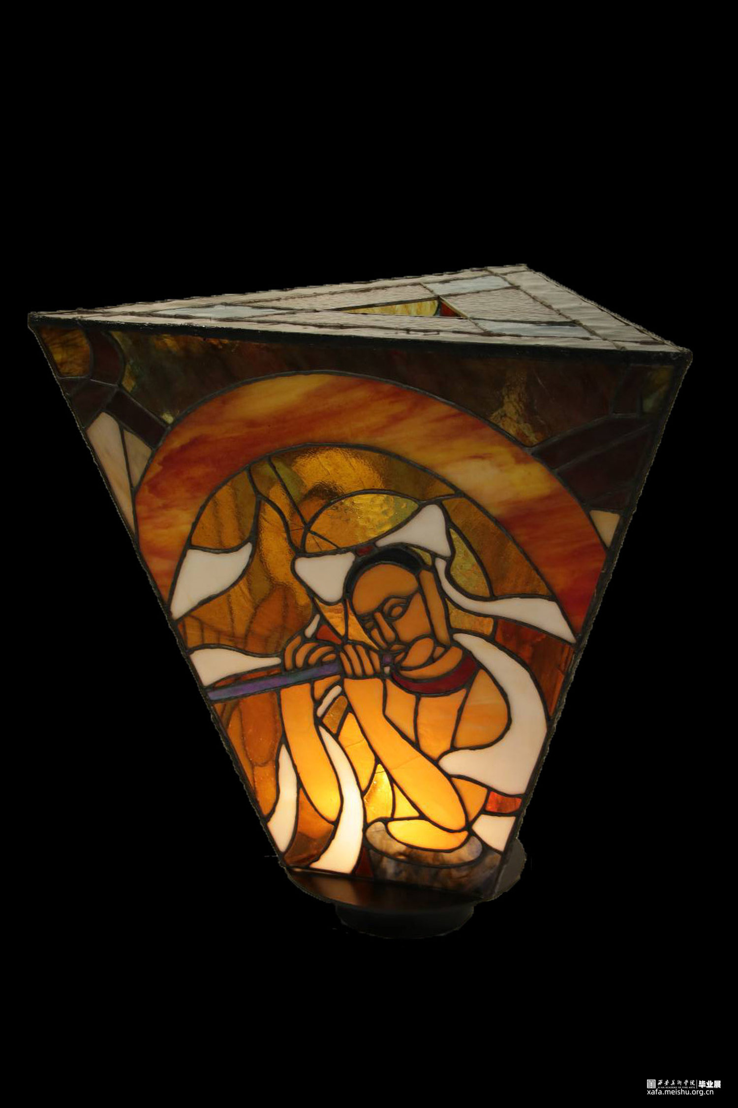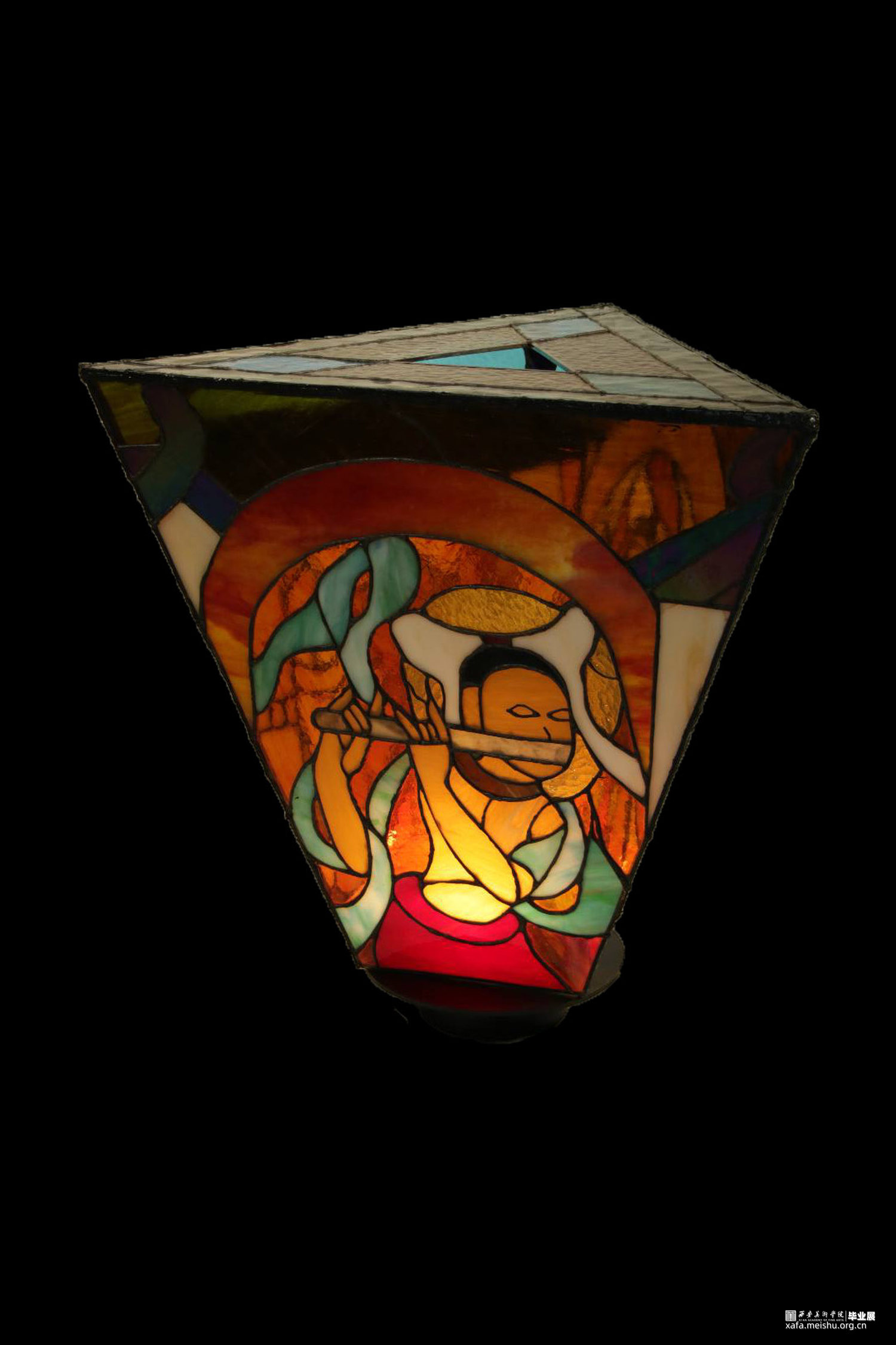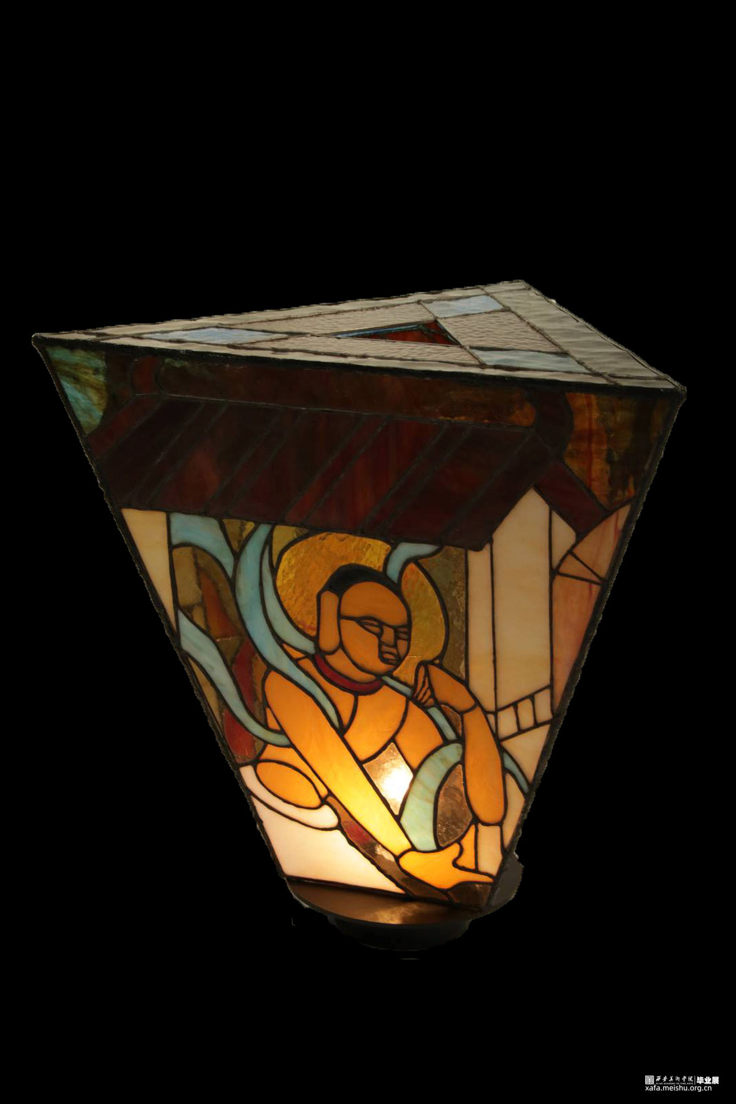 玻璃镶嵌艺术浪漫而美好,已成为家居空间中很有艺术表现力的材料和质感的结合。本作品用玻璃镶嵌工艺表现敦煌壁画的图案,做成玻璃台灯的形式来呈现。