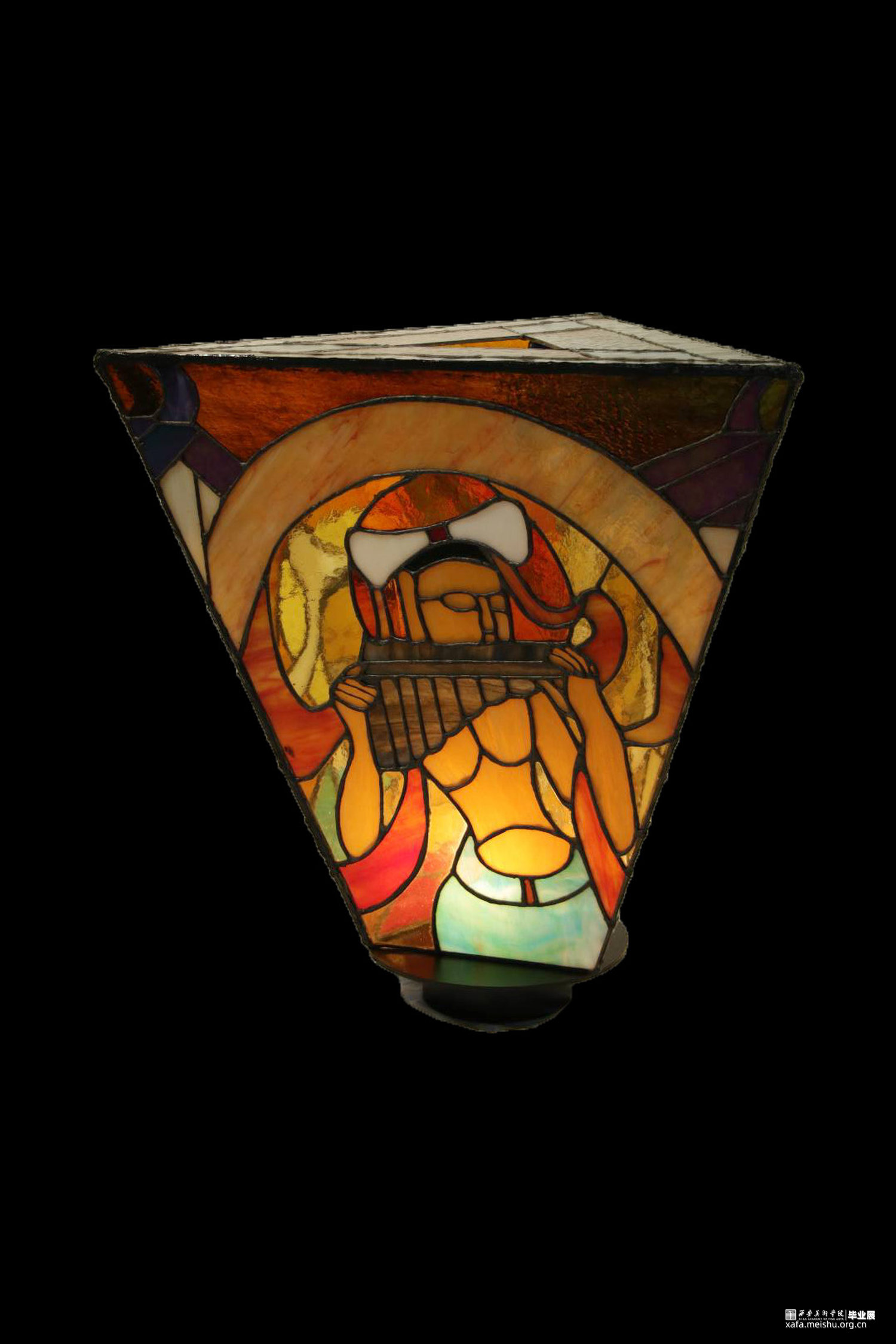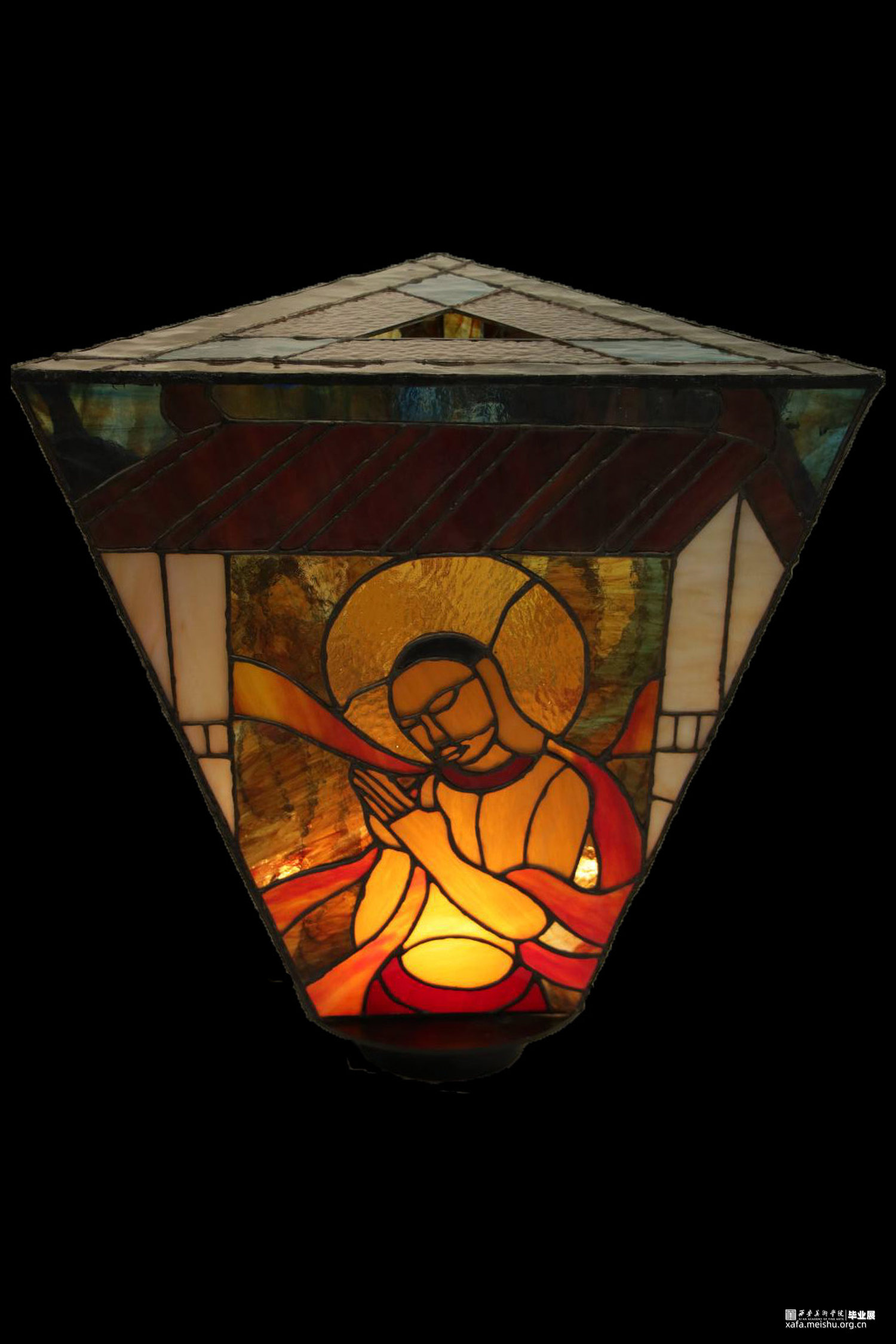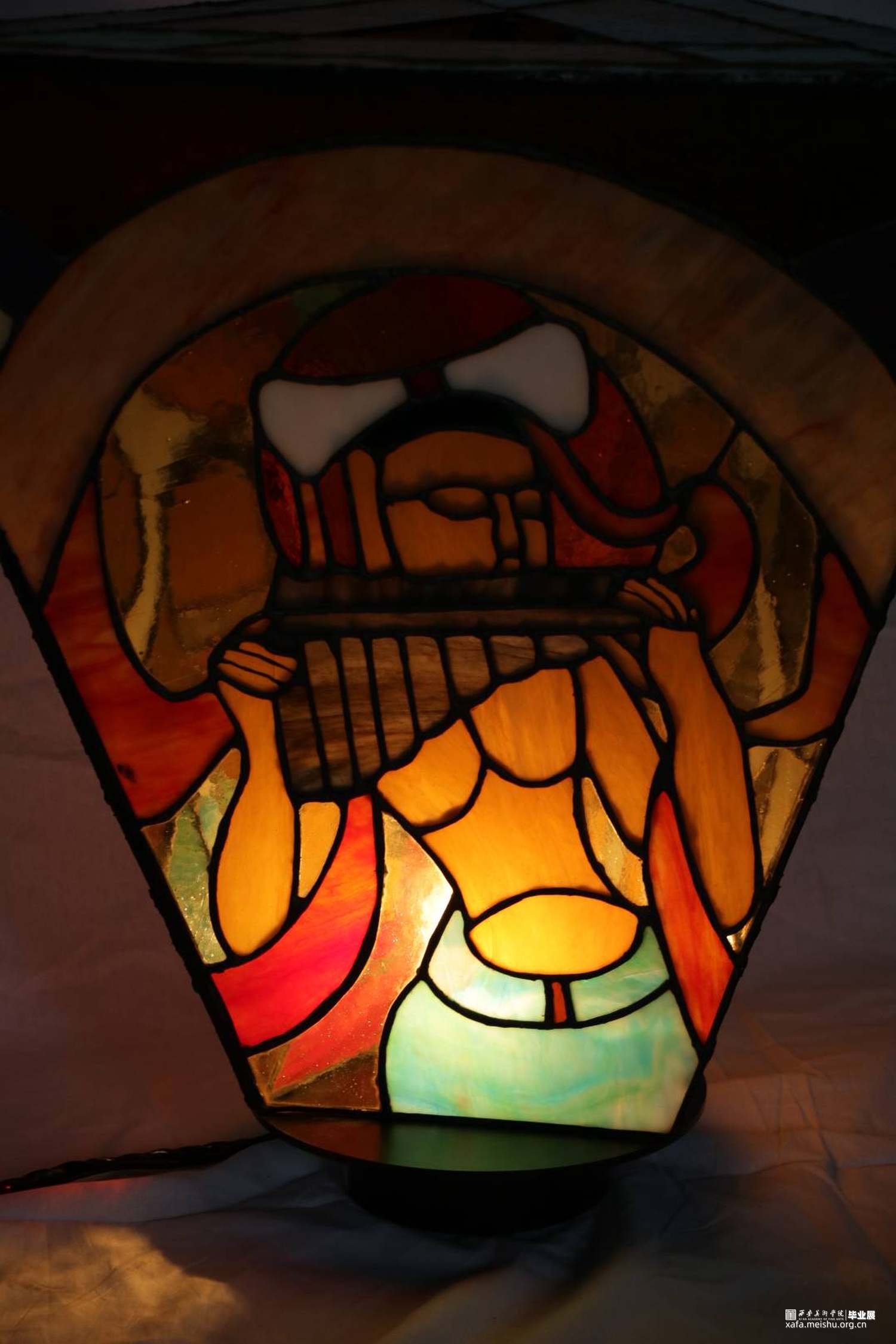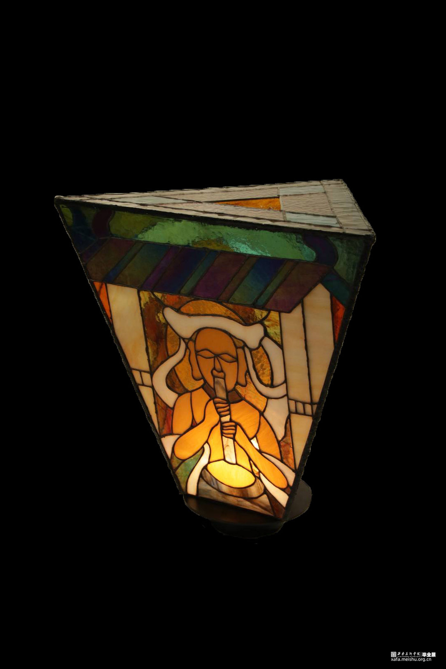 玻璃镶嵌艺术浪漫而美好,已成为家居空间中很有艺术表现力的材料和质感的结合。本作品用玻璃镶嵌工艺表现敦煌壁画的图案,做成玻璃台灯的形式来呈现。