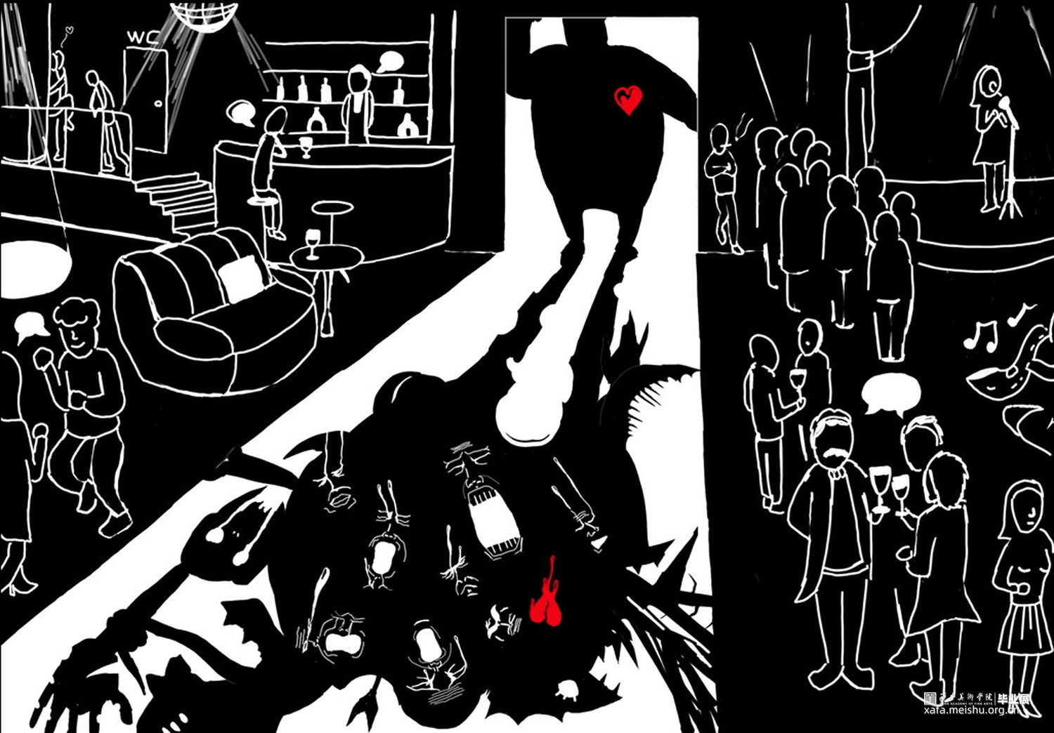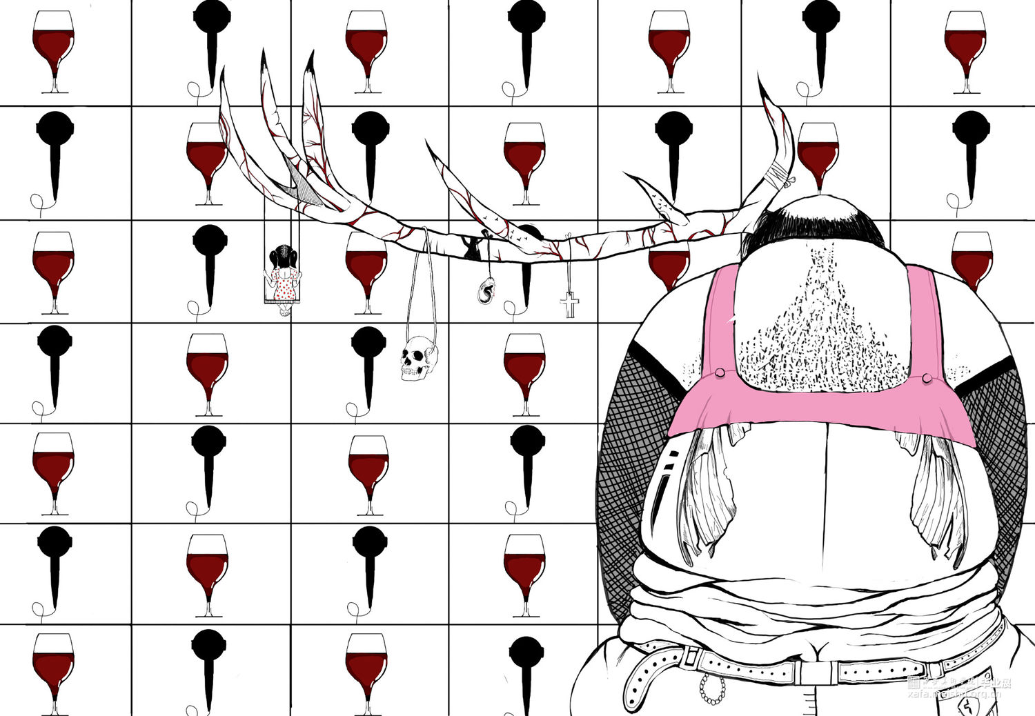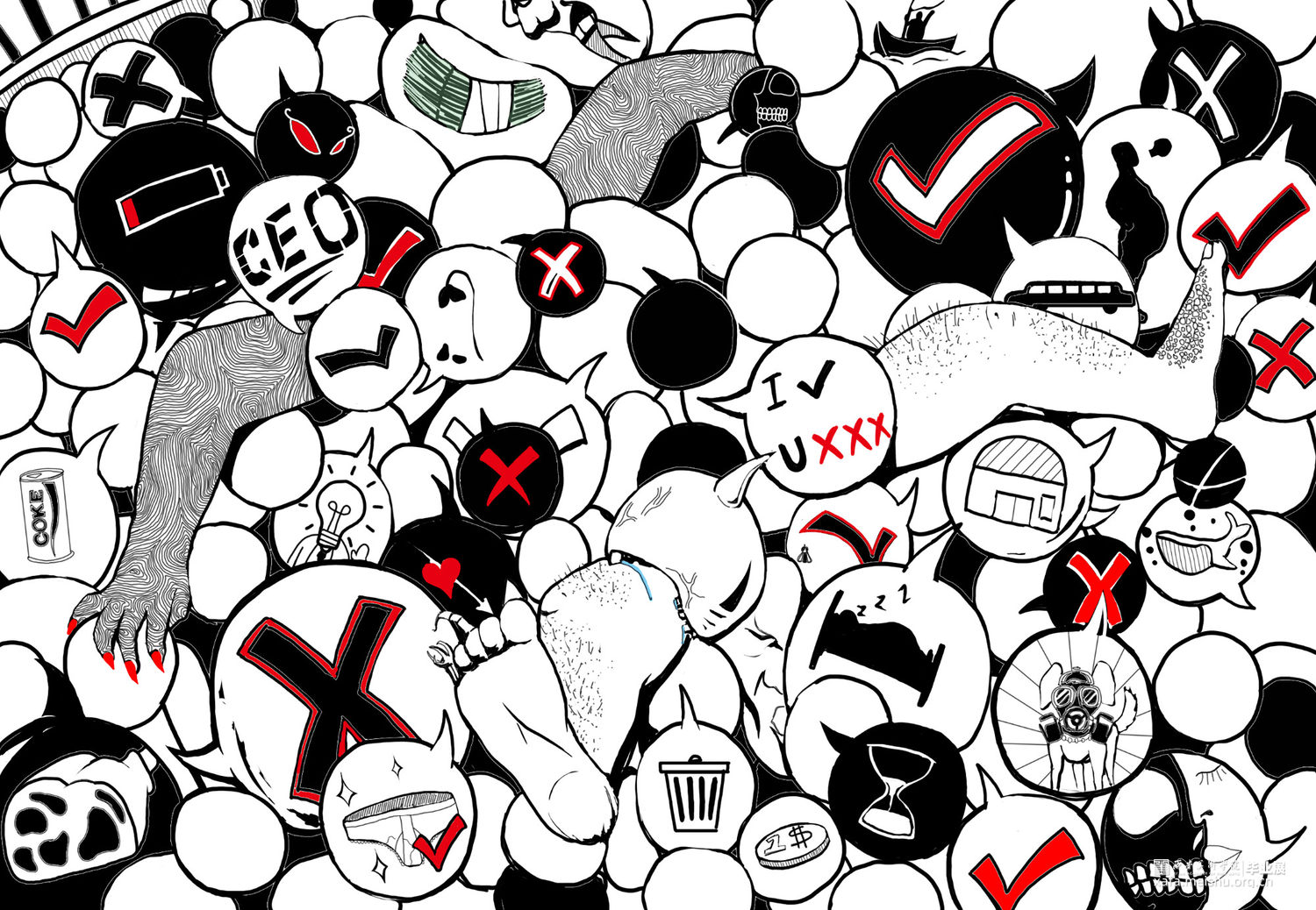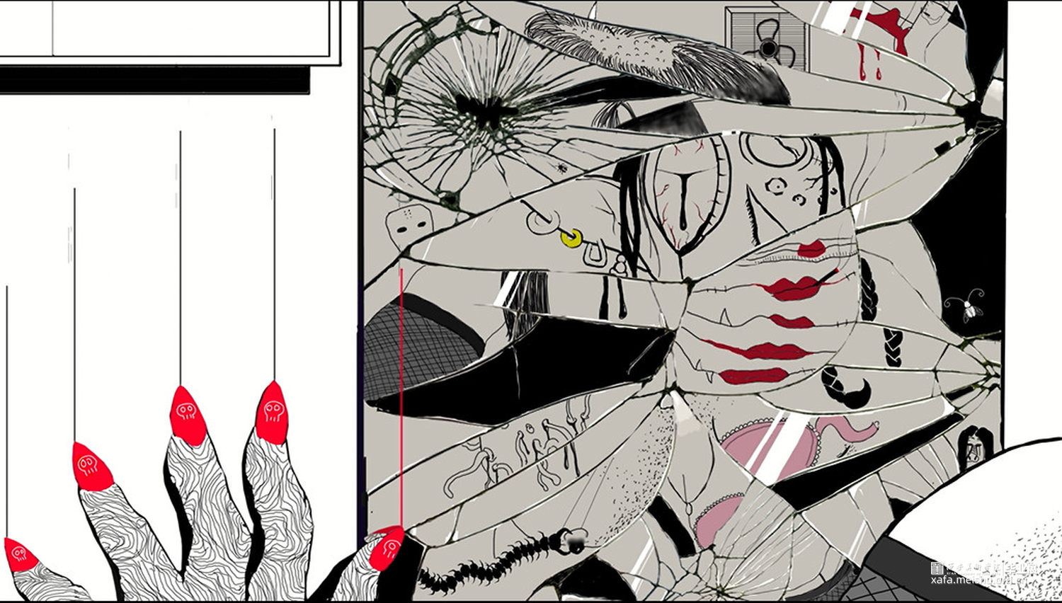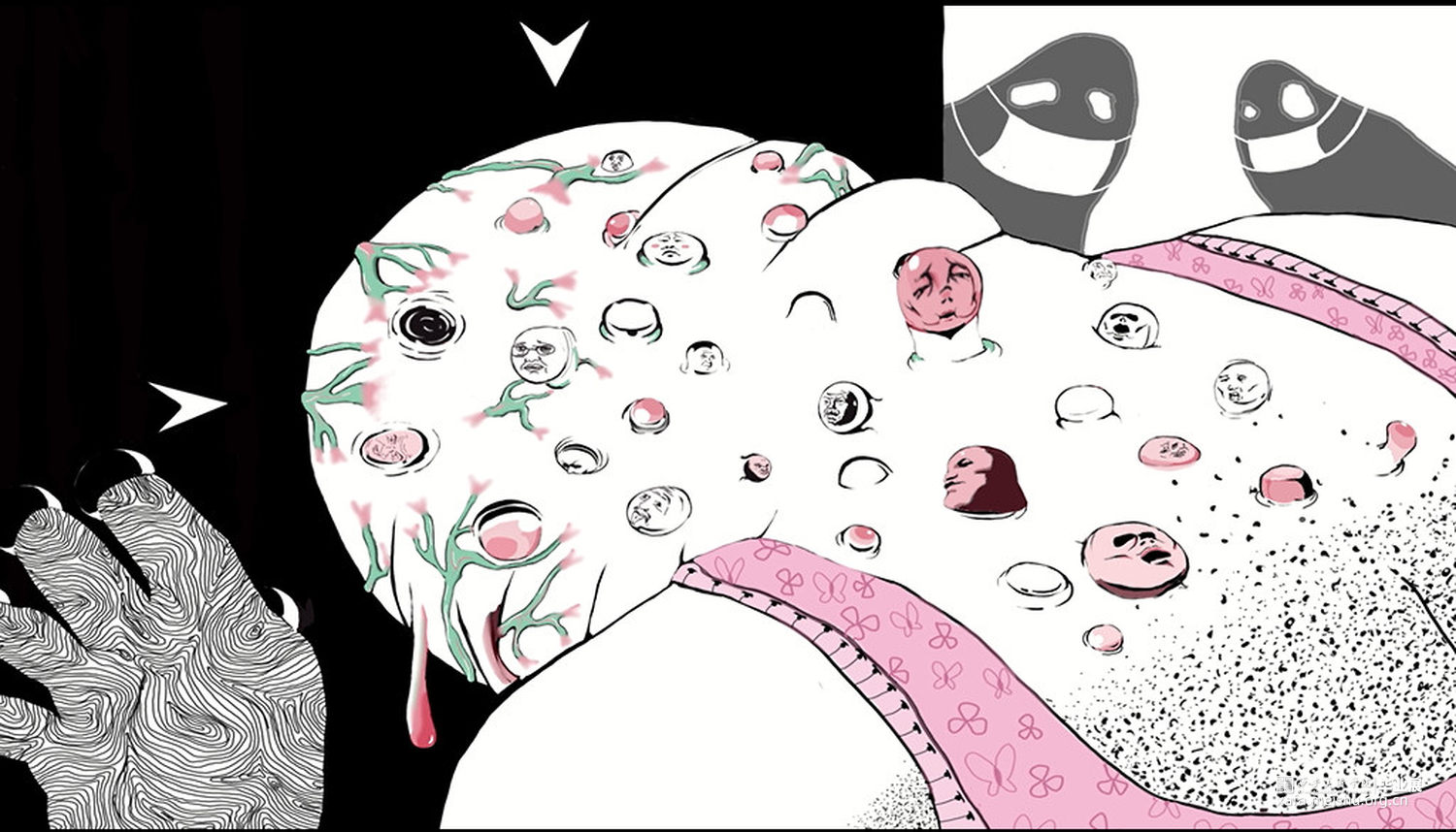 这次作品会用偏个人意向的绘画手法,以黑白为基调,红色为主要亮点色,风格主旋律是压抑的不自然的,可能会引起不适。