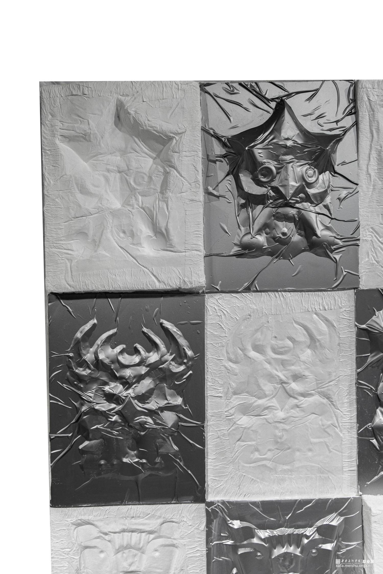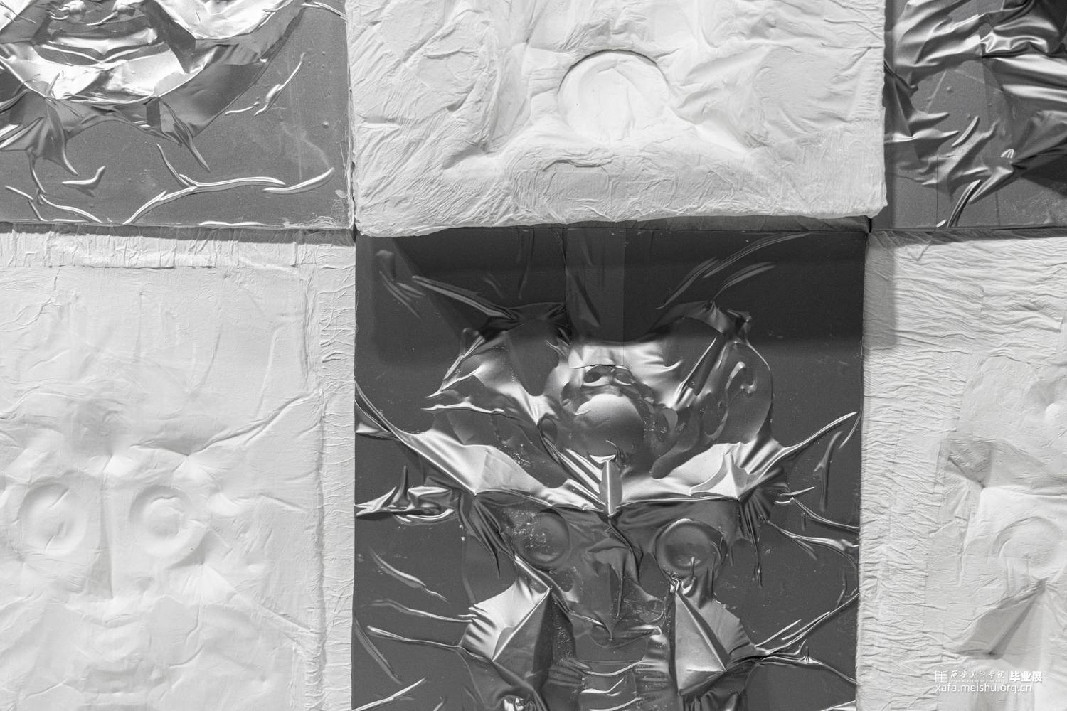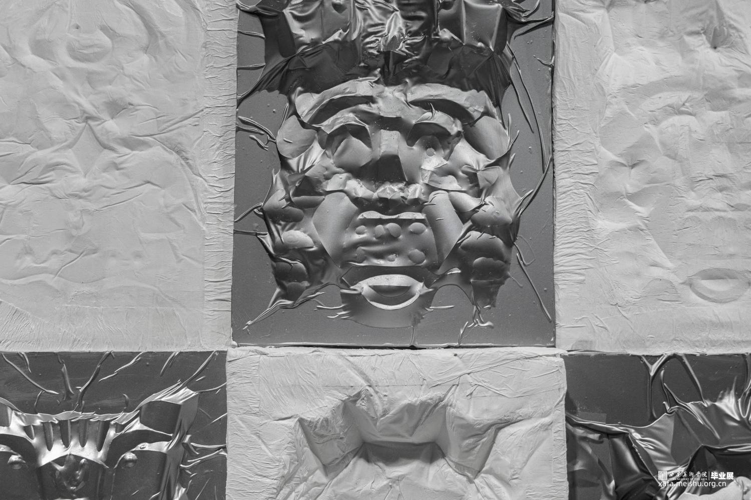 本作品旨在通过易拉罐铝皮,纸巾等材料,利用折纸包装平面图的方法,将细节折出来或裁剪出来再拼接,最后用纸覆于之上脱膜,再将两者结合。体现傩面“神鬼”的一面,表达傩面本身造型所体现的情感。