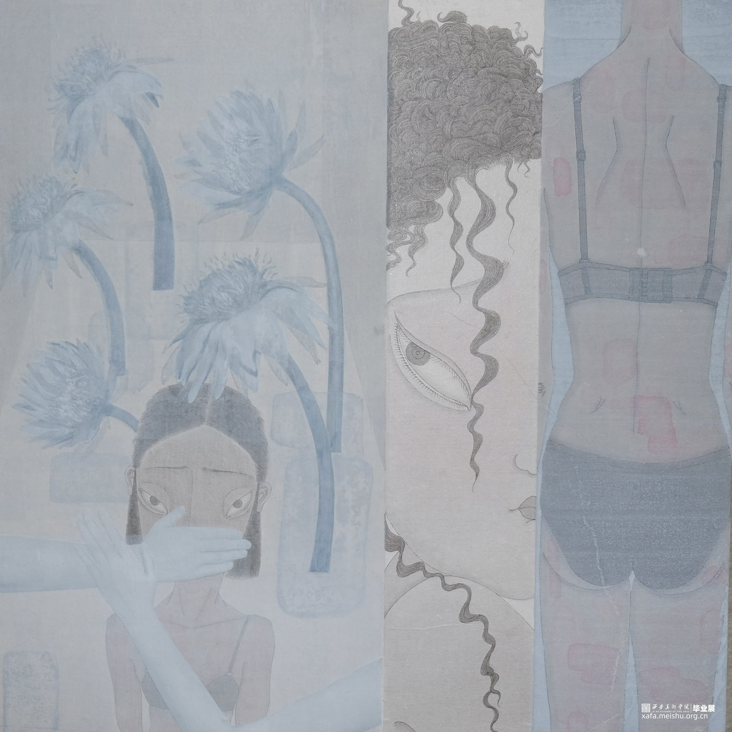 《无法无动于衷》这一组作品的灵感来源于我多次对家庭暴力事件的"偷窥"。作品中三个主体分别代表暴力事件中的三个视角:作为窥探者的"我"、冷漠的旁观者以及遭受暴力的主人公。