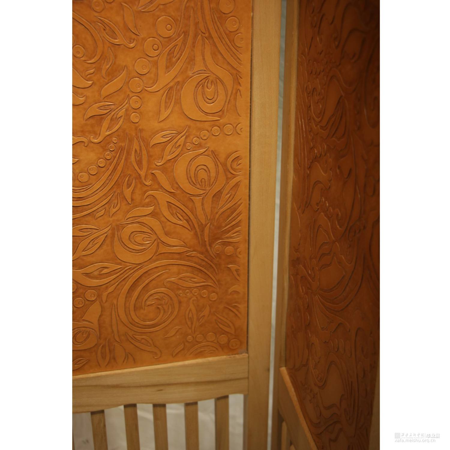 本毕业设计通过传统木作与装饰花纹图案以及手工皮雕相结合,把握皮雕艺术的特点,立足于中国传统纹样审美的基点。整体地对手工皮雕艺术进行探究,不仅仅是将其视为一种简单的精神内涵。探索中国传统花纹纹样,从中提取设计元素,在进行皮雕艺术创作的过程中保留皮革朴素自然的特征并保留皮革的天然纹理,继而与传统木作技法相结合,展现中国传统艺术的美感。