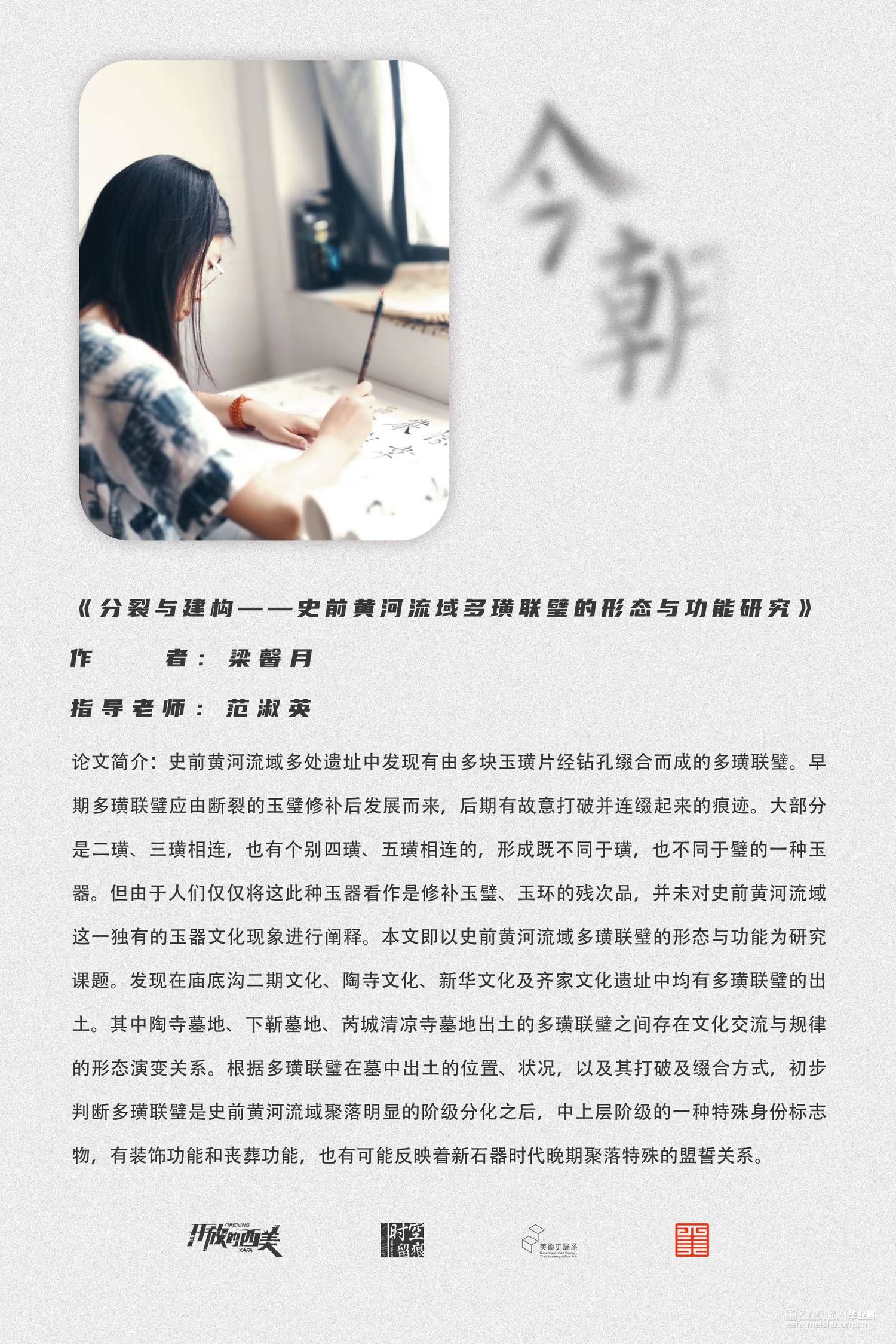 标题:分裂与建构——史前黄河流域多璜联璧的形态与功能研究作者:梁馨月指导教师:范淑英摘要:史前黄河流域多处遗址中发现有由多块玉璜片经钻孔缀合而成的多璜联璧。早期多璜联璧应由断裂的玉璧修补后发展而来,后期有故意打破并连缀起来的痕迹。大部分是二璜、三璜相连,也有个别四璜、五璜相连的,形成既不同于璜,也不同于璧的一种玉器。但由于人们仅仅将这此种玉器看作是修补玉璧、玉环的残次品,并未对史前黄河流域这一独有...