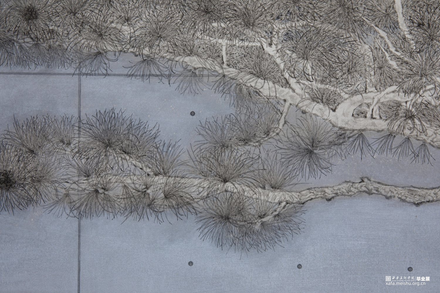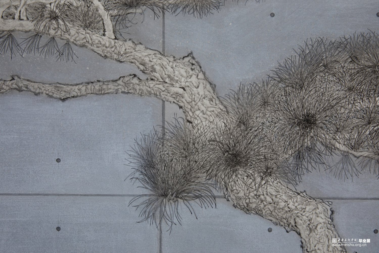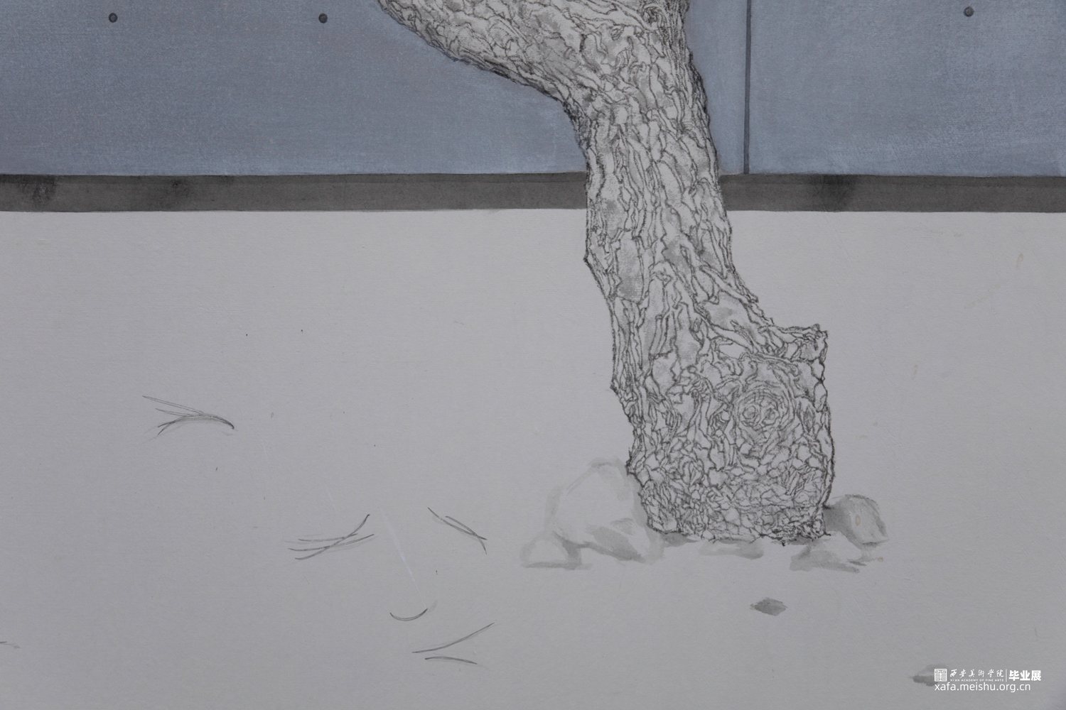通过黑白手法以单纯形式美感来玩味主体在画面的分割和平衡,引向侘寂美学的角度。侘是在简洁安静中融入质朴的美,寂是时间的光泽。整体暧昧的,模糊的,巨大的虚无,巨大的无力,营造出一种纤细,但是又弥散悲哀。逐步工业化的社会,水泥的冰冷与松的寂静相互呼应,映射出“我”与周遭的关系。