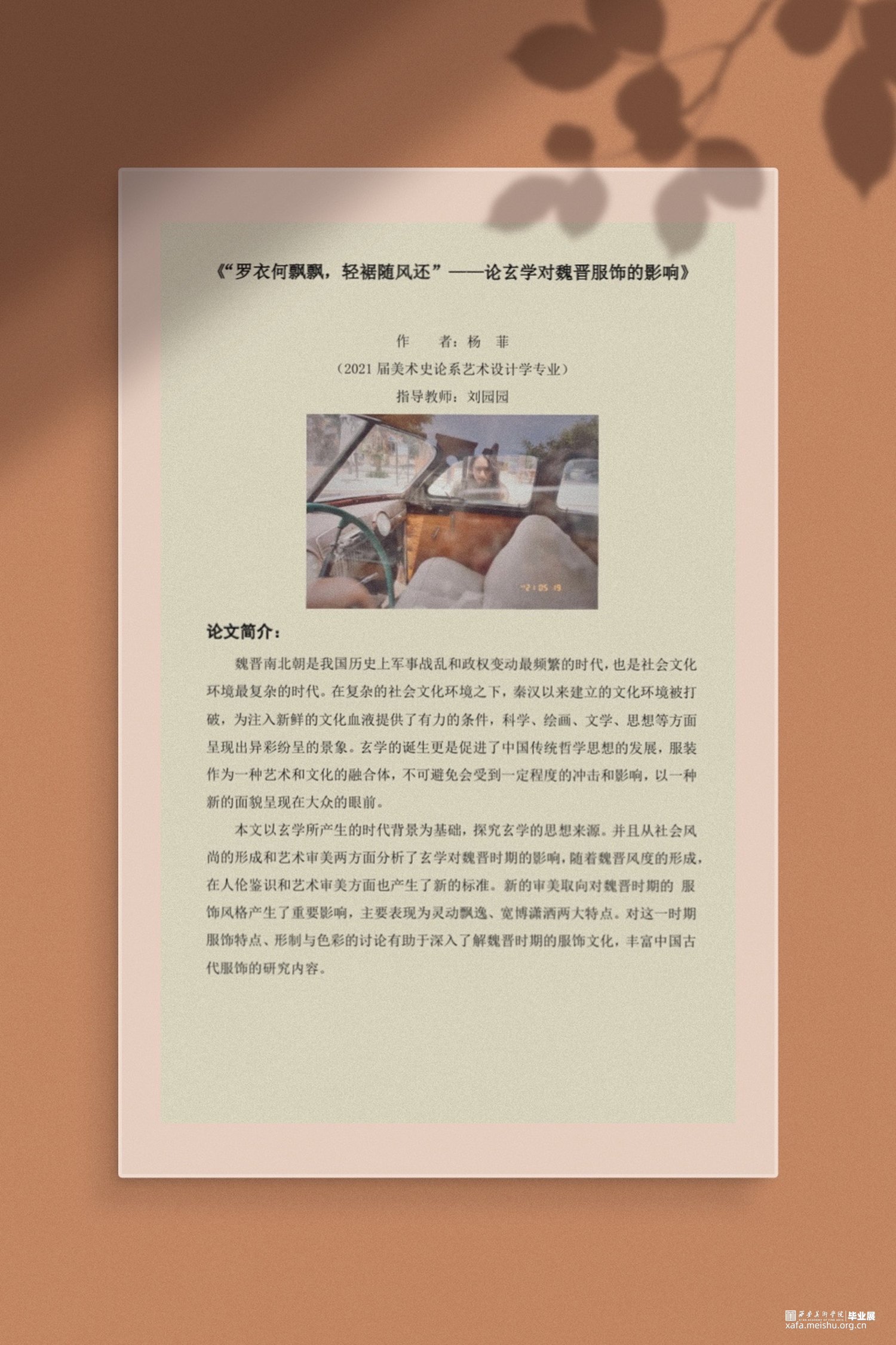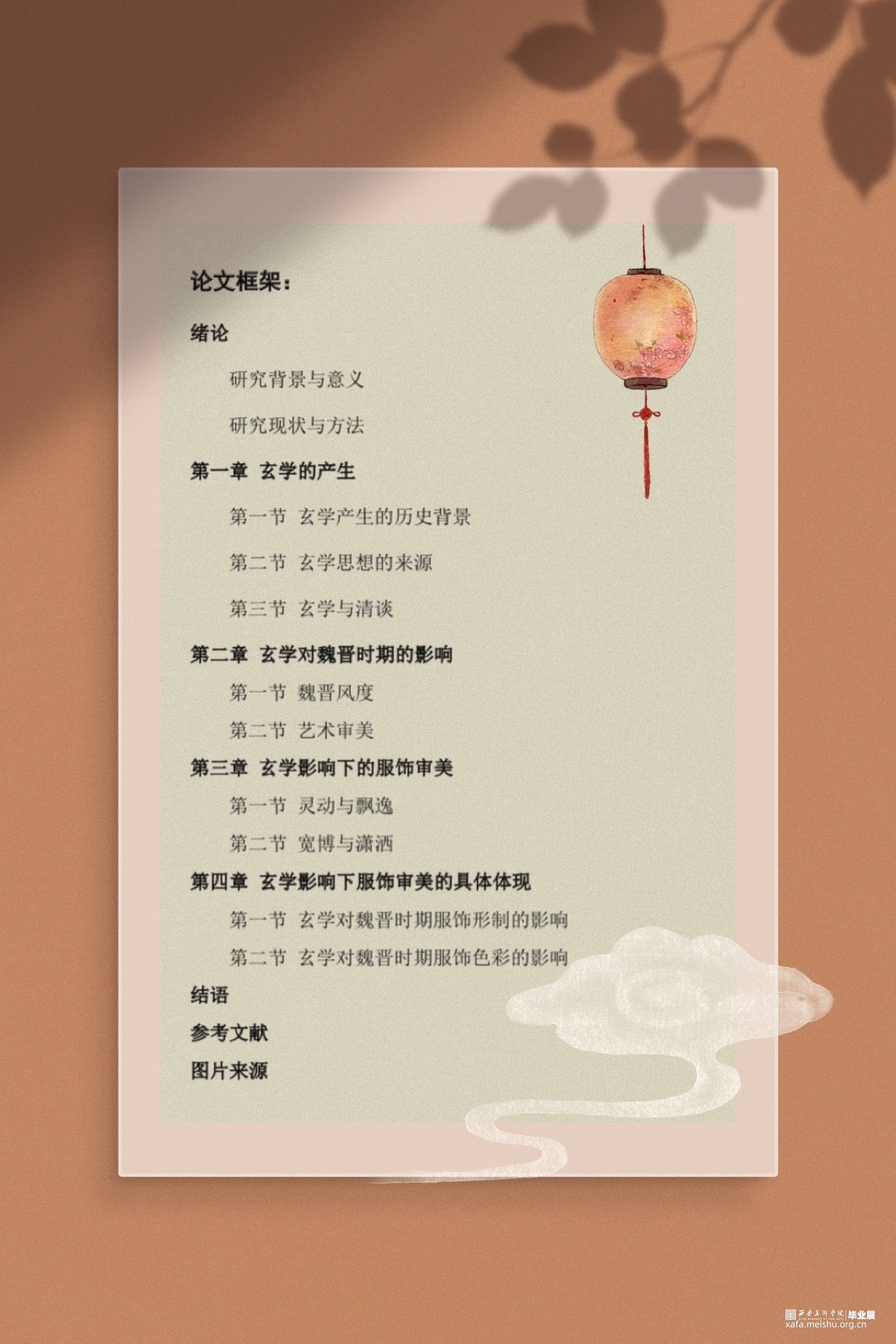 本文以玄学所产生的时代背景为基础,探究玄学的思想来源。并且从社会风尚的形成和艺术审美两方面分析了玄学对魏晋时期的影响,随着魏晋风度的形成,在人伦鉴识和艺术审美方面也产生了新的标准。新的审美取向对魏晋时期的 服饰风格产生了重要影响,主要表现为灵动飘逸、宽博潇洒两大特点。对这一时期服饰特点、形制与色彩的讨论有助于深入了解魏晋时期的服饰文化,丰富中国古代服饰的研究内容。