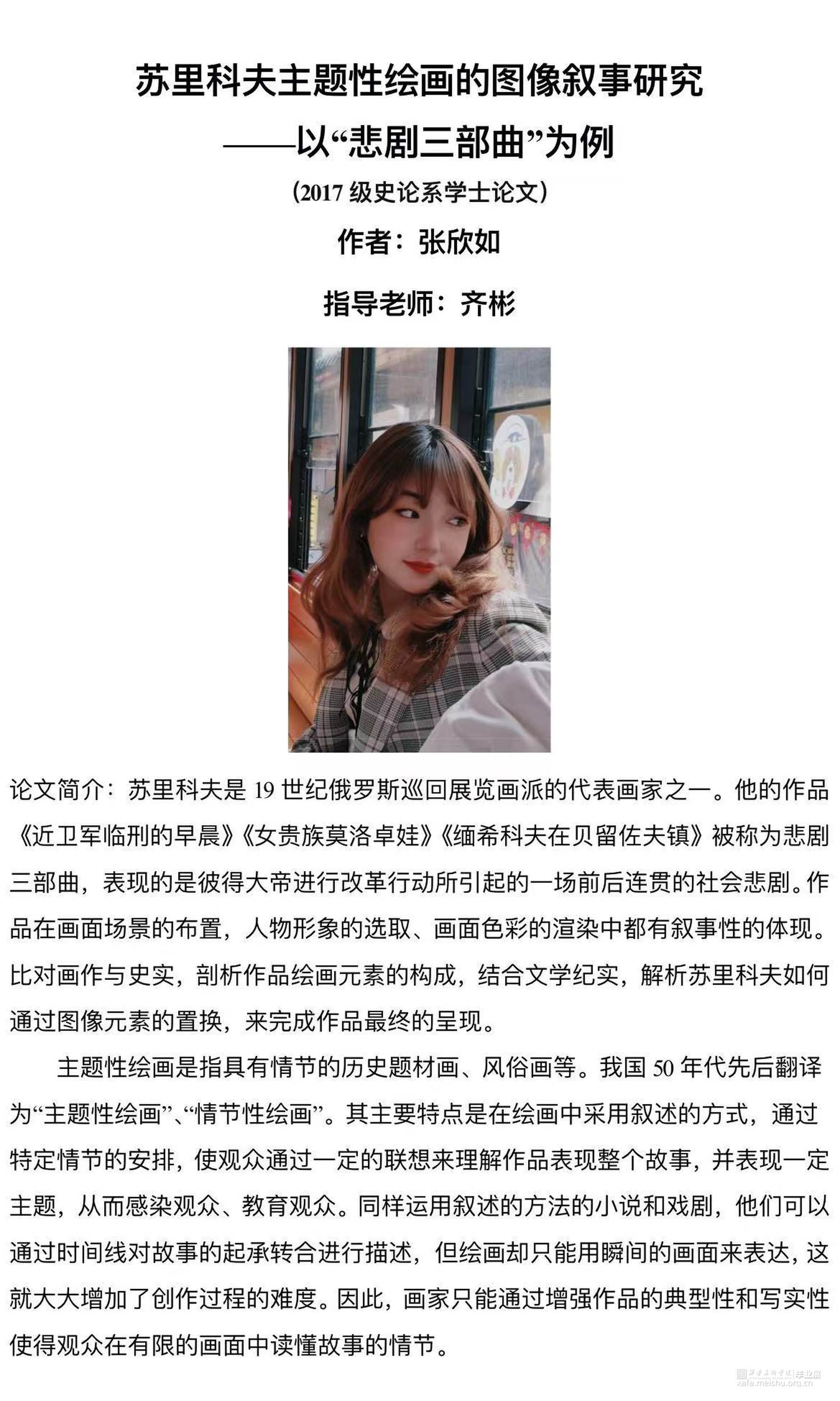 苏里科夫是19世纪俄罗斯巡回展览画派的代表画家之一。他的作品《近卫军临刑的早晨》《女贵族莫洛卓娃》《缅希科夫在贝留佐夫镇》被称为悲剧三部曲,表现的是彼得大帝进行改革行动所引起的一场前后连贯的社会悲剧。作品在画面场景的布置,人物形象的选取、画面色彩的渲染中都有叙事性的体现。比对画作与史实,剖析作品绘画元素的构成,结合文学纪实,解析苏里科夫如何通过图像元素的置换,来完成作品最终的呈现。