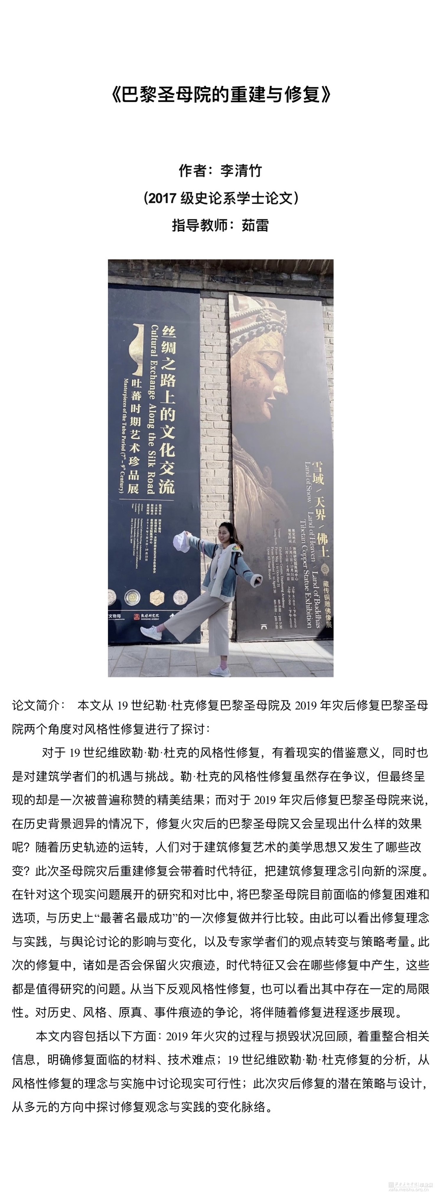对巴黎圣母院火灾现状和灾后重建以及十九世纪维欧勒•勒•杜克对巴黎圣母院实施的风格性修复进行了文献研究、理论分析(修复历史与理论的梳理)、新闻信息收集与整合
