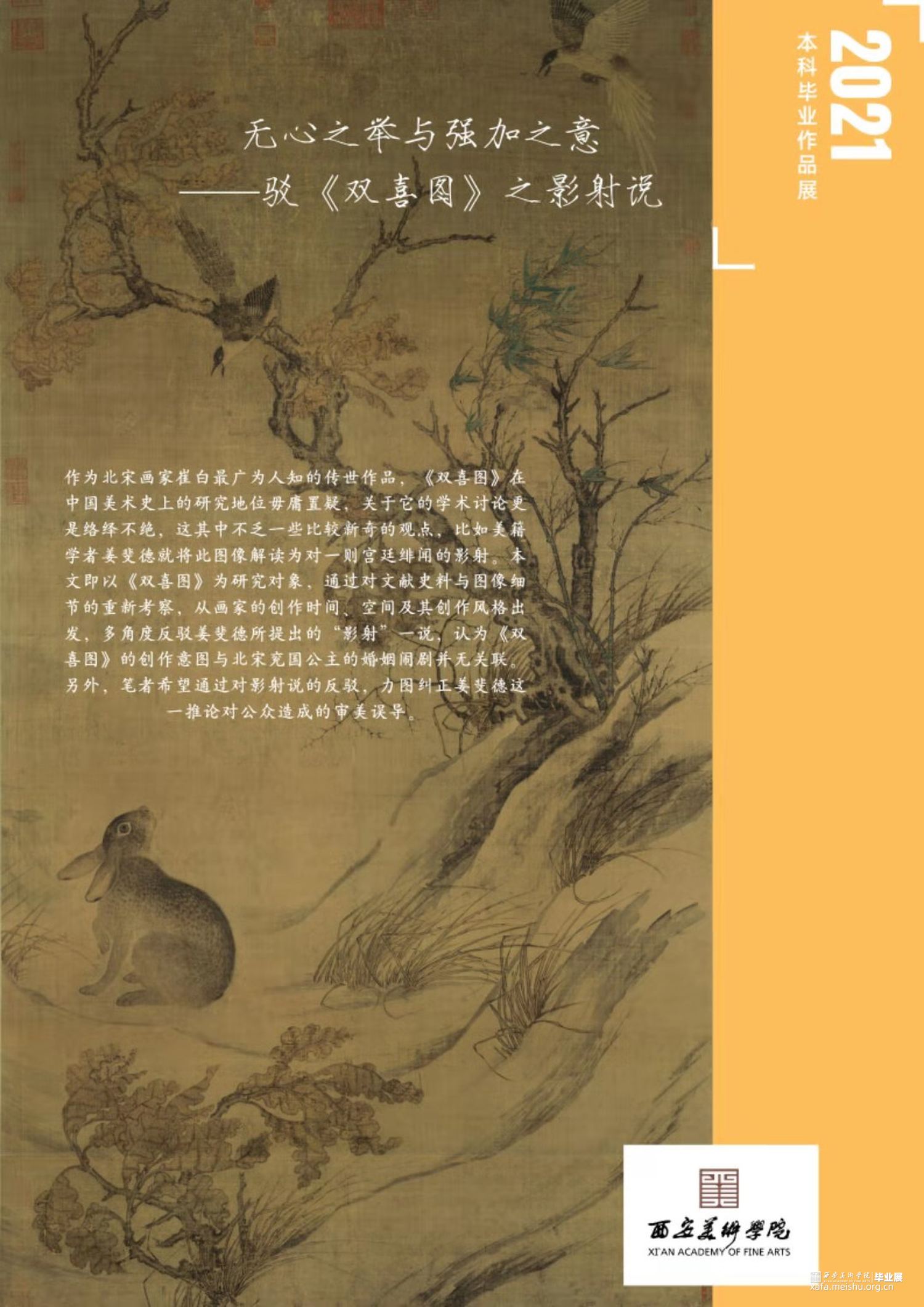 作为北宋画家崔白最广为人知的传世作品,《双喜图》在中国美术史上的研究地位毋庸置疑,关于它的学术讨论更是络绎不绝,这其中不乏一些比较新奇的观点,比如美籍学者姜斐德就将此图像解读为对一则宫廷绯闻的影射。本文即以《双喜图》为研究对象,通过对文献史料与图像细节的重新考察,从画家的创作时间、空间及其创作风格出发,多角度反驳姜斐德所提出的“影射”一说,认为《双喜图》的创作意图与北宋兖国公主的婚姻闹剧并无关联。...