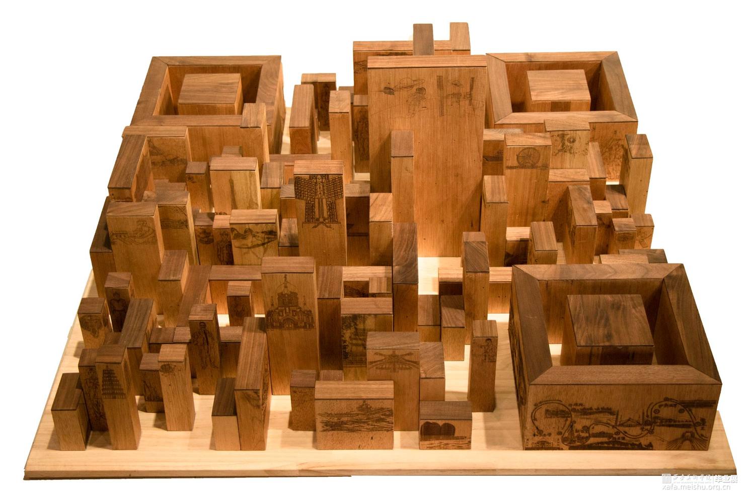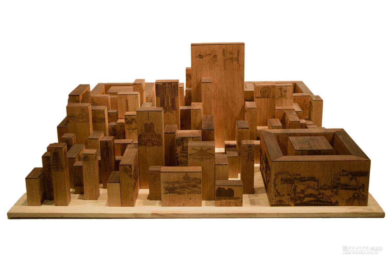 这个作品采用了木作艺术来体现,设计构思来自于传统建筑。我选择传统建筑作为主题,只因精雕细刻、精益求精的特质打动了我。《复兴之城》运用了木艺的技巧,挑选、划线、裁切、凿除、平刨、抛光、上油等程序来制作。