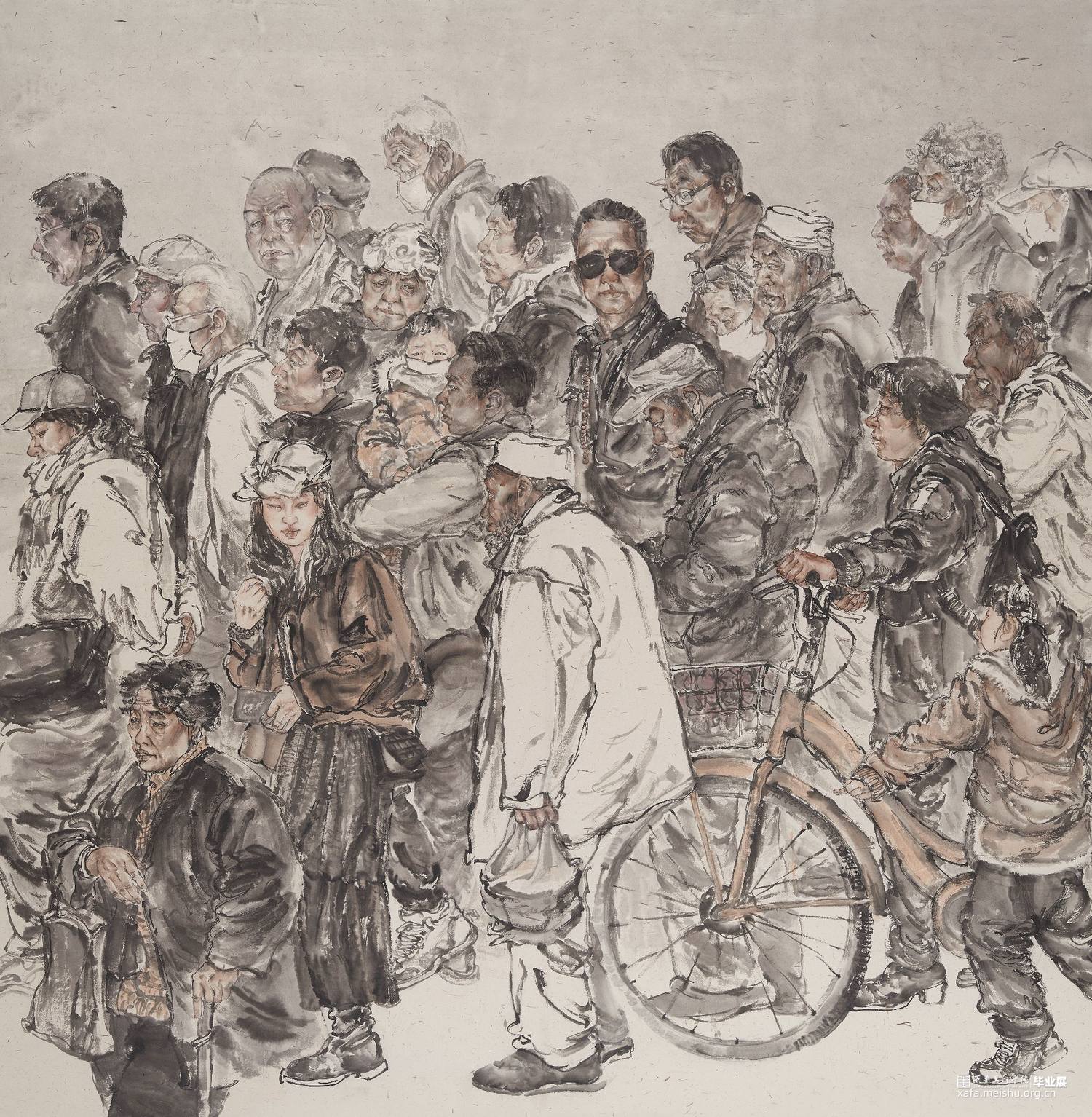 每一个形象的塑造都是从生活中选择和收集的。西仓,一个记录着老百姓生活常态的地方给了我大量的创作灵感,所以我的作品决定用浑雄大气的水墨来记录这个神秘且充满人间烟火气的集市。取材西仓,并赋予《涌》是因为在这里的人,他们似乎都只有这一个身份,是群体中的一员,是普通的老百姓。在西仓这里我向自己发问——人群为何会涌现在这个地方?像动物一样成群出现最终的目标是否一样的?在表达这种现象的同时,更是记录当代老百姓这样的生活常态。