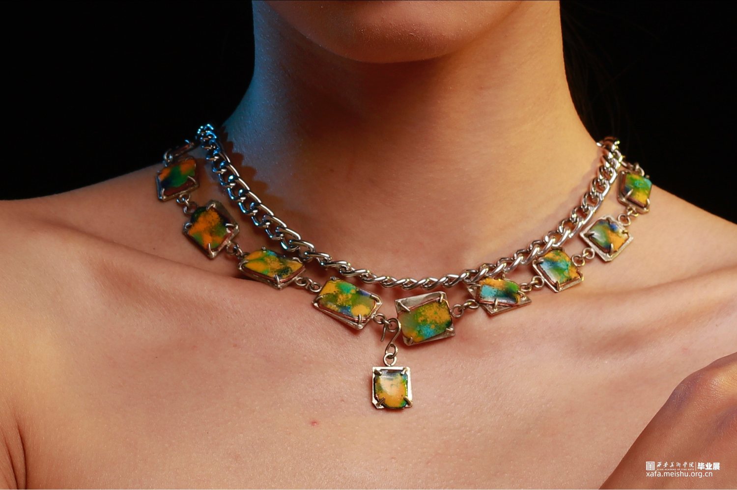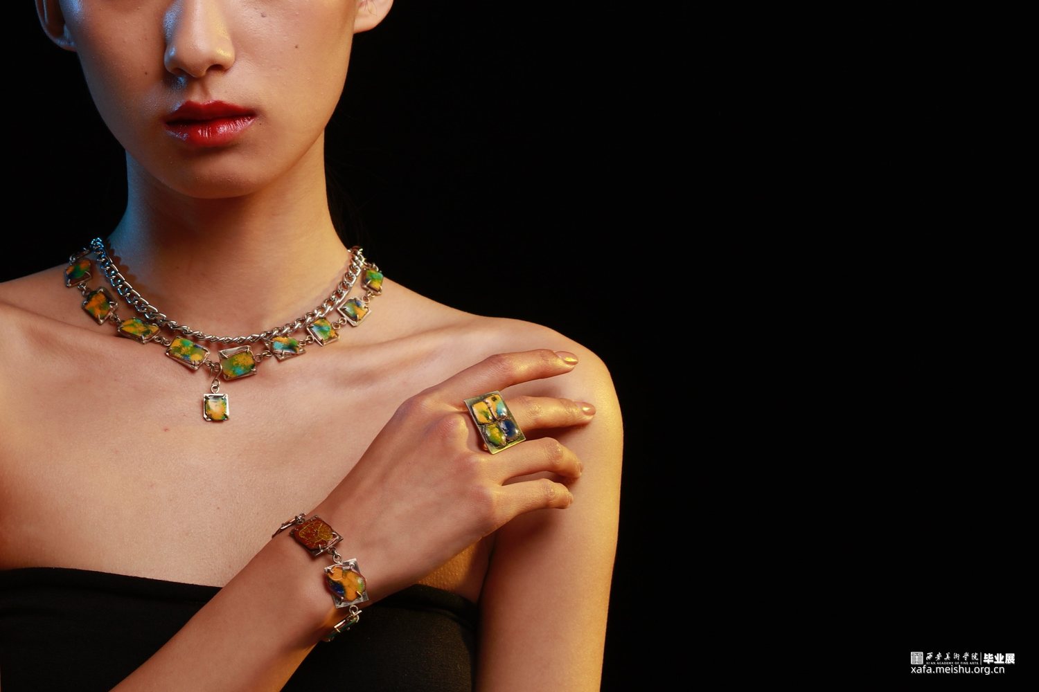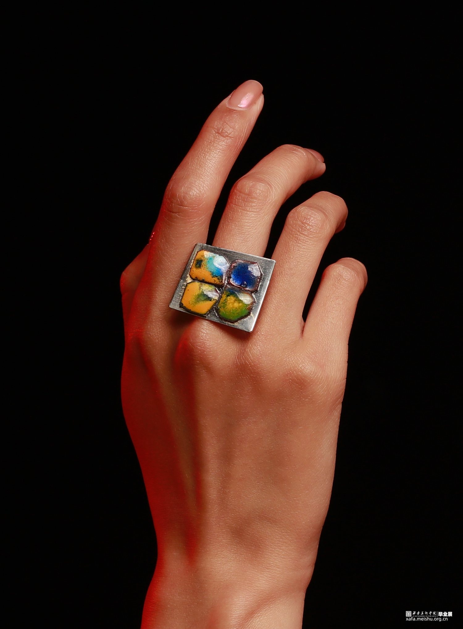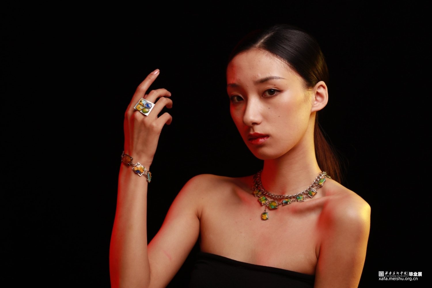 我的毕业设计灵感来自于唐草纹与团花纹。之所以选择唐草纹与团花纹也是我对中国文化的喜爱。我的第一件作品取用唐草纹的“S”排列组合并将其打乱形成一种扭曲感。其廓形取用团花图案加入自身感受所形成的戒指。同时戒指的扭曲到发散也代表了我的设计方向以及脑中的构思到找到方向确定制作等。之后的作品也代表着我设计思路的延申,在这个年纪想尝试多种方式的设计表达。我的作品采用白铜,锆石等材料制作,在制作中遇到了许多问题。同时也让我的制成思路得到了许多启发。我是一个向往自由,无拘无束的人。所以我的作品中也融入了一些对各种方向的冲刺之感,还有一些打磨之痕。