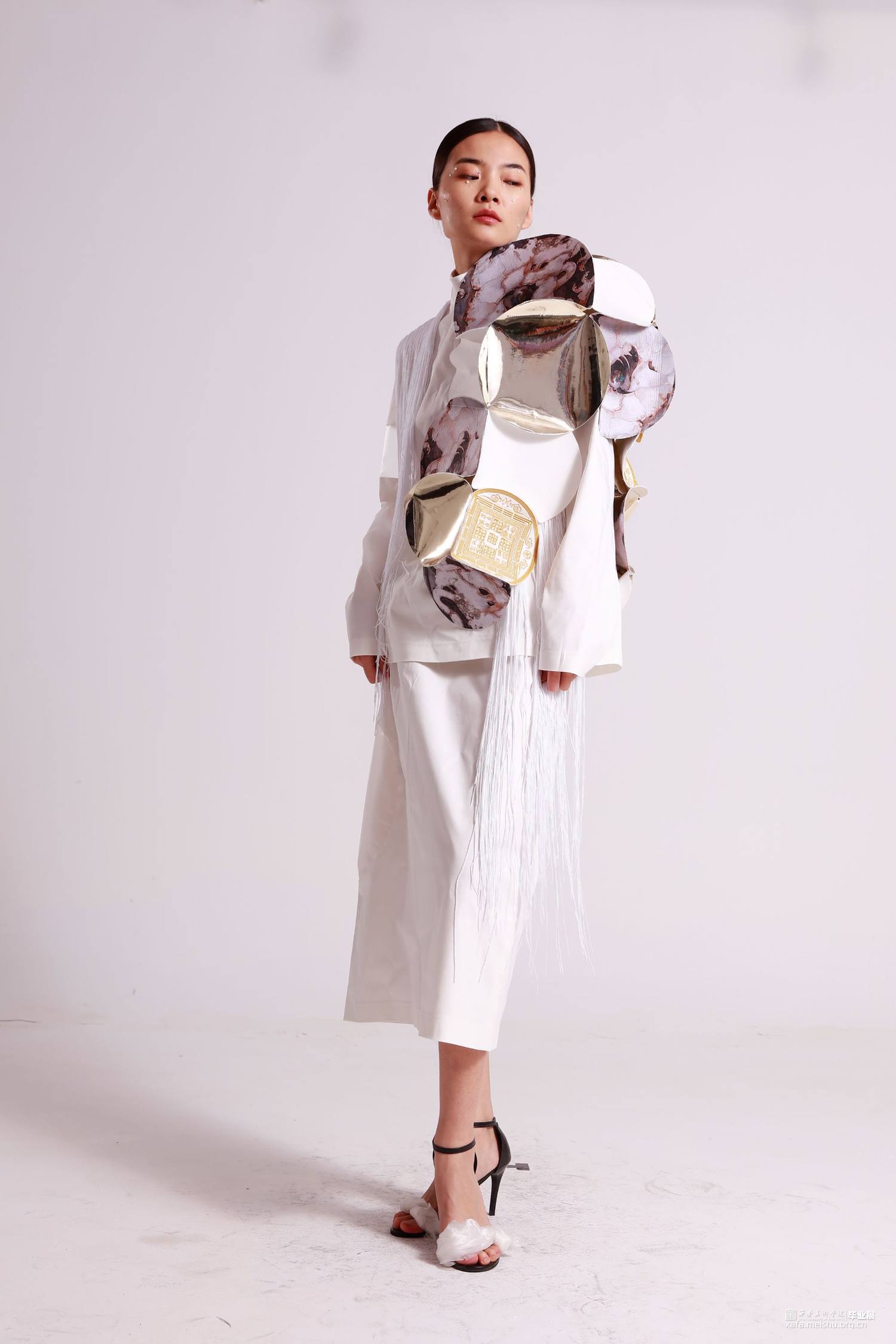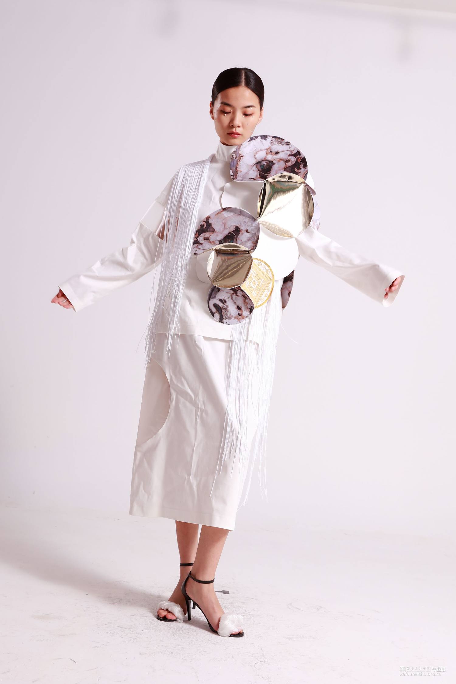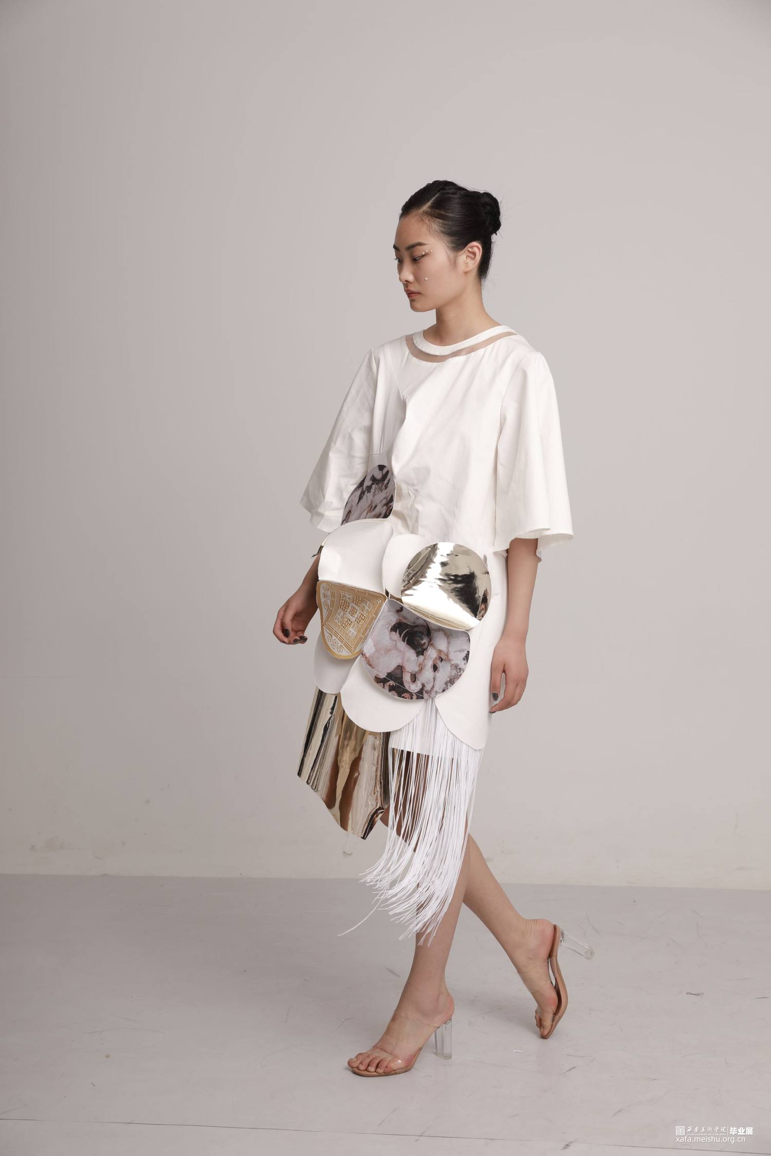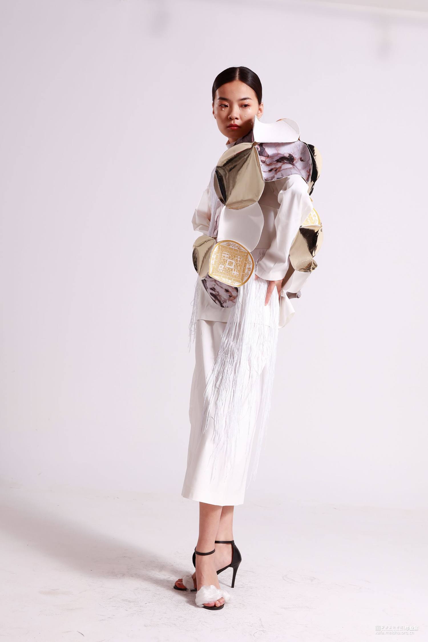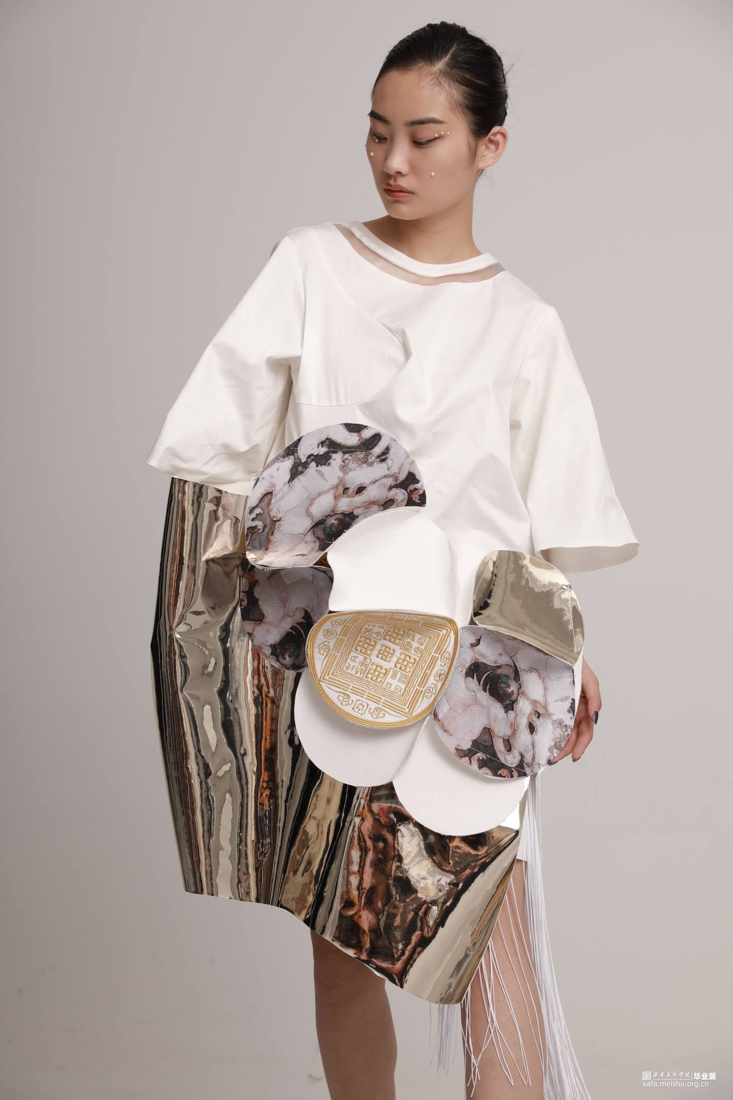 以铜为鉴,可正衣寇;以古为鉴,可知兴替;以人为鉴,可明得失。自古以来,“镜”的意象便在中国文化的长河频频出现。在中国传统本土宗教——道教中,更是被赋予了不同的意义。这系列作品通过对于唐代道教纹样铜镜的分析与研究,将了唐代道教纹样铜镜元素应用到现代创意礼服设计中,通过实践探索将铜镜纹样和廓形与礼服设计相结合,利用礼服主流时尚的造型和搭配衬托传统纹样的艺术魅力,体现传统文化之美。