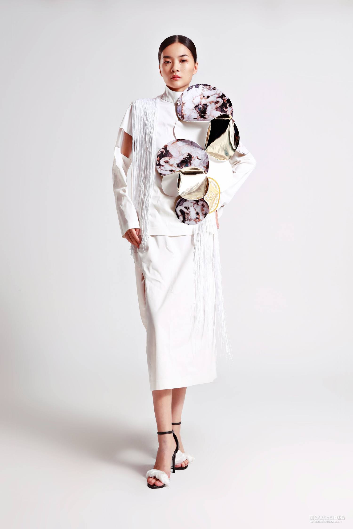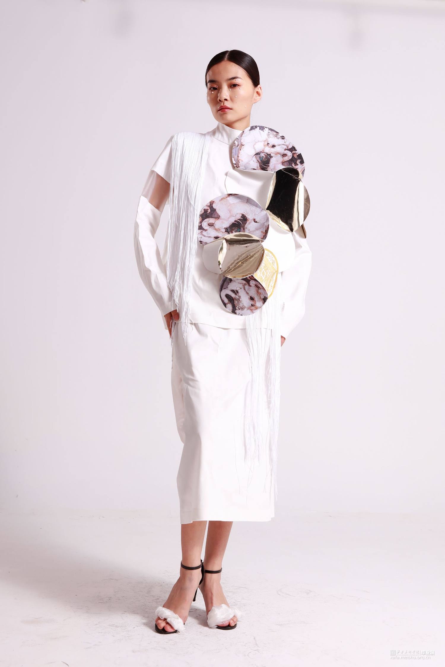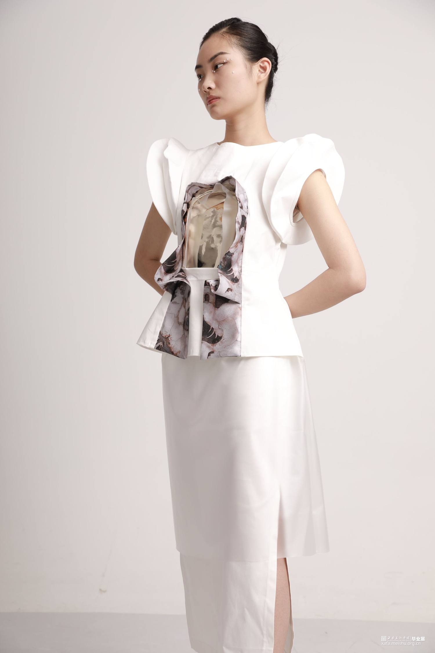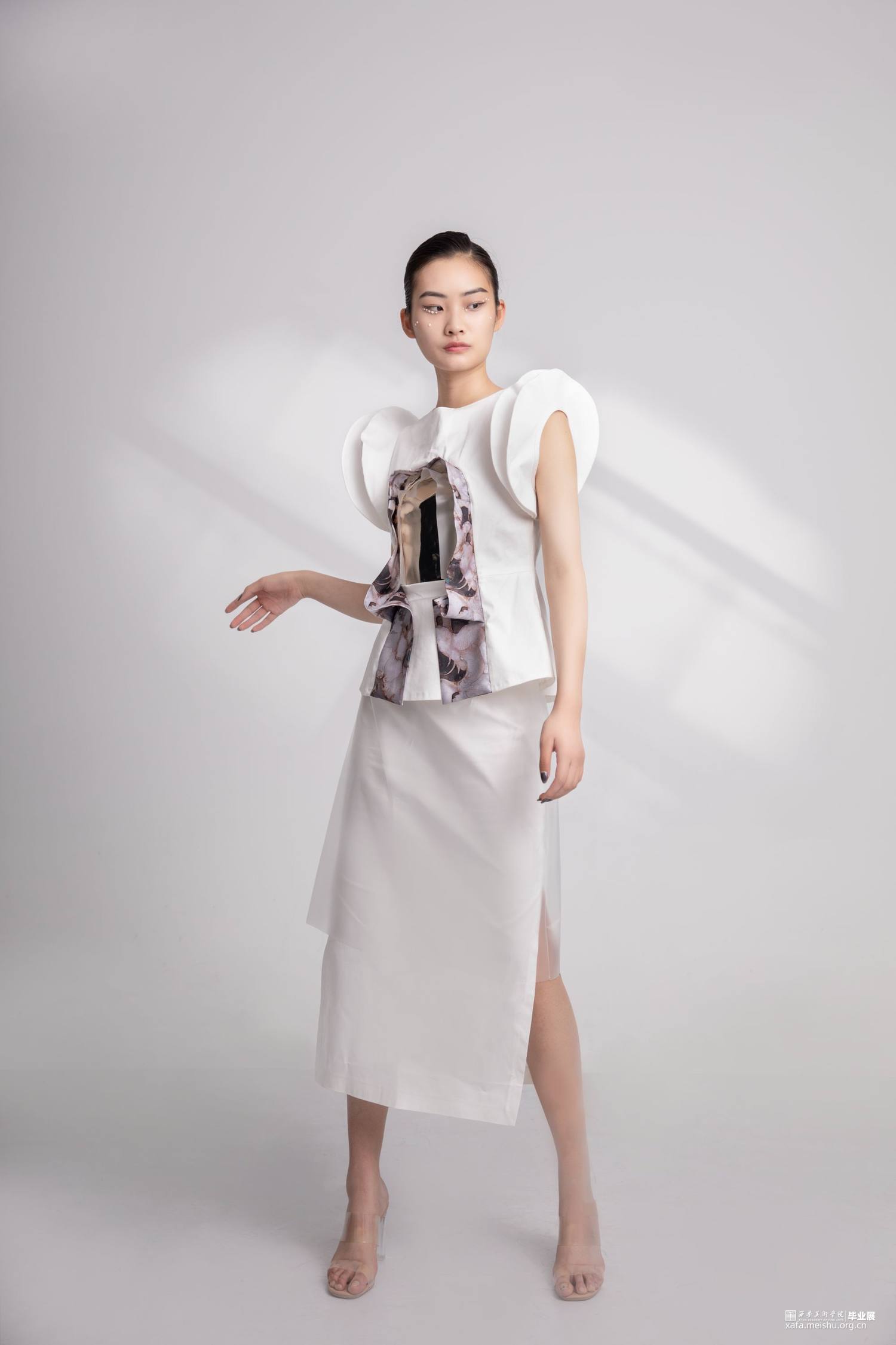 以铜为鉴,可正衣寇;以古为鉴,可知兴替;以人为鉴,可明得失。自古以来,“镜”的意象便在中国文化的长河频频出现。在中国传统本土宗教——道教中,更是被赋予了不同的意义。这系列作品通过对于唐代道教纹样铜镜的分析与研究,将了唐代道教纹样铜镜元素应用到现代创意礼服设计中,通过实践探索将铜镜纹样和廓形与礼服设计相结合,利用礼服主流时尚的造型和搭配衬托传统纹样的艺术魅力,体现传统文化之美。