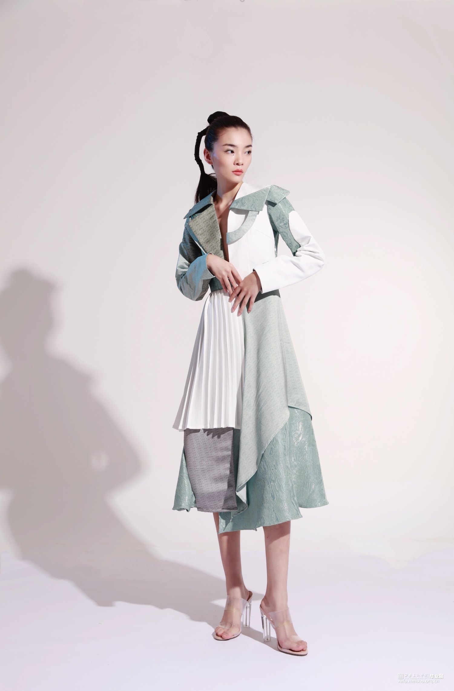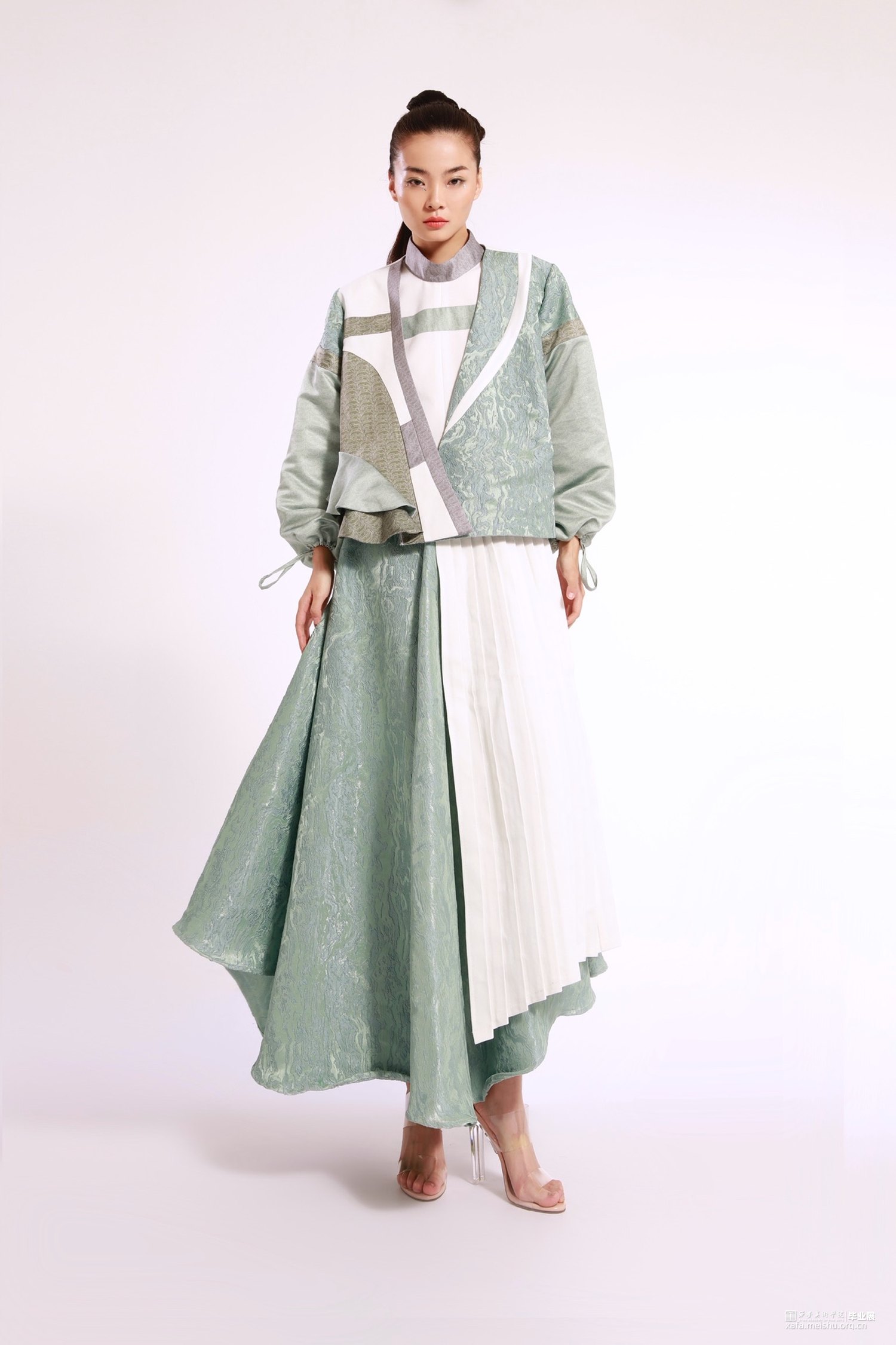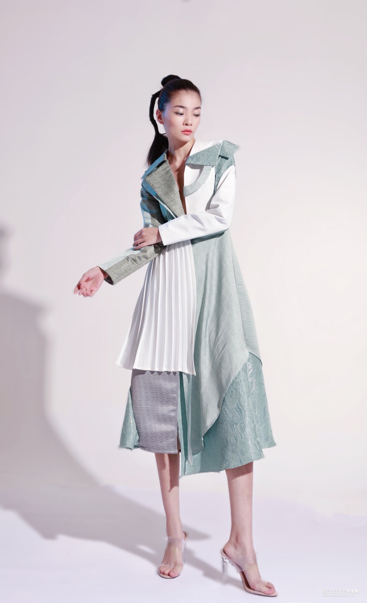 本创作以唐朝青瓷纹饰艺术为灵感来源,对青瓷纹饰的审美特征进行调研分析,提取出有特色的纹饰和色彩,通过现代的工艺手法和艺术表现,运用到时尚休闲服装当中,体现出温婉、柔和的时尚风格气质。