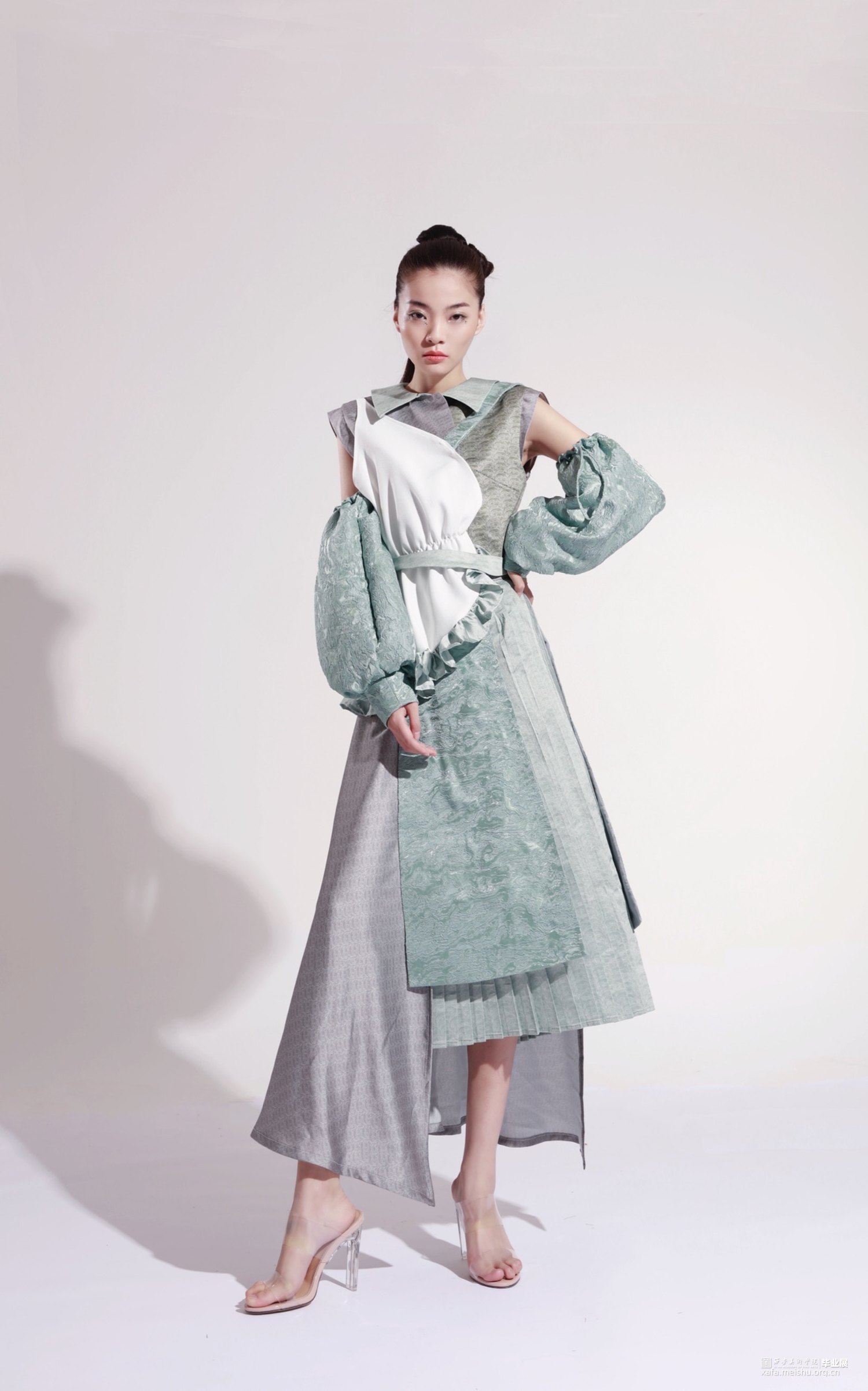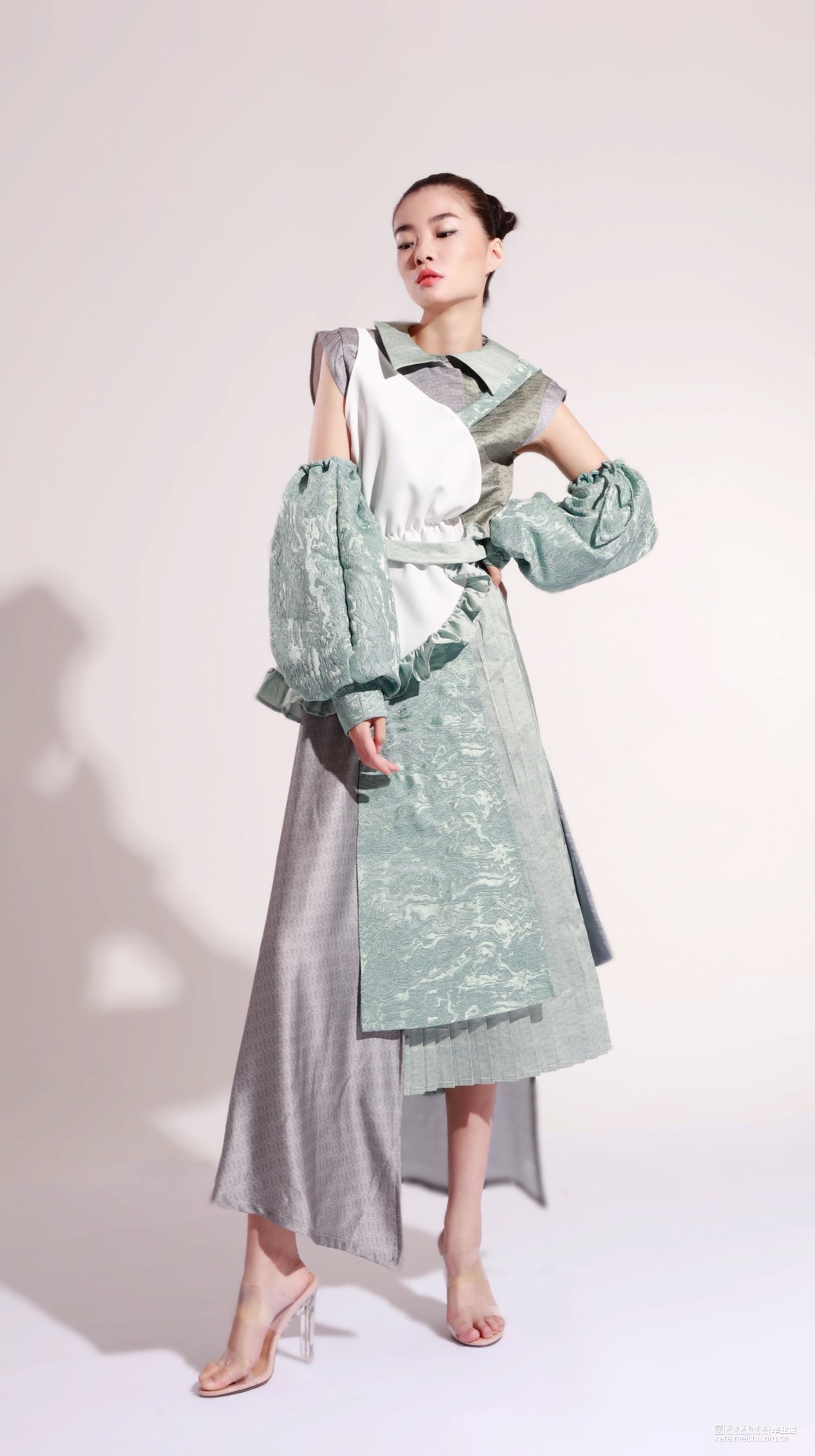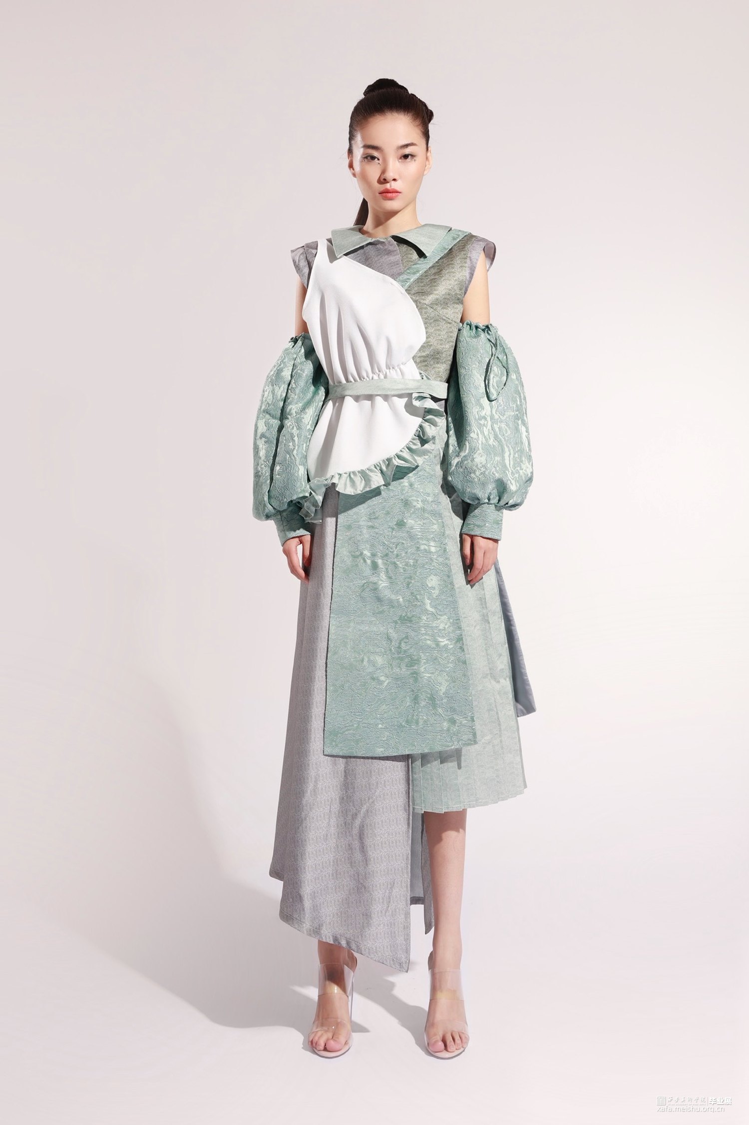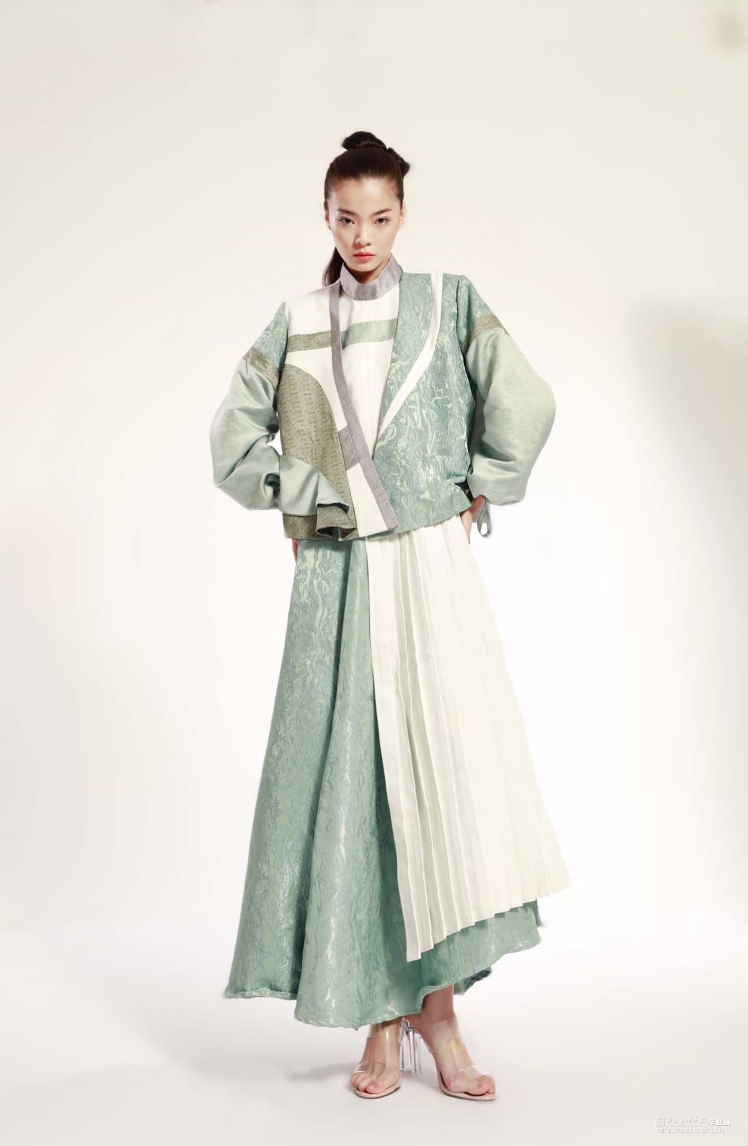 本创作以唐朝青瓷纹饰艺术为灵感来源,对青瓷纹饰的审美特征进行调研分析,提取出有特色的纹饰和色彩,通过现代的工艺手法和艺术表现,运用到时尚休闲服装当中,体现出温婉、柔和的时尚风格气质。