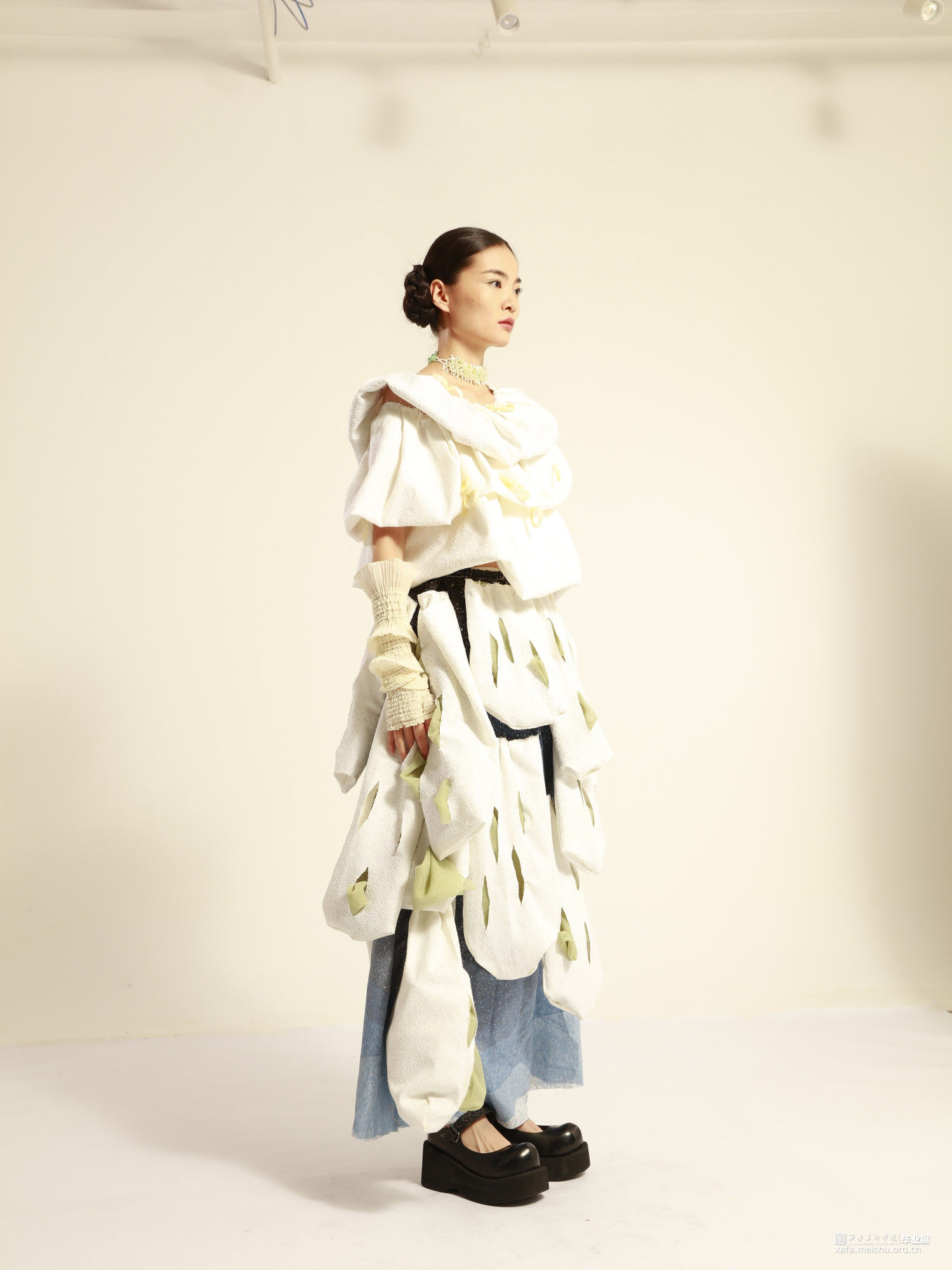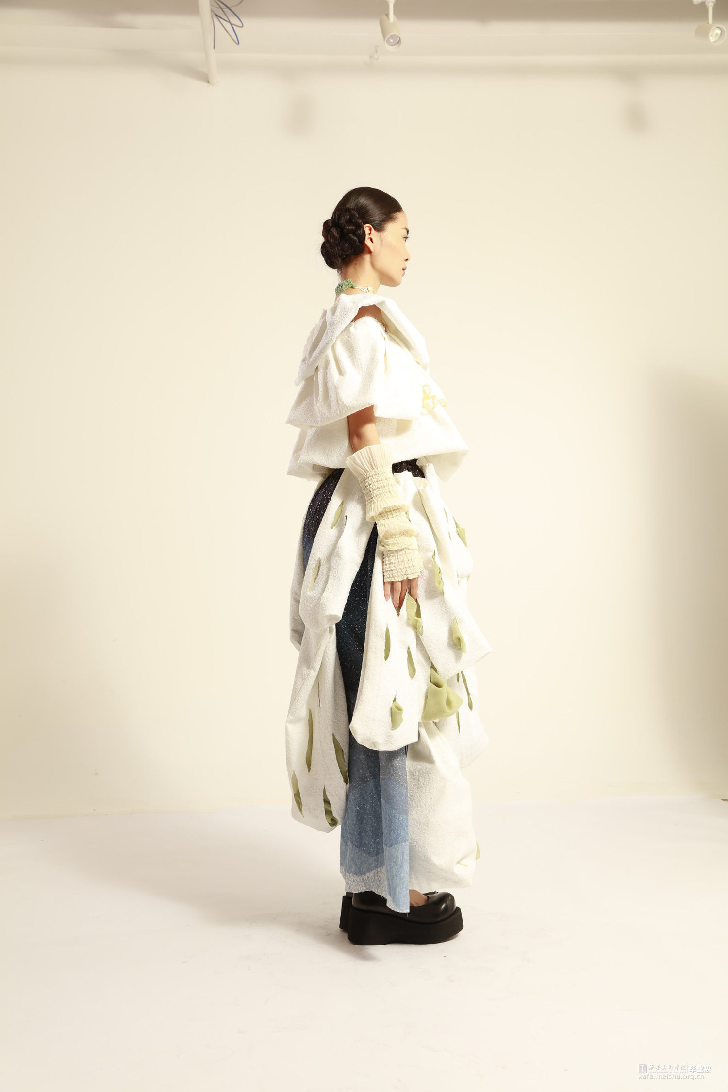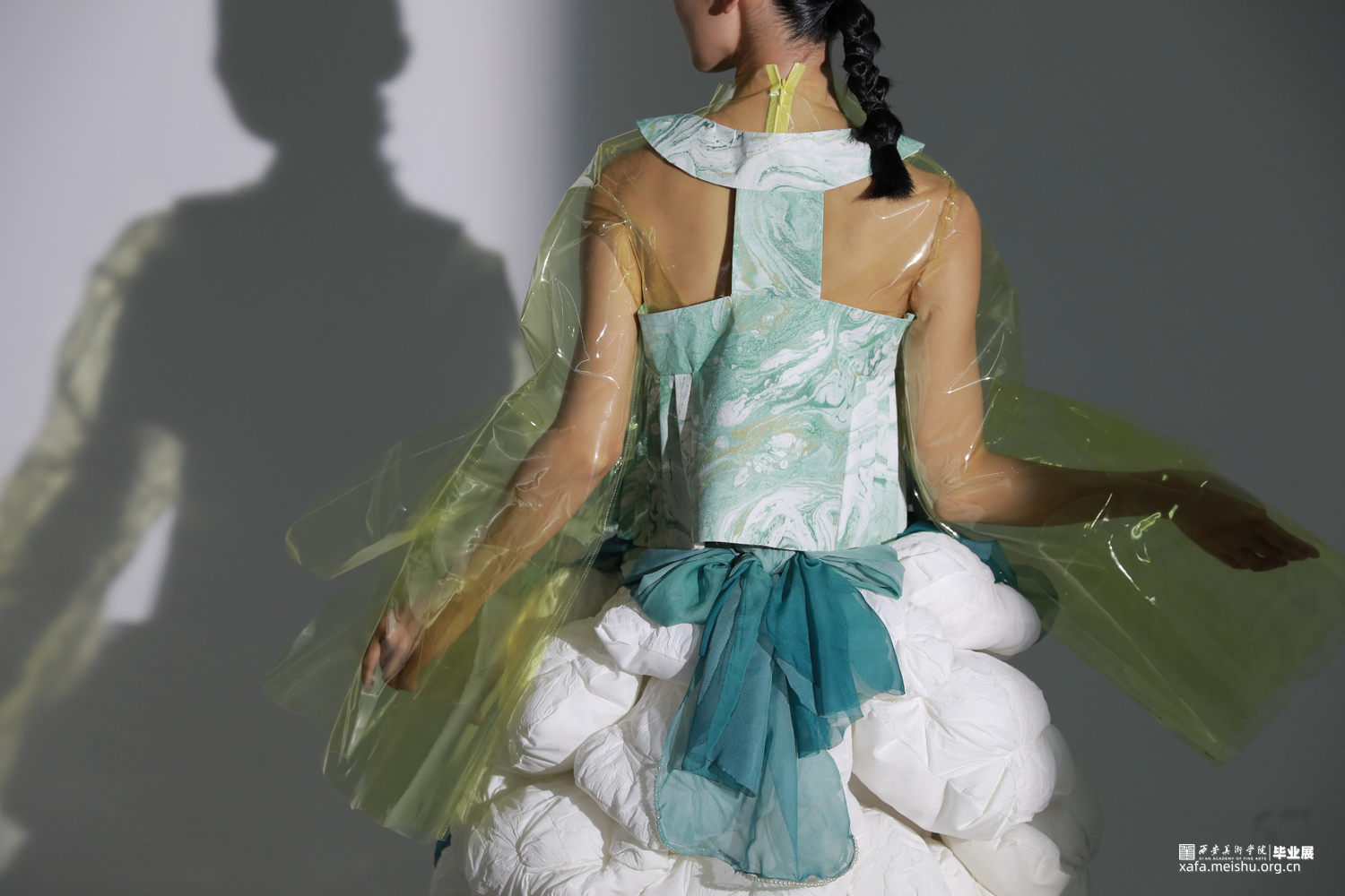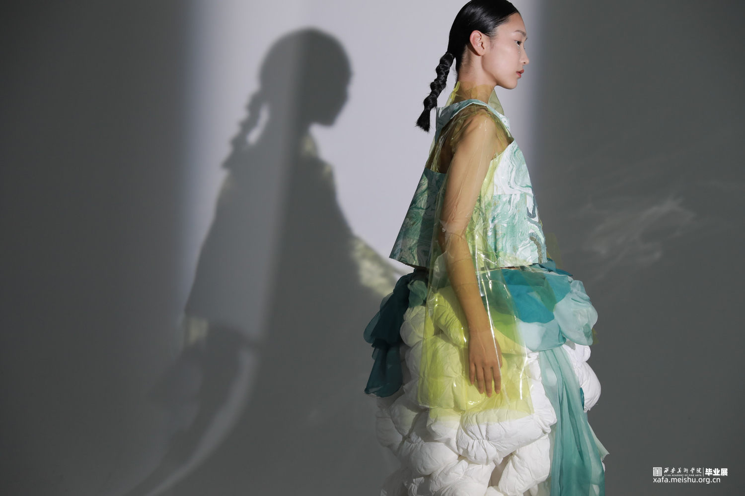 唐代青绿山水画作为山水画的一种是非常有必要研究分析的传统文化,它在古代绘画艺术上占有重要地位,本创作作品主要传达了唐代传统青绿山水画的审美意境,对提取的元素进行传承与创新,并体现与创意女装的融合和创新运用。