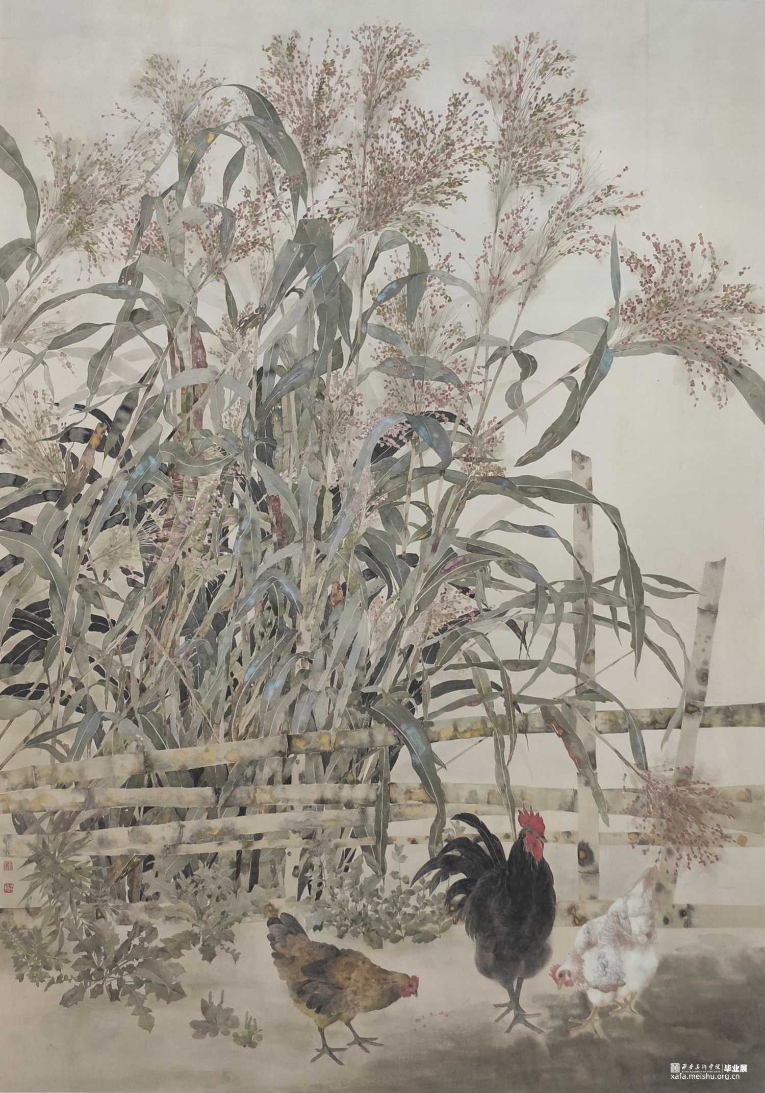 “稻菽玉米堆庭院,鸡狗欢鸣乐太平。”