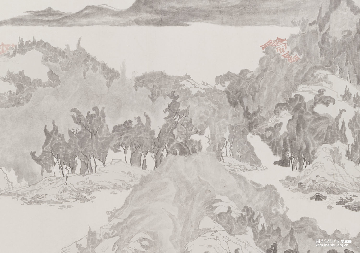 作品灵感来源于著名后印象派画家文森特·梵高,画中描绘了故乡南方沿海风景,山中植被包裹着岩石,形成自由且浪漫的形状,海岸边最底下经历过无数日月氧化的黑礁石与那些海水冲刷不到的高亮礁石造成强烈碰撞。再见即是对大学本科四年的告别,也是对文森特的告别,希望下次再见。