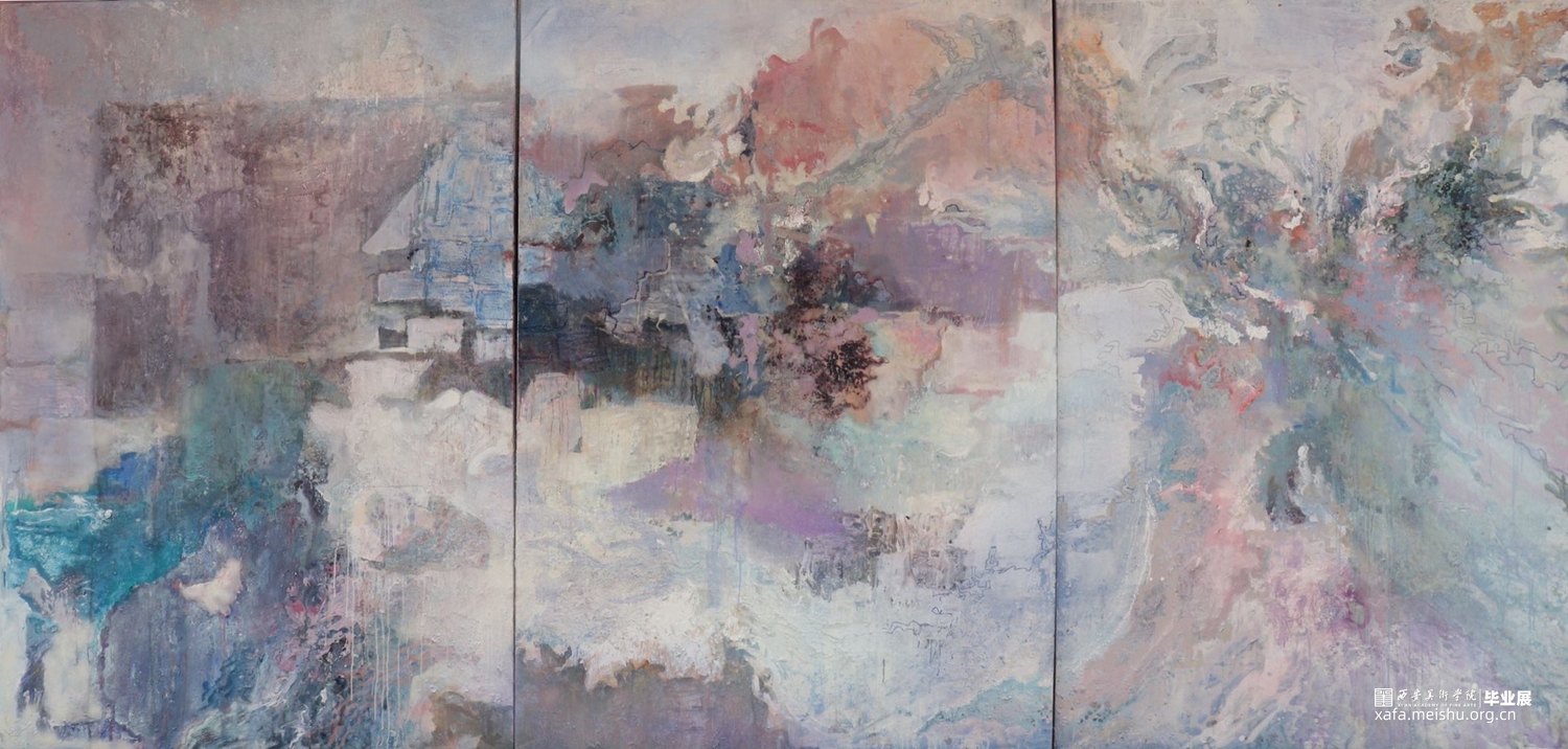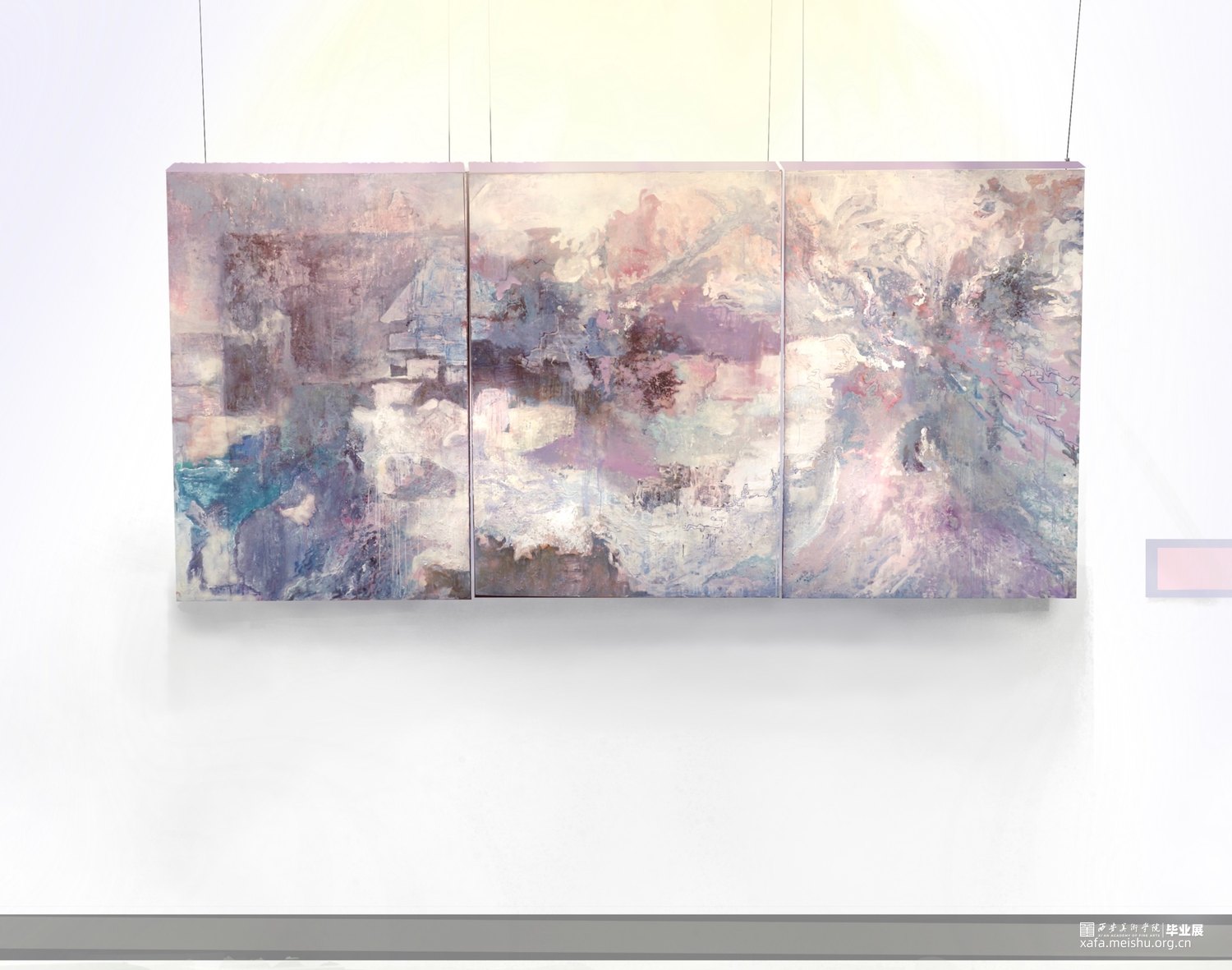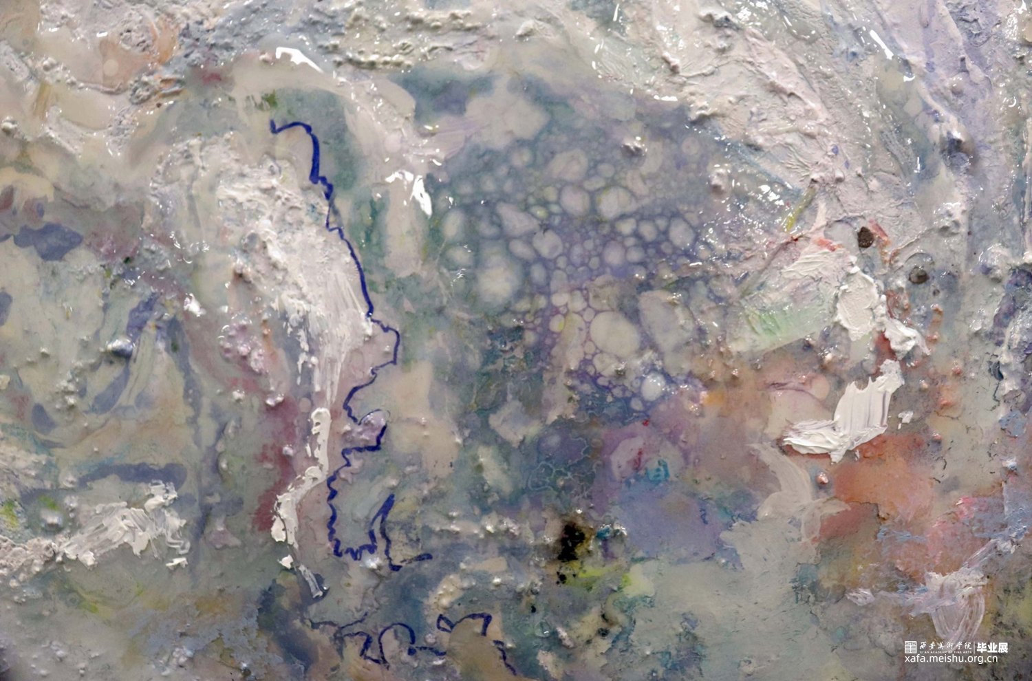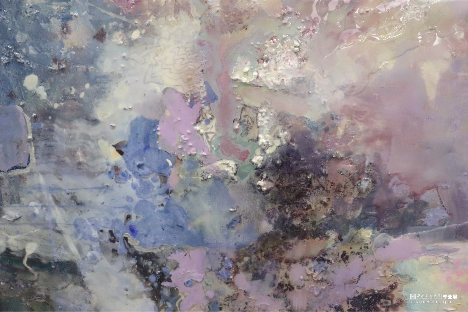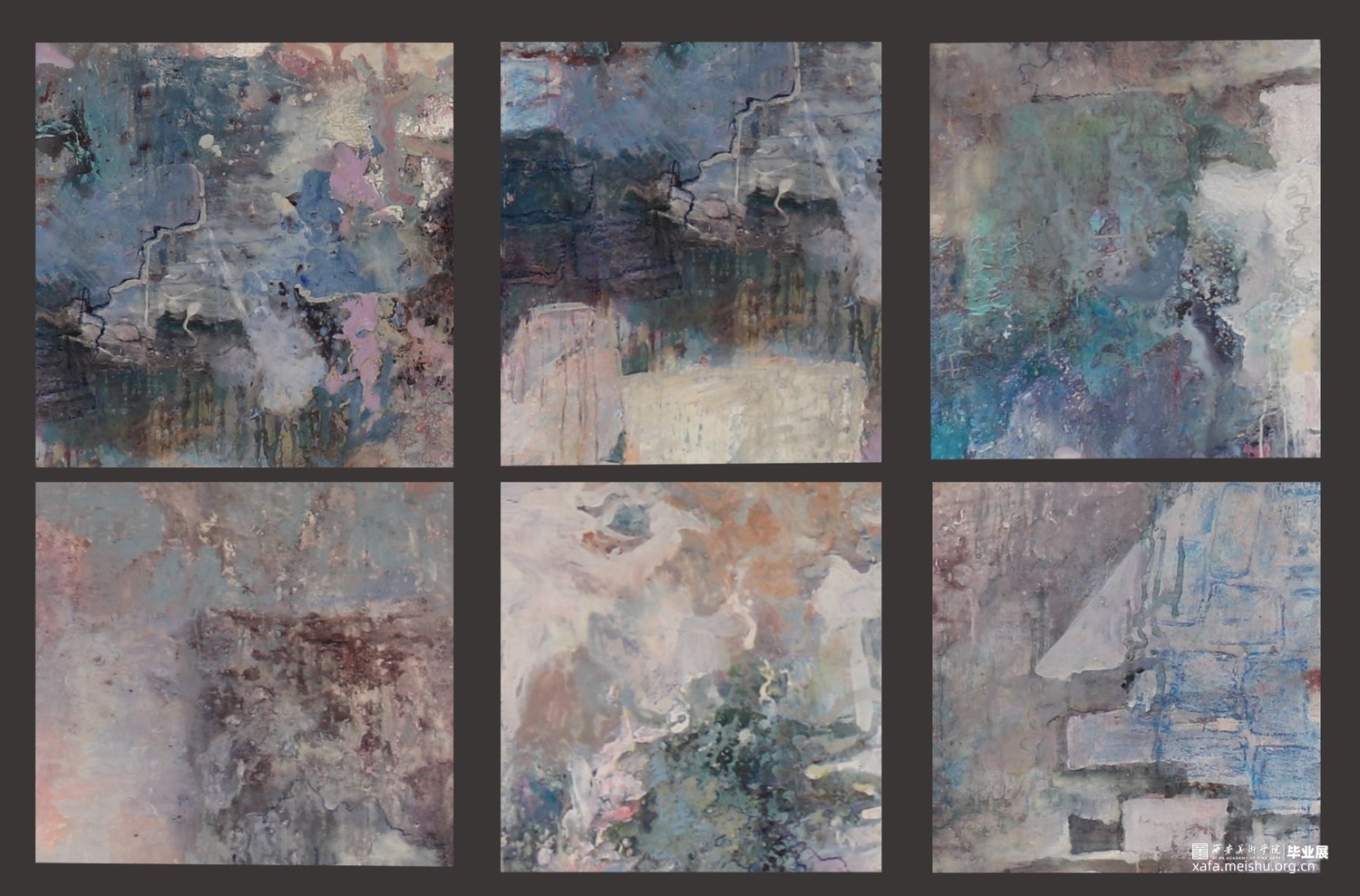 油性的、水性的材料,以自然运动的形态,不刻意人为的控制它们,无意识重复的方式,让这些工业材料自行记录下它们运动的痕迹。哲学概念中,物质的存在是独立的,在意识之外的。物质运动创造一切现象,过去、现在和未来。材料与我都为这世间的物质,以这样无意识抽象的方式来试图让什么是物质的本源这一诘问成为可视。