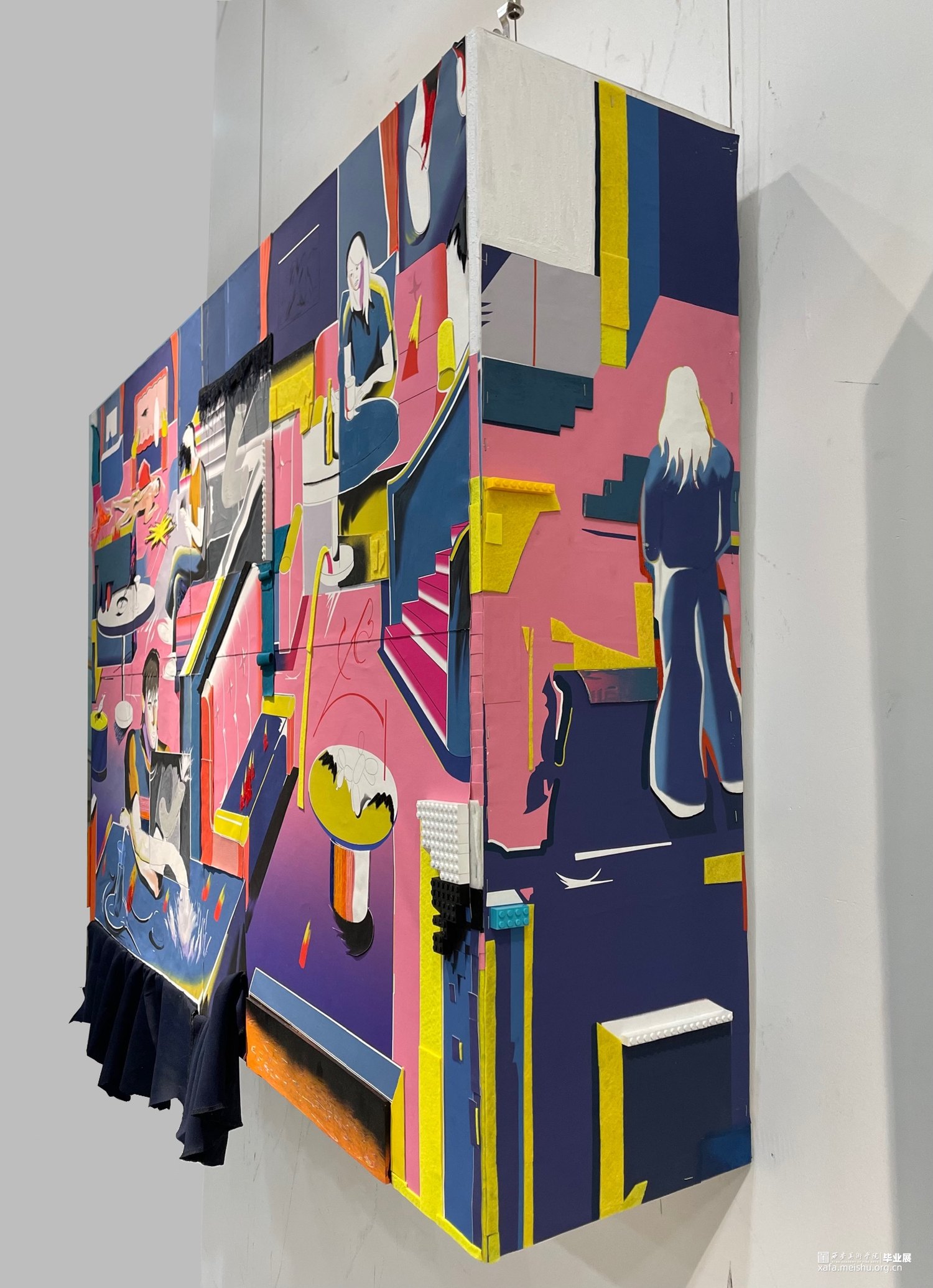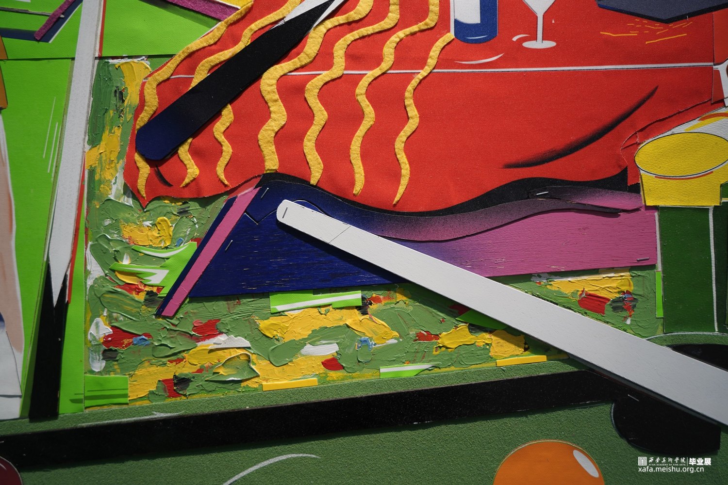 作品技法: 丙烯,喷漆,刺绣,丝网版,ABS积木,木板,pvc ,无纺布,皮革,石英砂,uv印刷