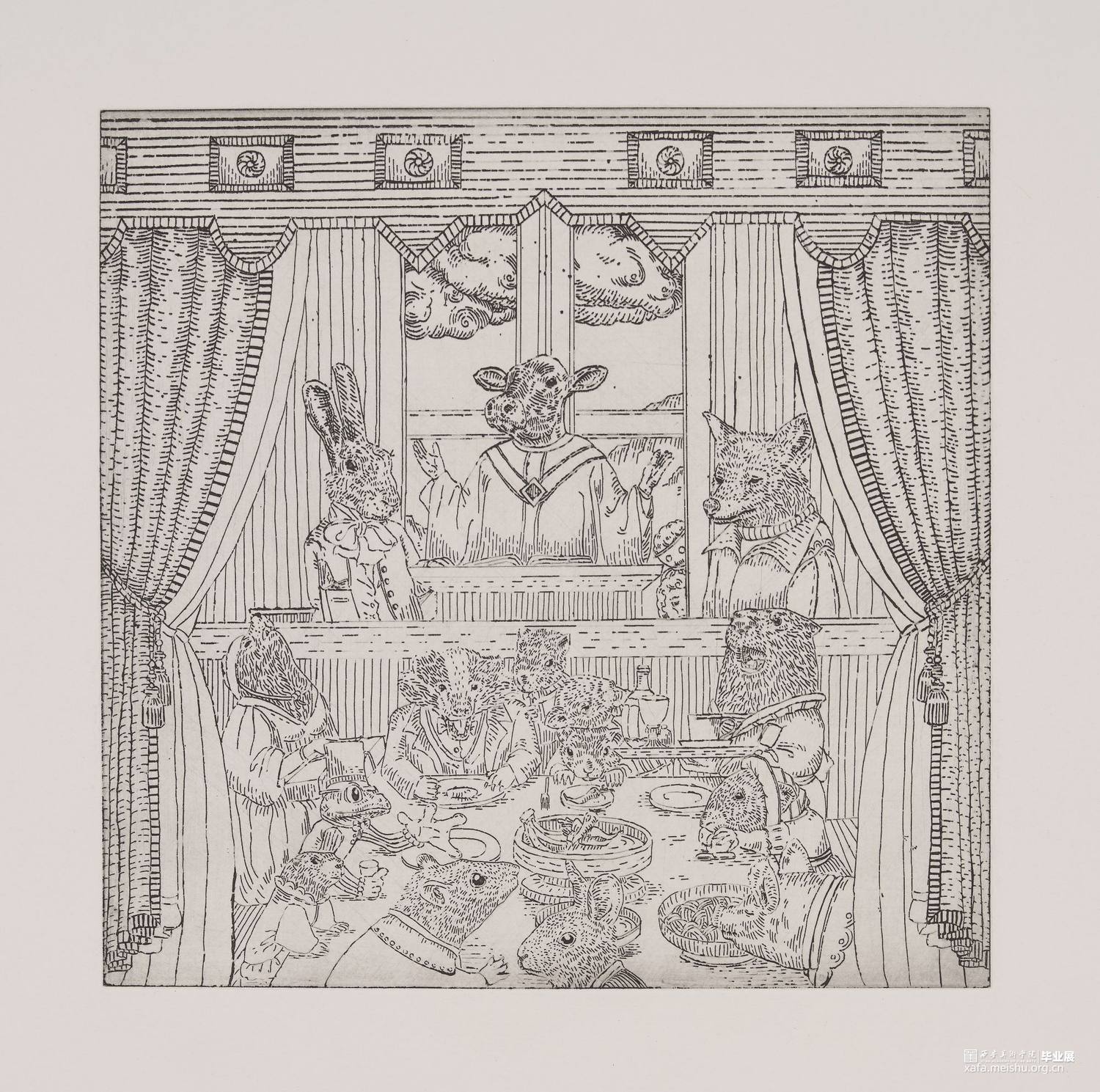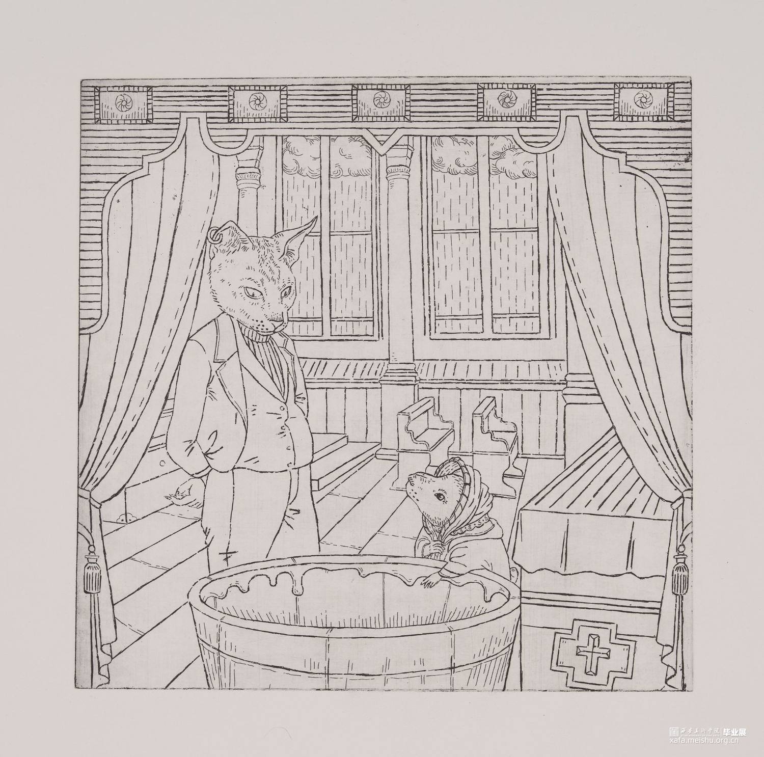 这一系列作品是以童话故事为基础创作。我将原本童话故事的人物和动物进行糅合,将动物赋予人的动作及服饰,并以舞台剧方式展现。其中动物与动物之间的互动,将故事带有诙谐幽默的感觉。掺杂着童话故事解读,使之趣味性十足。