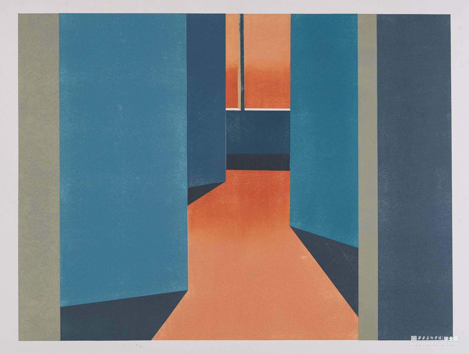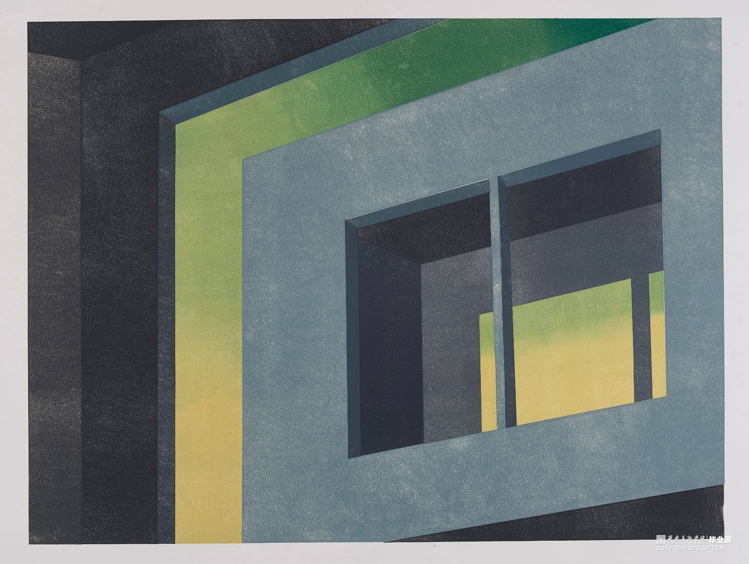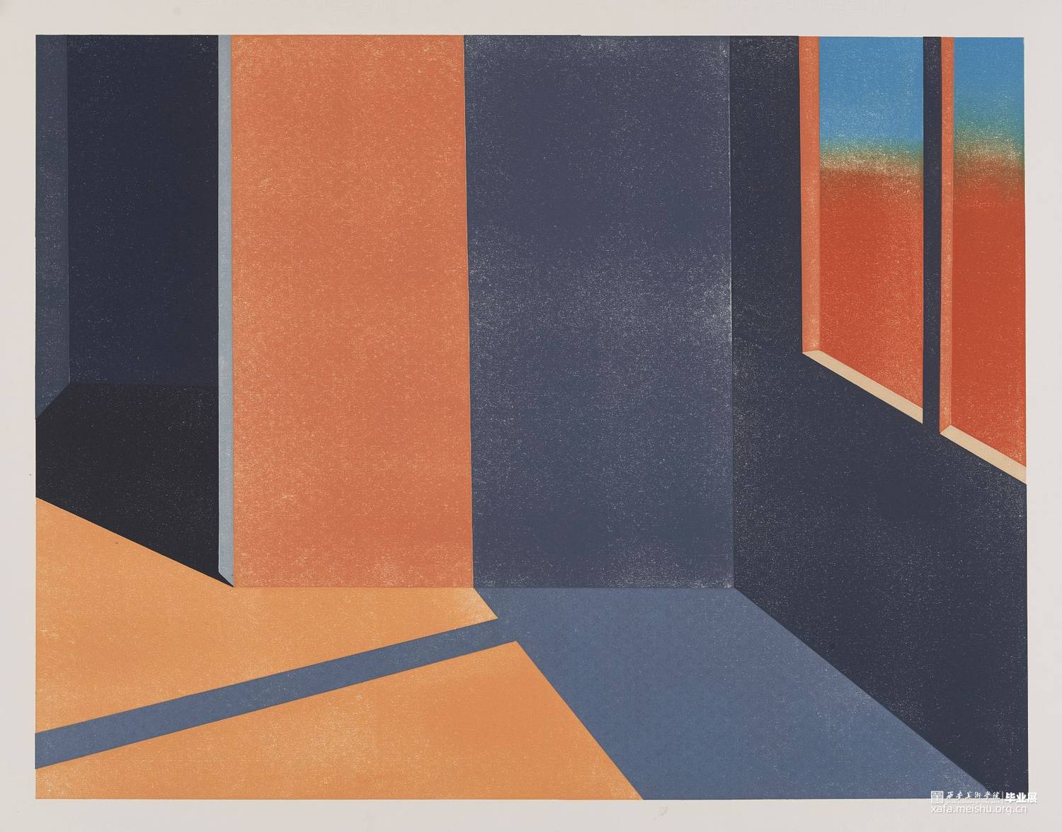 作品内容主要为窗口,光影,空间,试图用一个平静的场景渲染出焦虑不安的氛围,场景中唯一的出口投射出的光,给这种“不安”提供了解决方案。