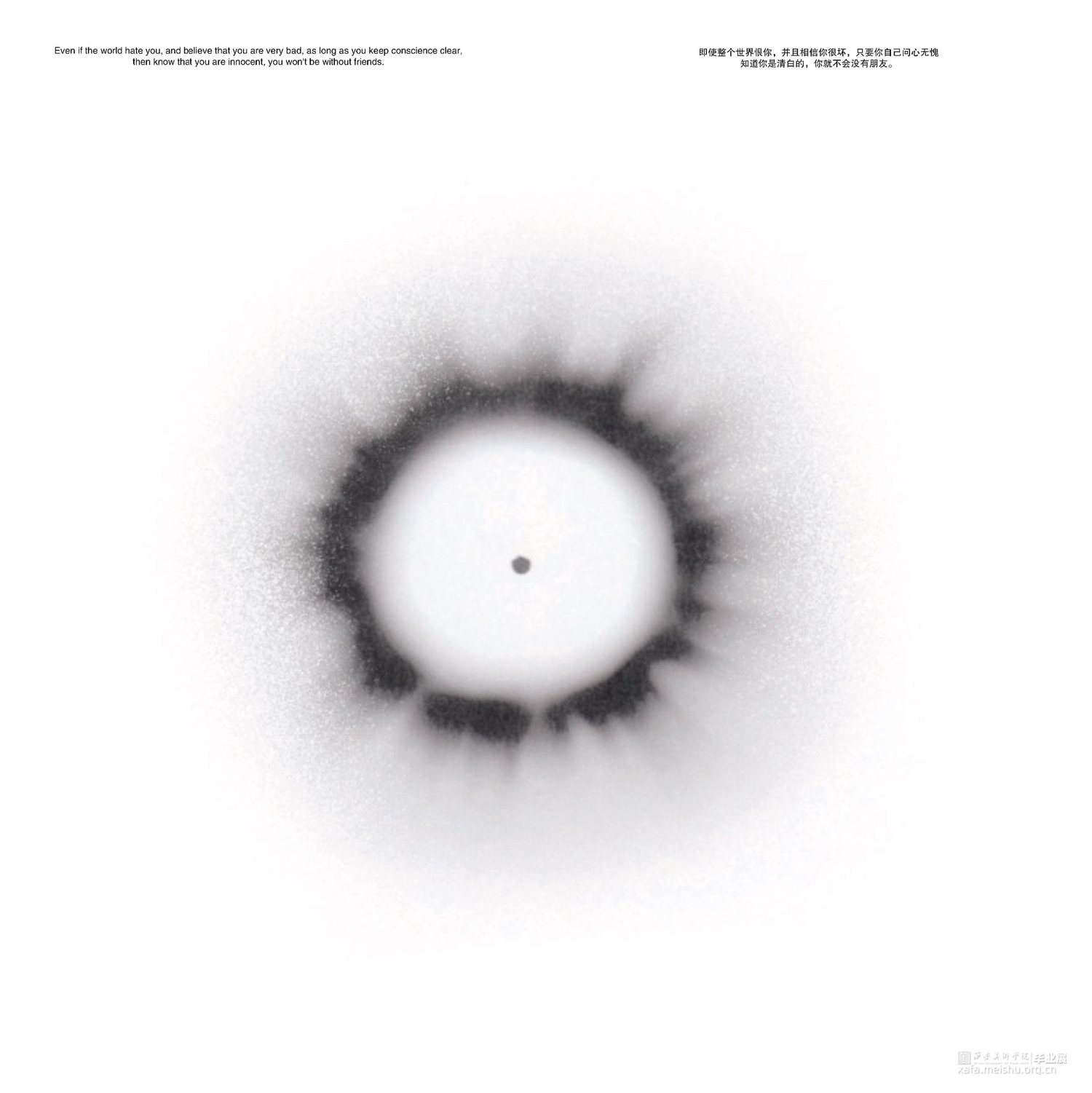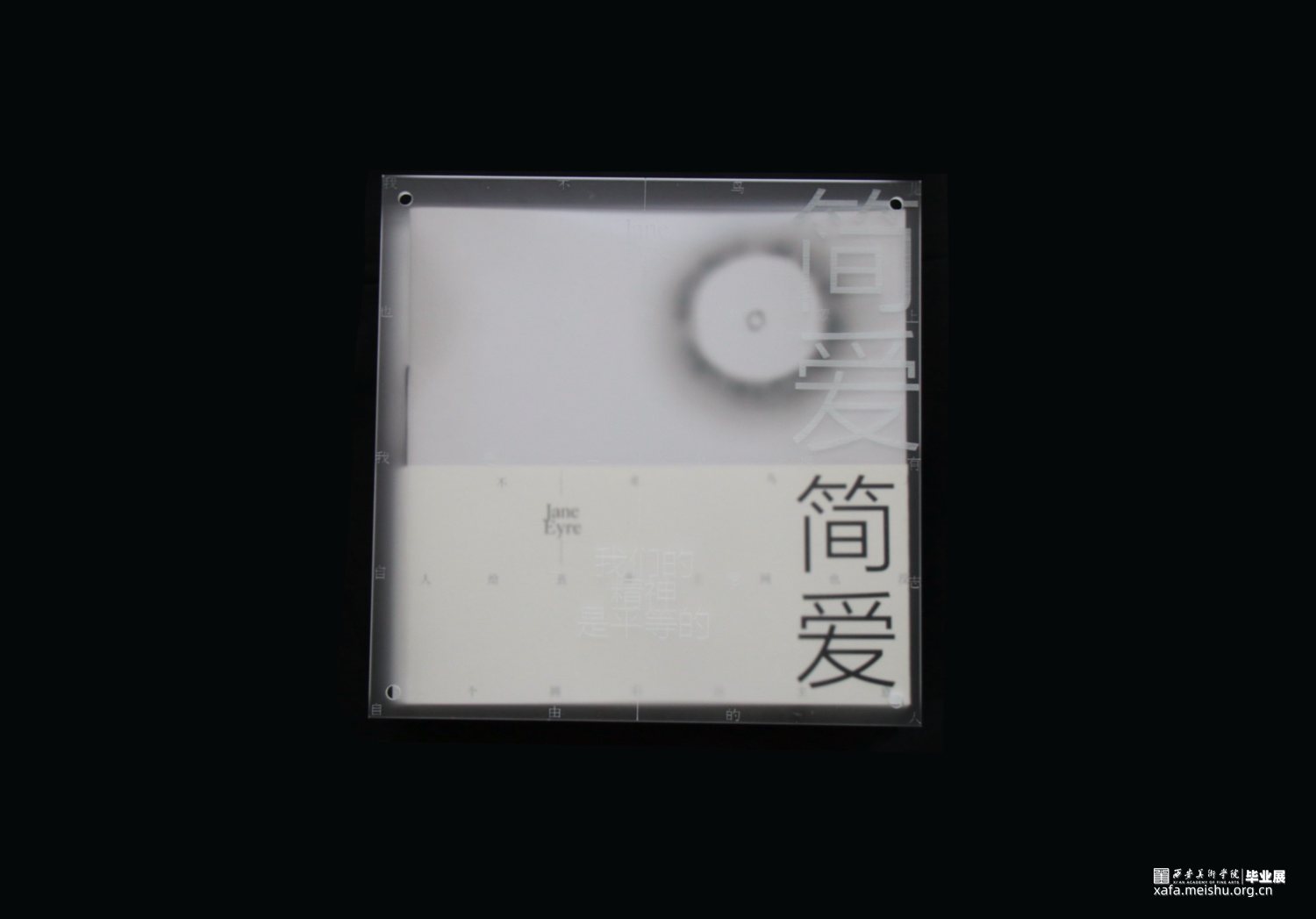 中心到边缘图形化的处理,主角简的个人成长和性感演变,从一个困扰中的孤儿成长为一个自信独立的女性,圆形的重复性暗示简生活中的循环模式以及爱、失落和救赎的反复。她的生活充满了离别与回归、失去与获得的循环,正如这些圆形的循环模式。圆形图案的不同强度反映小说中的情感高潮和低谷。强烈、较暗的圆形可以反映动荡和冲突的时刻,而较轻、较平静的圆形可以代表和平与解决的时刻,简最终与罗切斯特的重逢。每个圆形的中心点象征着个体的存在。简在寻找自我身份和意义的过程中,体现了存在主义思想。她通过不断自我反思和与他人的互动,逐步确立了自己的存在意义。
