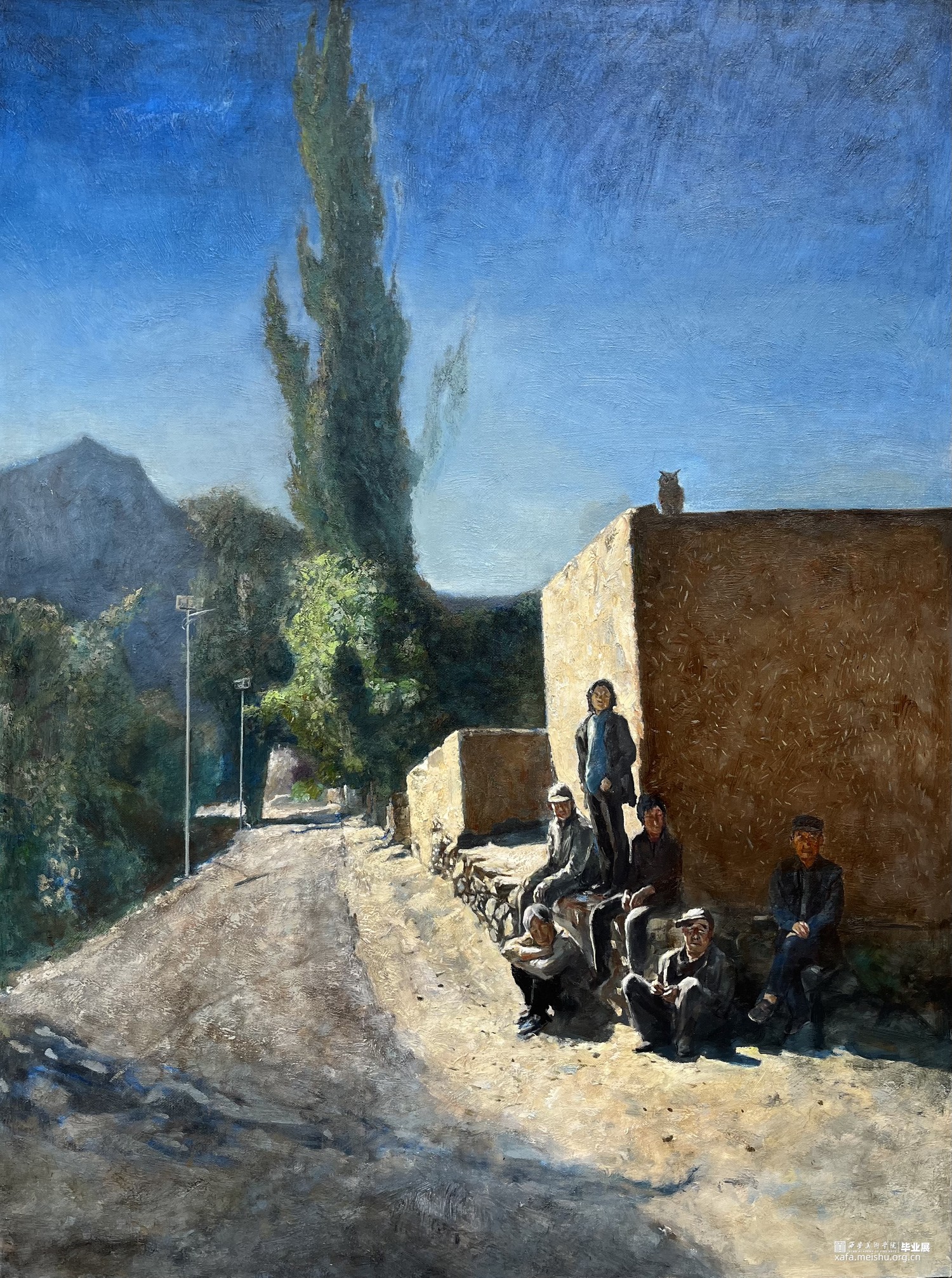 《国道-2024》是我于宁夏采风时所拍摄的情景,画面打动我的地方是我看到了西北原始粗犷的自然风貌以及褴褛衣衫却朴实的农民,他们依偎在墙的庇荫,或是躲避炎热的太阳,我选择与人民站在了一起,我们之间有着相同和不同的联系,前方的路是唯一通往村落的路,也是经济意义发展的路,更是黄河流淌不断延续的路。