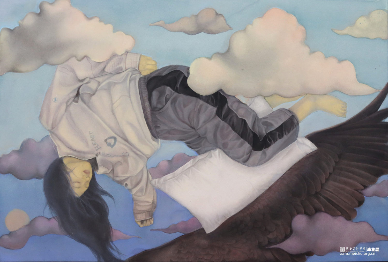 我的作品《倒序》是根据思维乱序创作的,当一切为倒序,真实与梦境相互穿梭碰撞,究竟什么是想象什么是真实,如果现实中的一切都不复存在,梦境与想象才是客观存在,那么我所存在的意义又是什么呢,在浩瀚宇宙中,我如蜉蝣般漂浮于天地。