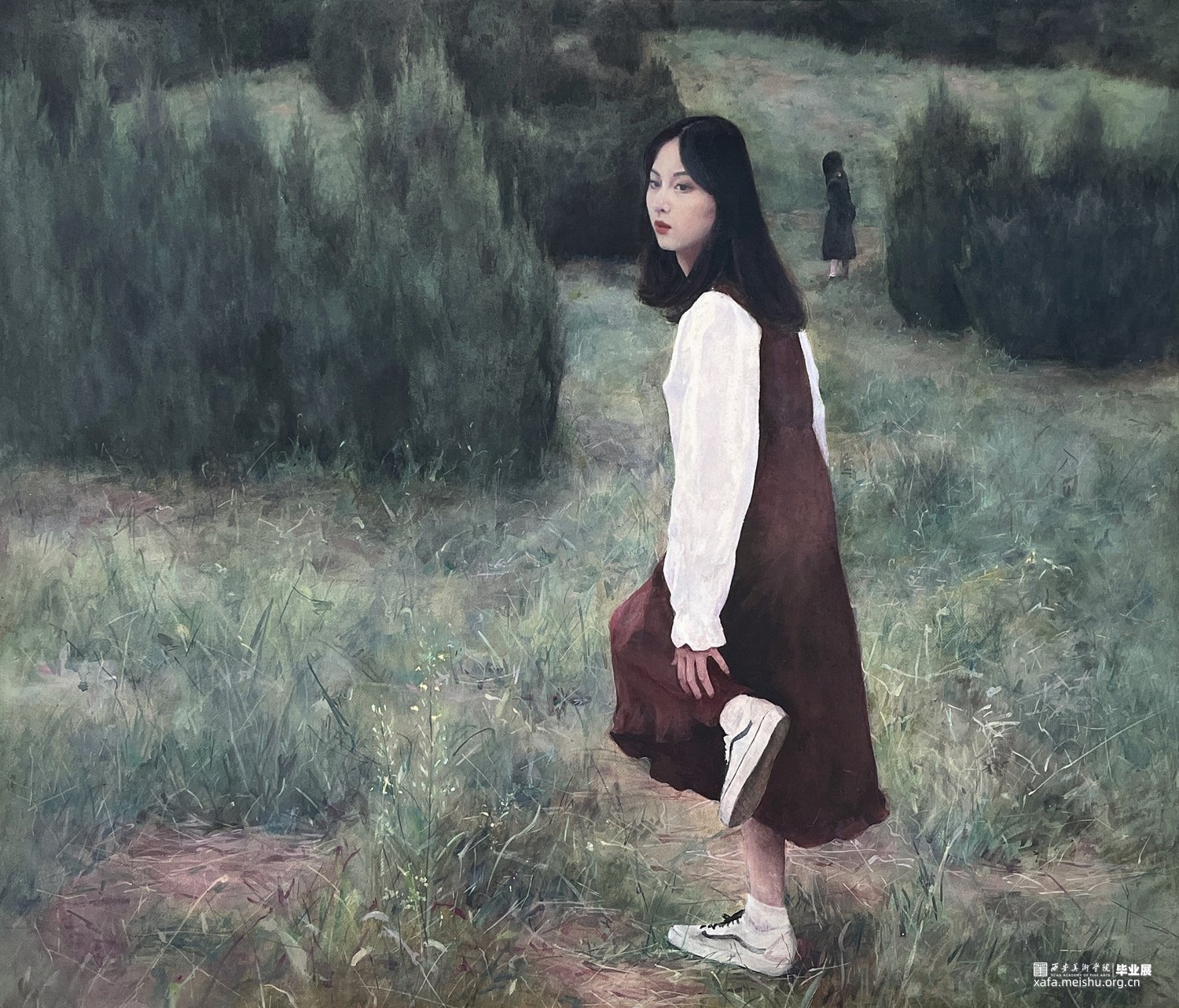 我的创作是以我的室友为题材。在画面中用人物放松的表情动作来表现出轻盈的感觉,用不那么亮眼甚至有些褪色的色彩来体现过去。在这大学四年的生活中,回溯往事,总能想起和朋友们一起出去游玩拍照的轻盈日子,特别是在这四年的尾声,那些时光显得格外珍贵。虽然我的作品只是四年其中的一天,但我的回忆不只是这一天。我能想到进入校园前通过新生群加到室友们后聊天框腼腆的问候;想到报道那天和室友见到第一面互相的印象;想到之后那些相处时的或快乐或摩擦的日子……这是我和室友们的青春,是我们一起走过的轻盈的日子。