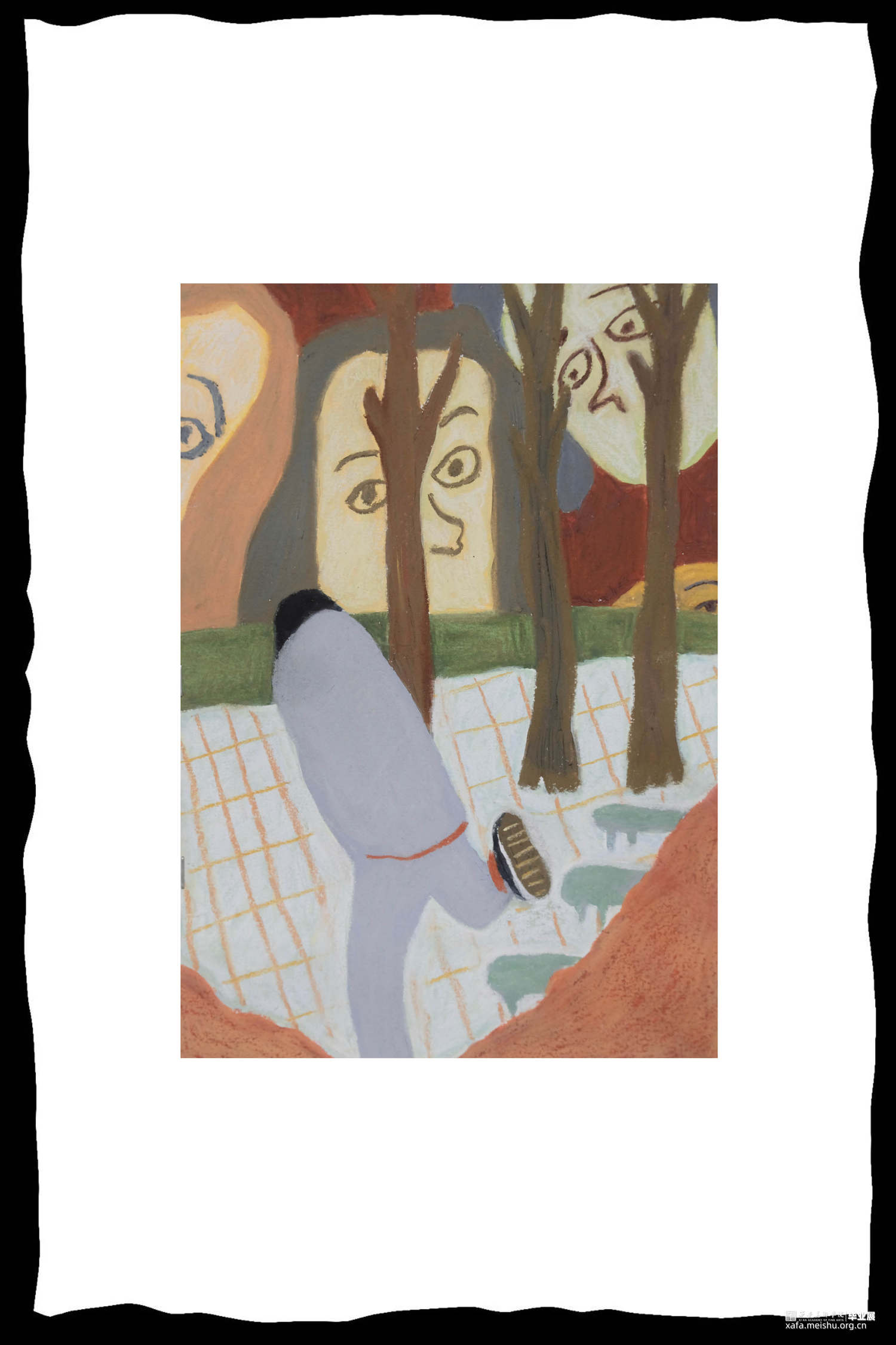 我的作品记录的是一些生活中的印象。由于记忆总是主观的,我没有选择写实的手法,而是借鉴了表现主义的绘画样式。我认为这样可以更加真实地描绘我的记忆。在这一点上,绘画是直接且准确的。记忆难以被分享,人与人之间在这样的客体上也不可能达成完全的共情。但由于绘画与我的生活体验在性质上有重要的共通之处,即二者的存在都以去逻辑化的方式为主,所以我认为绘画是最理想的载体。
