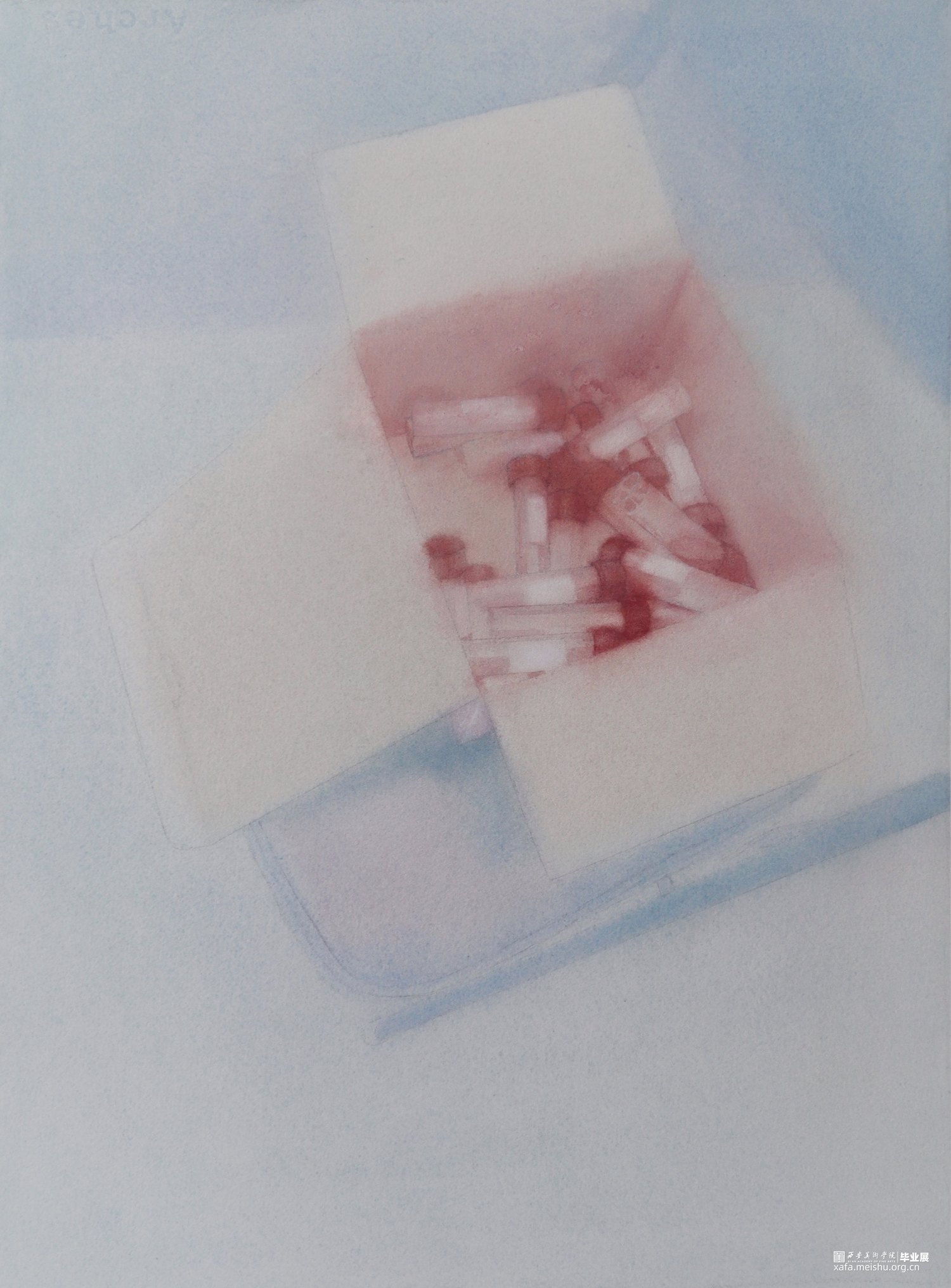 《心绪》系列取材于我所经历的隔离生活,这既是日常也是非日常。隔离的日子好像很慢又好像很快,回过神来已经过了好久好久,好像我的记忆也变得模糊了。在这样的日子里,我更体会到了“活在当下”的可贵之处,所以我希望通过对身边的静物的描绘,能够体现出当下的情绪,在不同的地点,不同的时间,我经历着同一件事,却有着不同的情绪。在画面的处理上也是通过水彩呈现出一种模糊朦胧的质感,给人以无限的想象空间。