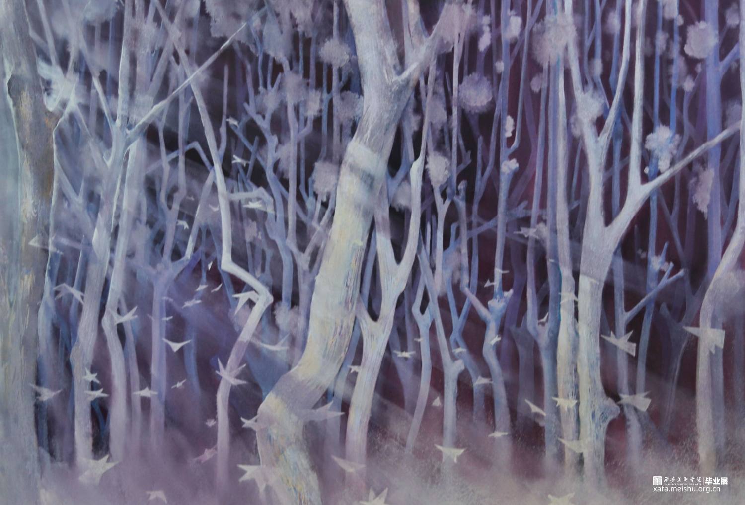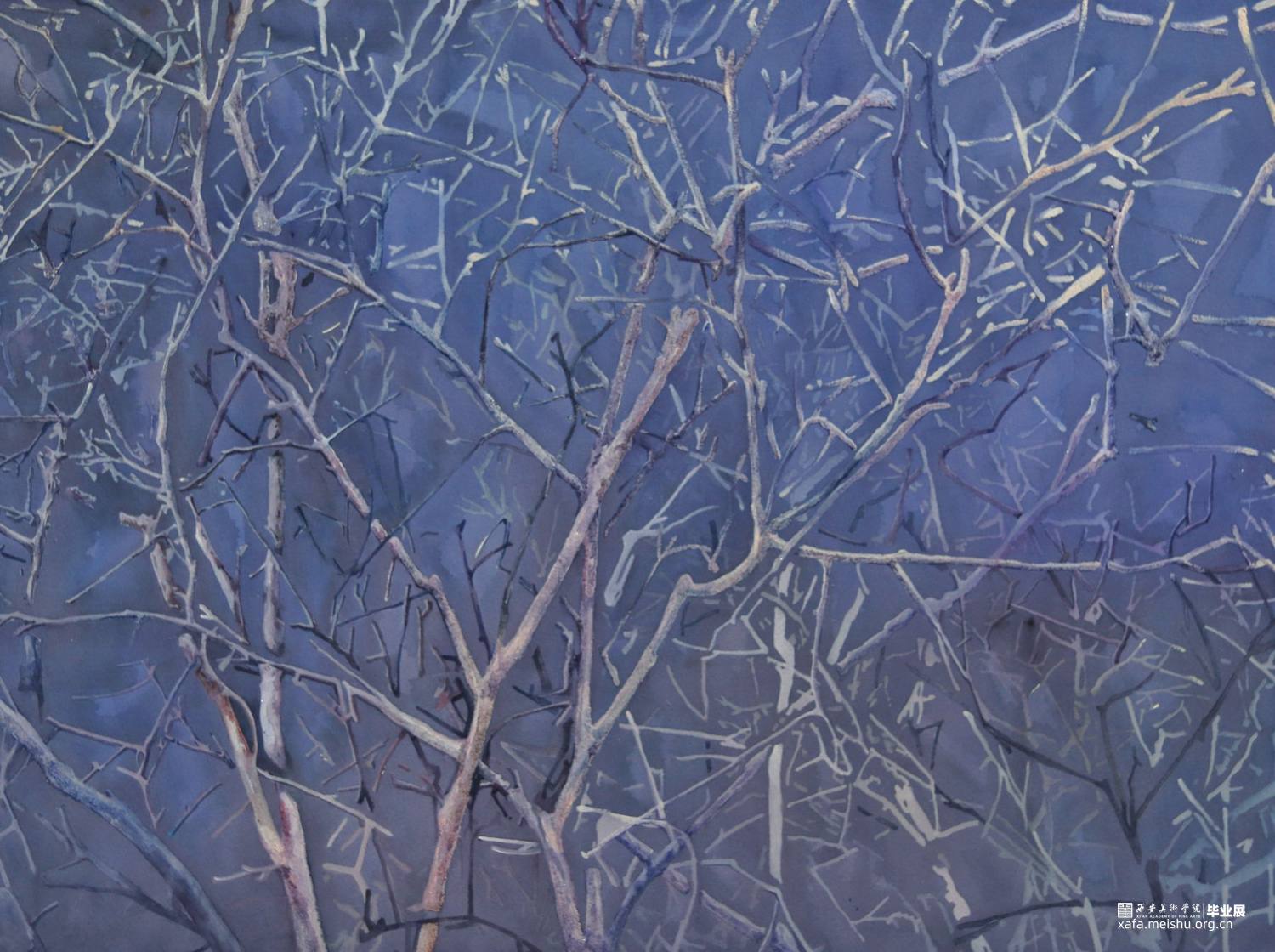 在老家院子里,感觉这颗柿树的枝条有的像血管有生命在流动,有的又像一张大网网住了抬头看天的我。当我在炎热的画室静下心勾勒线条的时候,抚平了我浮躁的内心,也是很有意思的。林深人不知,明月来相照。在即将毕业的我脑海里,光鸟似幽林里的一片希望,让我略感舒适。