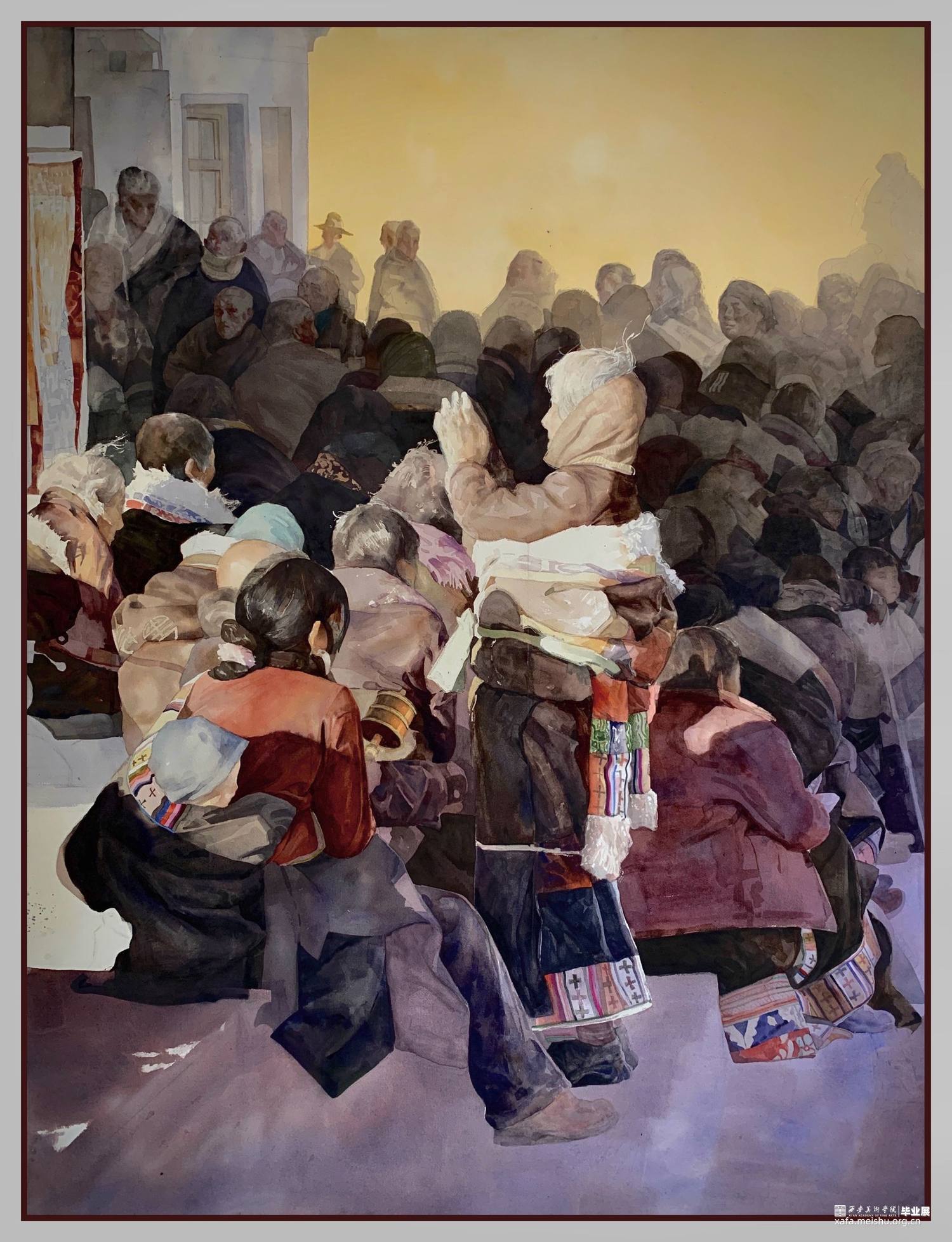创作素材来源于一次甘肃艺术考察之旅。途经甘南拉不楞寺,清晨一缕暖阳撒在大地上,一位藏族老阿妈面向太阳,虔诚地拜向阳光。时间仿佛凝固在了此刻,庄严圣洁。此情此景深深触动我心,愿用掌中笔绘出心之所想。正如歌曲之中所唱:“五十六族兄弟姐妹是一家”各个民族团结友爱,互相尊重。能把这么美丽祥和的场景作为我的本科毕业作品绘制出来,分享给大家,也正是我最大的荣幸。