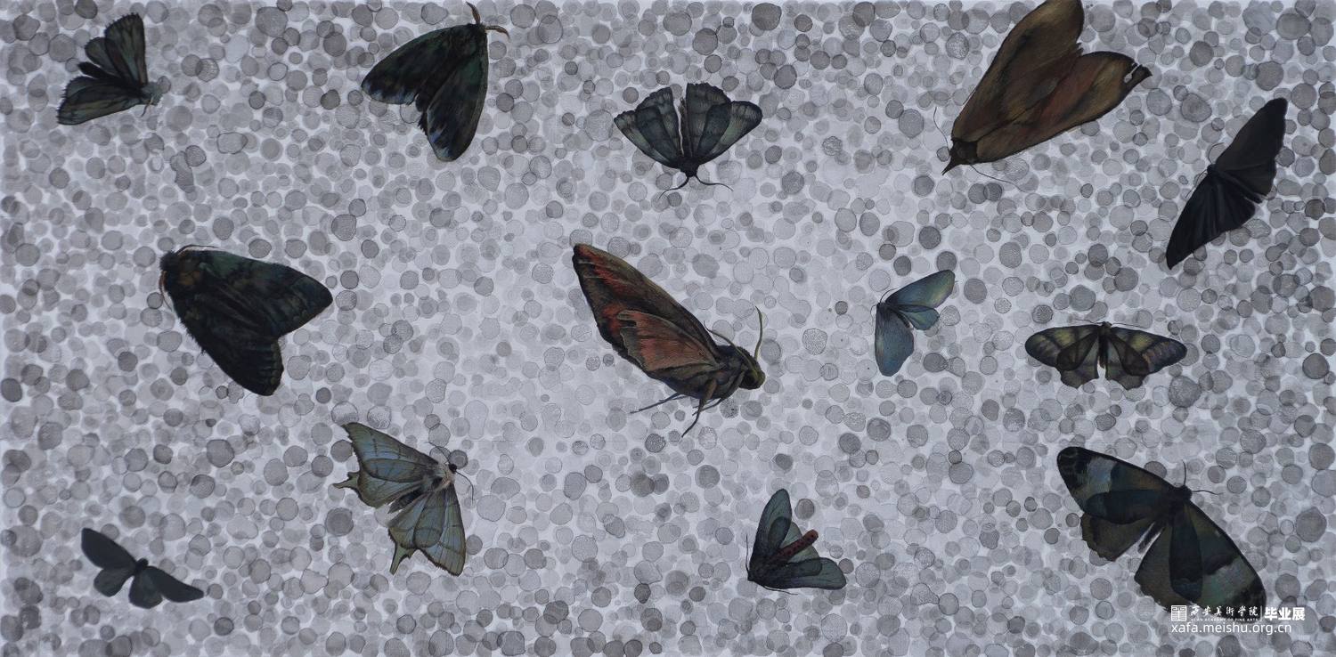 《悬悬》的概念就是情绪的缩影,我作为一个情感木讷的人,对自己的对内探索很难进行——就像内心想要抒发,可情绪却像小蛾子能看见光可是找不到出口一样,不过即便如此我也对光明充满希冀。悬悬而望,形容一心一意地期待、盼望;而悬悬一词也形容忐忑的惦念,惴惴不安。这幅作品寄托着我的内心,还有很长的路要走,我期待着看不清的未来。
