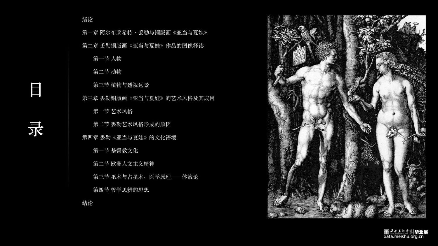 本文从丢勒的原作铜版画《亚当与夏娃》着手,对画面里存在的图像元素浅析,之后深入到作者是如何选用这些元素并且为何选择这些元素为创作对象的原因进行解剖。以图像元素的视角去深掘作者进行创作时,已经形成的属于丢勒自身的理论体系、知识框架以及所处的社会背景。