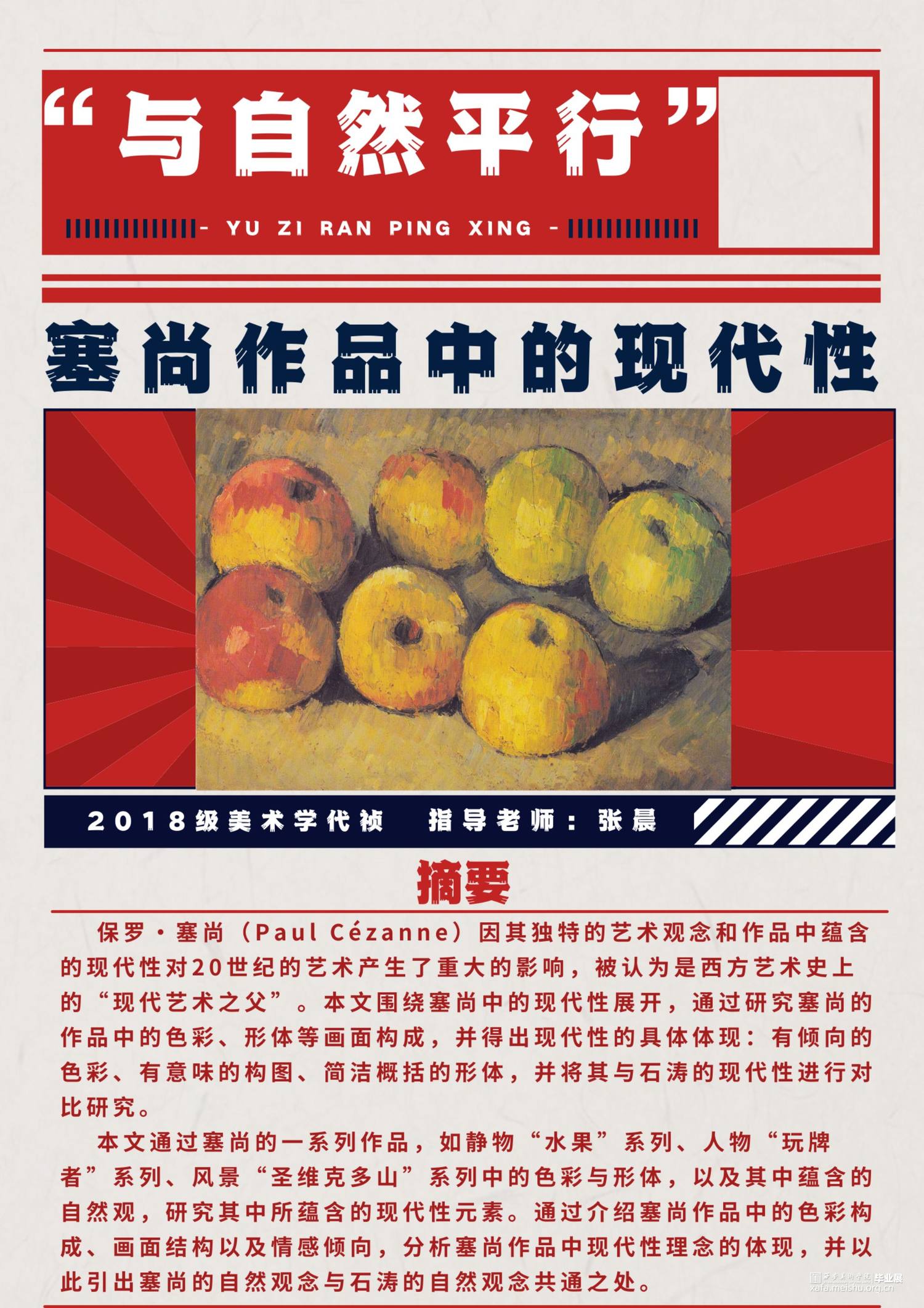 塞尚被誉为西方艺术史上的“现代艺术之父”,他独特的艺术思想和创新精神促进了20世纪现代艺术的发展和变革。与自然平行,即尊重自然,以自然中存在的风景为基础,但并不完全的照搬自然,将自己的情感倾注在色彩之上,与形体之间。因此,研究塞尚的作品中的色彩、形体等画面构成以及绘画理论有助于探索现代艺术的发展倾向。认真研究塞尚的作品及其所蕴含的现代性,对于在未来的艺术实践中寻找现象背后的艺术精神具有十分重要的理论基础和现实意义。