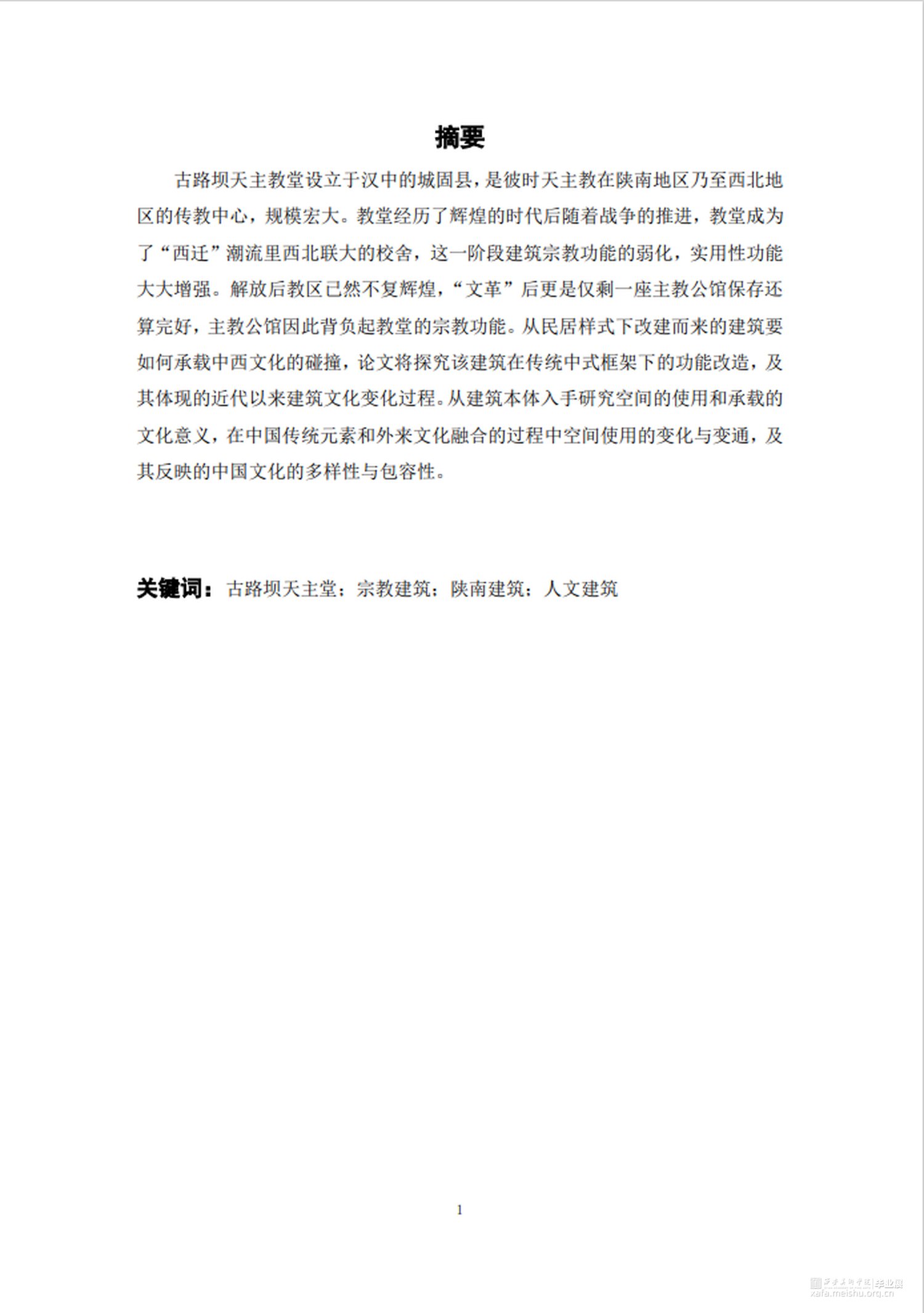 古路坝天主教堂设立于汉中的城固县,是彼时天主教在陕南地区乃至西北地区的传教中心,规模宏大。教堂经历了辉煌的时代后随着战争的推进,教堂成为了“西迁”潮流里西北联大的校舍,这一阶段建筑宗教功能的弱化,实用性功能大大增强。解放后教区已然不复辉煌,“文革”后更是仅剩一座主教公馆保存还算完好,主教公馆因此背负起教堂的宗教功能。从民居样式下改建而来的建筑要如何承载中西文化的碰撞,论文将探究该建筑在传统中式框架下的功能改造,及其体现的近代以来建筑文化变化过程。从建筑本体入手研究空间的使用和承载的文化意义,在中国传统元素和外来文化融合的过程中空间使用的变化与变通,及其反映的中国文化的多样性与包容性。