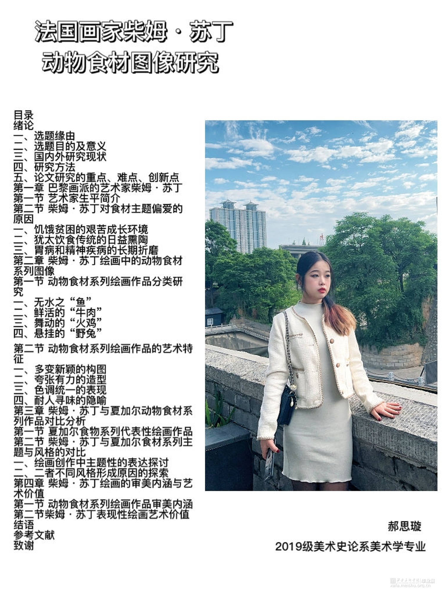本文着重研究柴姆·苏丁艺术生涯中不可缺少的一隅——苏丁的动物食材系列作品。此系列作品中精神的变异与强化不容忽视,画面当中那些张嘴瞪眼,令人动心怵目的形象与他神经质的气质特征是一致的。在艺术的世界里,苏丁的心像是猛烈的、狂放的,又是颤抖的。苏丁的动物食材系列作品,不仅揭示了画家的精神世界,也深刻的再现了社会现实。本文分为四个部分分析苏丁动物食材系列的绘画表现艺术。第一部分分析了苏丁的艺术生涯以及柴姆·苏丁对食材主题偏爱的原因,第二部分又从构图、造型、色彩表现和耐人寻味的隐喻四个方面来描述,结合作品来体会画面