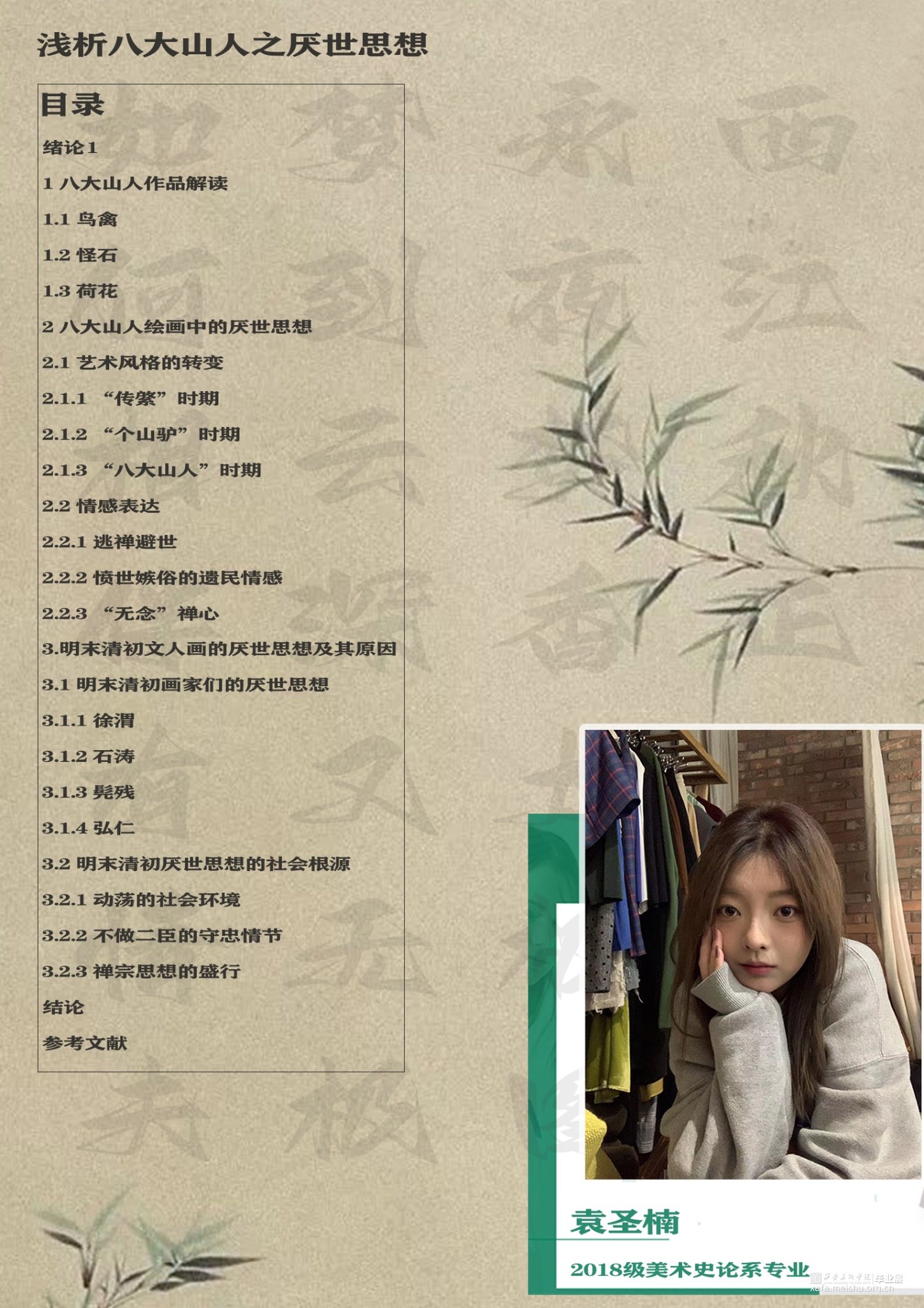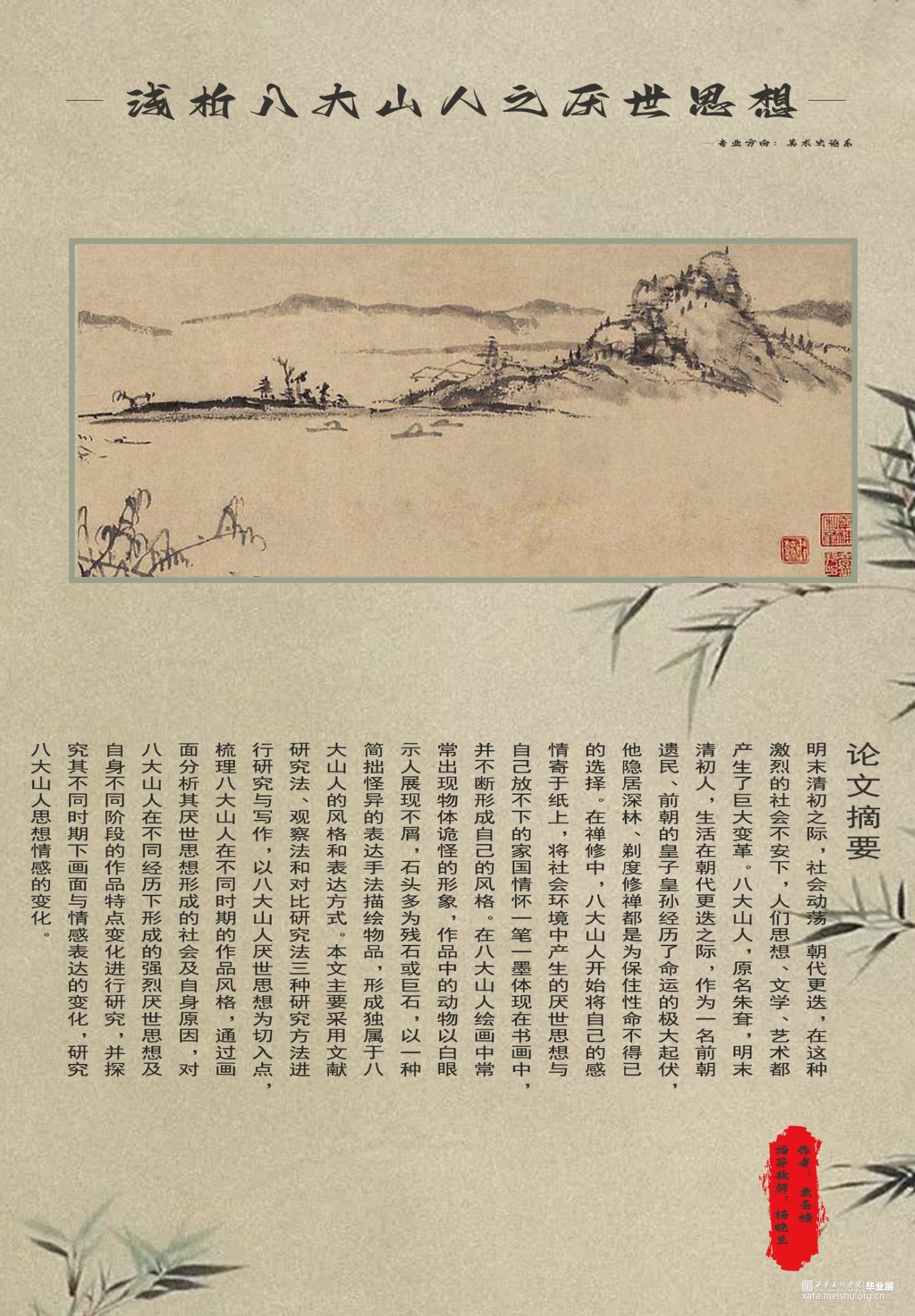 在明末清初这个历史上的重要时期,江山易主、社会动荡,伴随着朝代的更迭,思想、艺术、文学也产生了巨大变革。八大山人作为明末的皇子皇孙,清初的前朝遗民,感受过命运的大起大落,为了能够保住性命,寻求精神上的安慰,八大山人同诸多前朝遗民一样选择了剃度修禅,并将自己的愤懑、不安以及在禅修中的思考以书画的形式呈现,八大山人在绘画作品中体现的更多是因社会政治环境而形成的厌世思想,虽隐居于山林之中,但仍心系故国,满腔的愤懑与不甘宣泄于绘画之中。在局势动荡的明末清初,这种厌世思想在与八大山人时代相近的画家徐渭、同时代的画家
