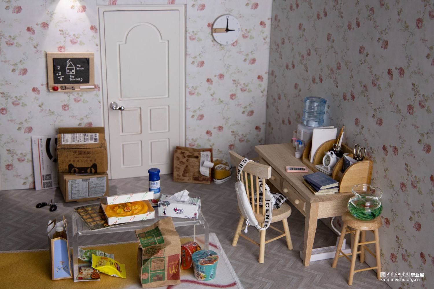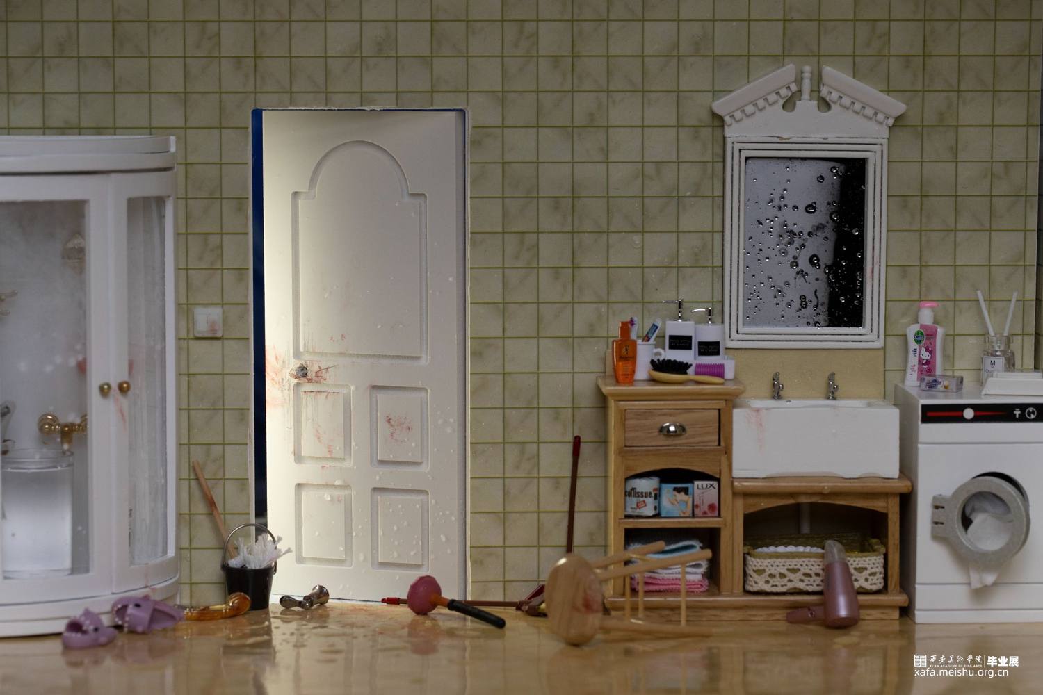 我通过搜集独居女性在生活中所遇到安全问题的新闻,利用微缩模型来构建出我眼中的“案发现场”。看似恬静美好的场景,实际暗藏着种种隐患。