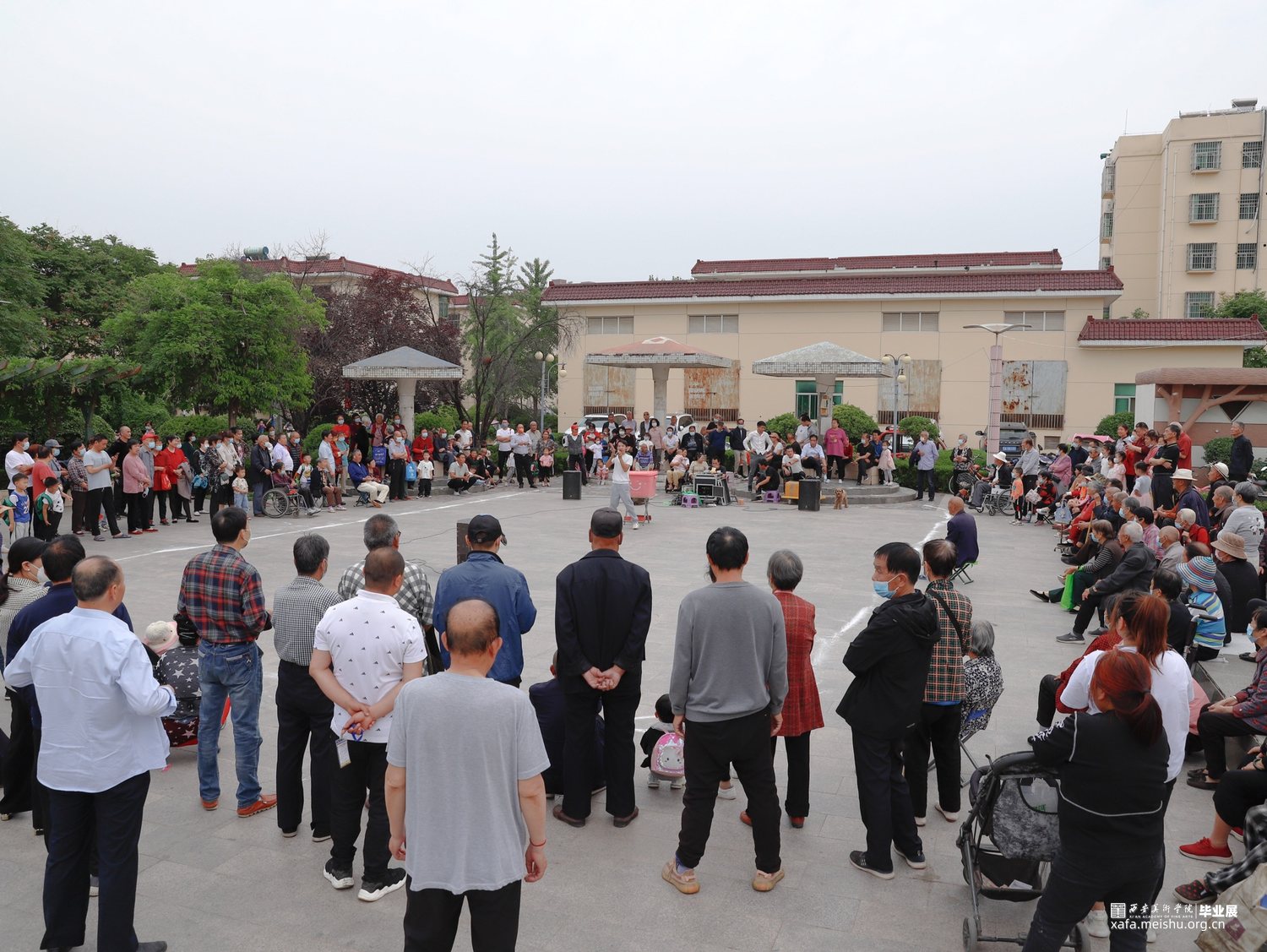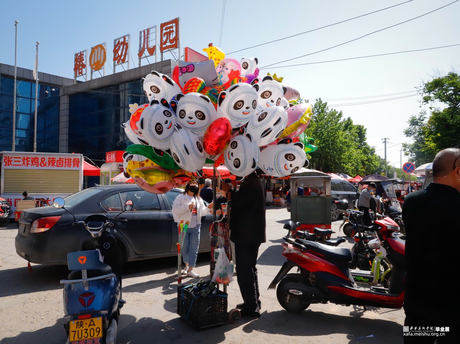 在进行《西航花园》这个摄影项目时,西航花园社区像一个割裂的空间。首先在网络上检索了相关信息出现了“西安最大的社区”,“住宅楼392栋”“西航花园=西航+骞柳+碧水湾”,“西航花园传销重灾区”,这一系列的相关词条。在社区的灞河桥旁座落着一座庞大的雕塑,一朵浪花将船锚托举起来指向天空,是这块区域的标志性建筑。生活其中9年有余,至今没有走完过小区的各个街道,社区的包容性很强,人员社会阶层混杂,养老老人,外地民工,待回迁的拆迁户,务工人员。社区的绿化率位居西安榜首高达百分之六十,像“花园”这样的名称,刚好印证了其构造特点。适合老人居住,临水而建,遛弯,养鸟,树荫乘凉,太极健身。社区东侧的农贸市场,走进去异常恍惚,从没见过的摊贩形式应有尽有,摆摊给老人补牙,修补鞋子的鞋匠,地上铺上一大片布料,山一样的衣服堆在上面,卖家跪在上面叫卖着,“10元一件,随便挑,清仓处理”衣服不需要叠整齐,人们会自行在里面翻找寻“宝”。在社区里居住可以满足你的生活基本需求,无论是买菜,超市购物,就医,健身,奶茶,穿衣,吃饭,学校从幼儿园到高中全部包含在其中,像一个浓缩的小型社会,就在西安奥体中心的附近,社区里的慢生活,似乎并没有受到旁边奥体中心建造而影响。我将社区的信息整合,将社区的特点依次一组一组的展现出来。