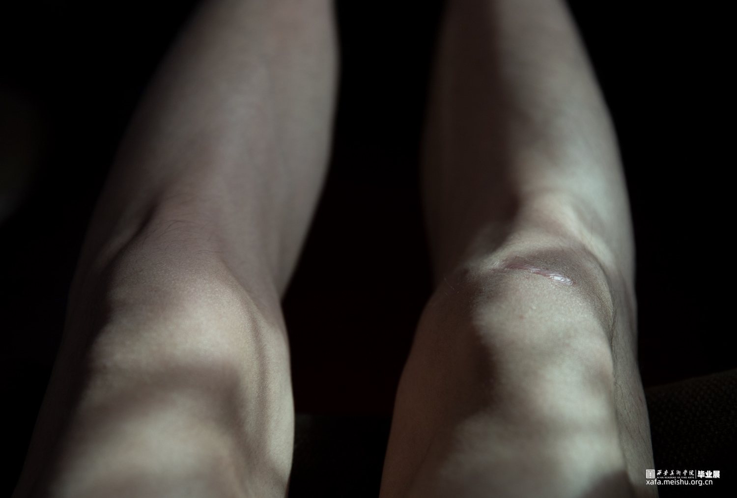 视频既是其中一段内容的延伸,也是贯穿整个作品的线索(图像结尾桌上枯萎的花就是视频开头出现的鲜花…),同时解释了一些图像的含义(例如右腿膝盖伤疤的由来),所以视频并非是独立的短片,是与图像、文字相结合的。