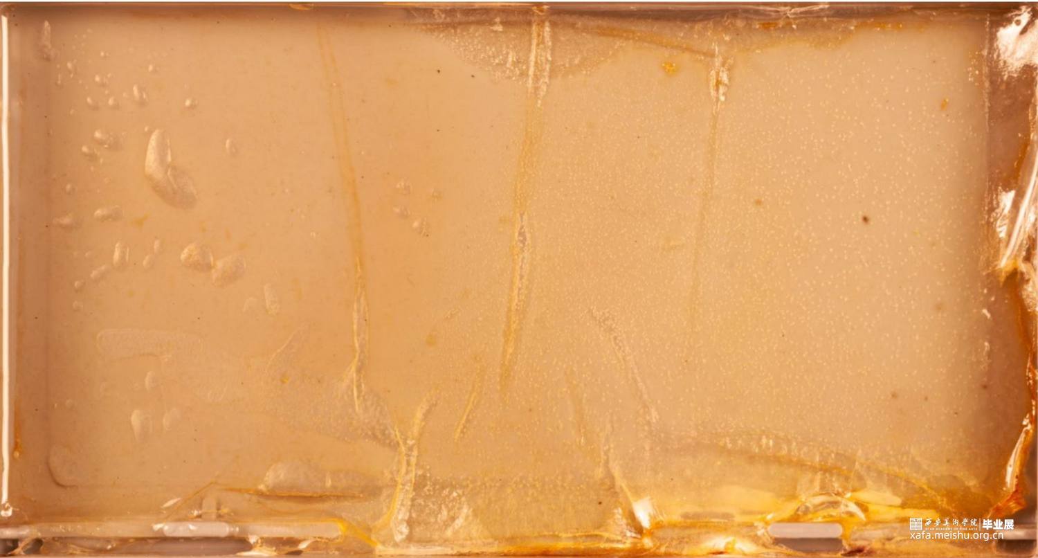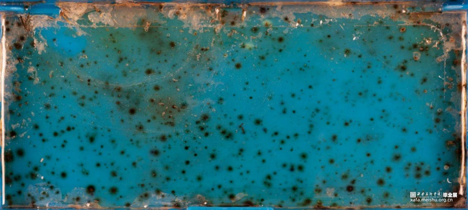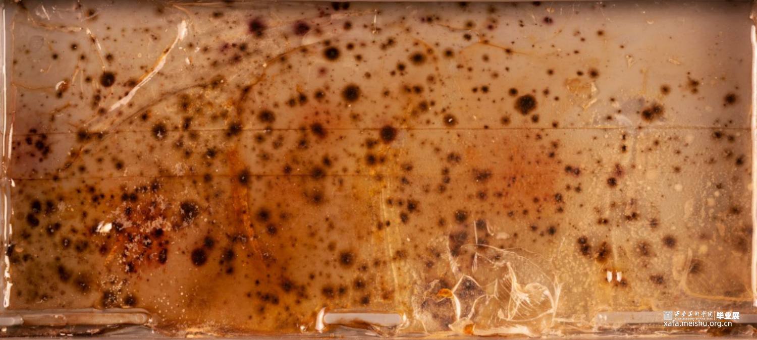 用细菌作为材料,描绘了一个由我所控制的世界,在不应该存在细菌生存环境的箱子上,用曾经存活过的细菌做了一些不应该存在的“化石”。