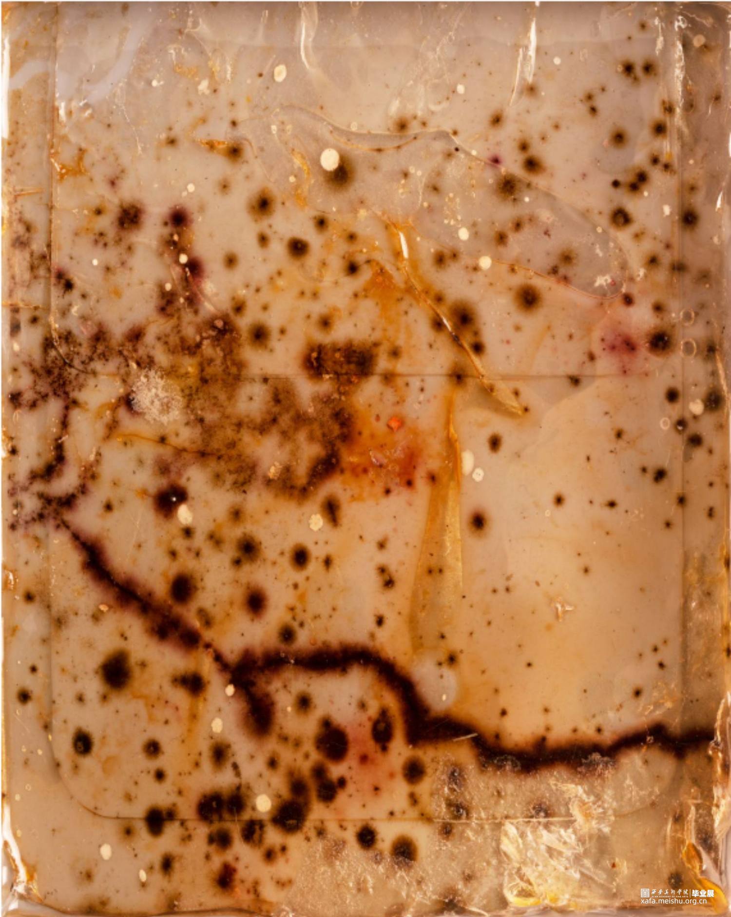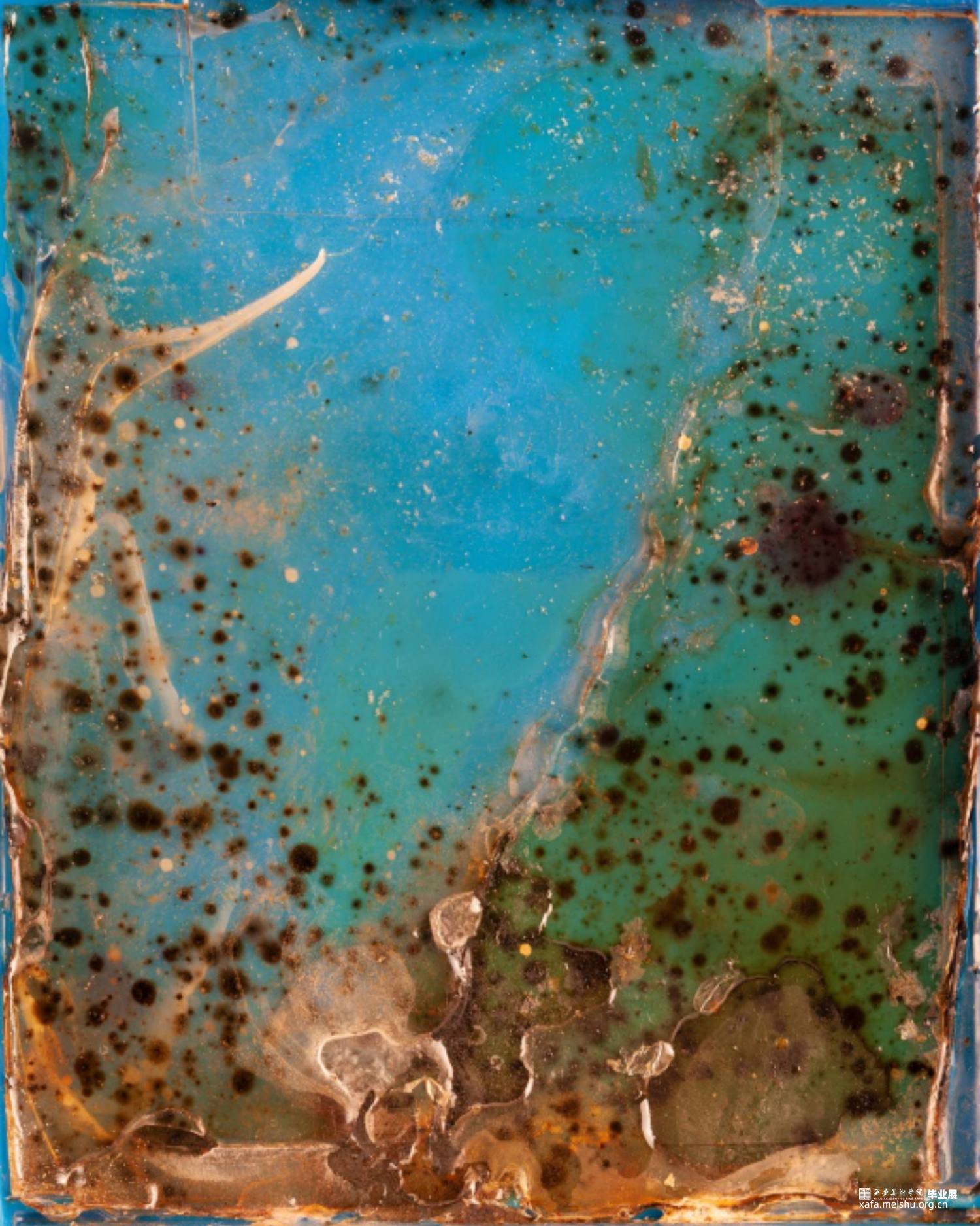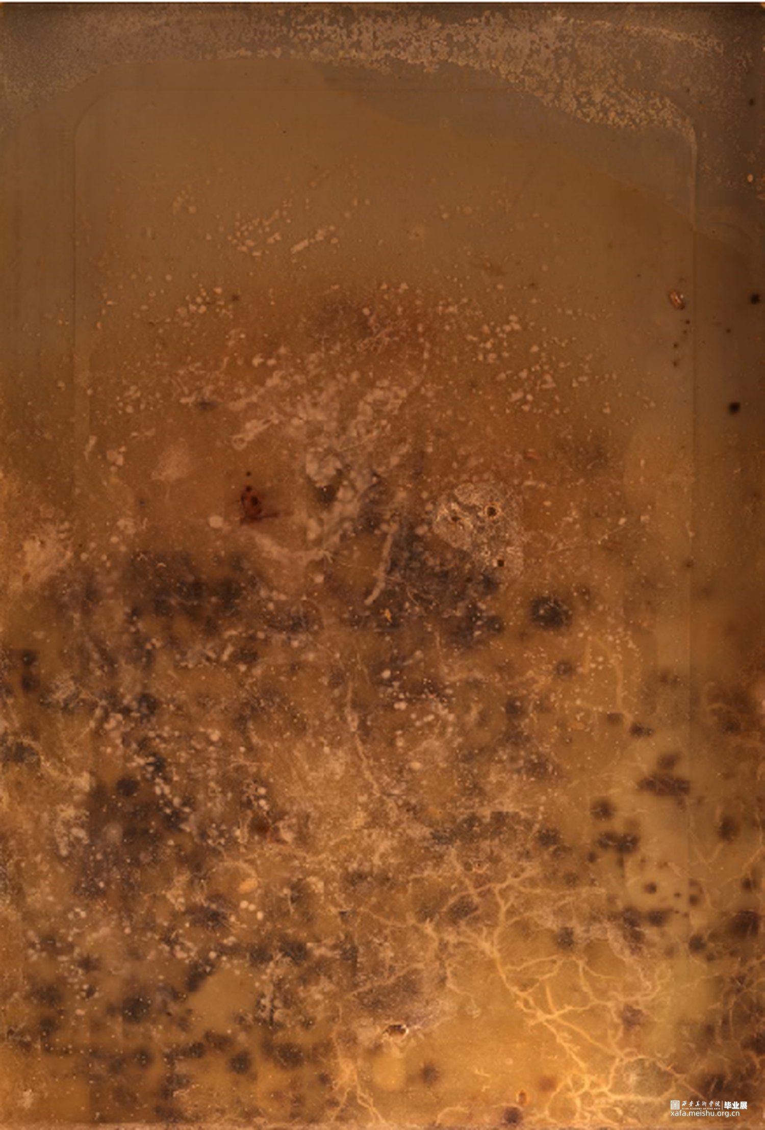 用细菌作为材料,描绘了一个由我所控制的世界,在不应该存在细菌生存环境的箱子上,用曾经存活过的细菌做了一些不应该存在的“化石”。